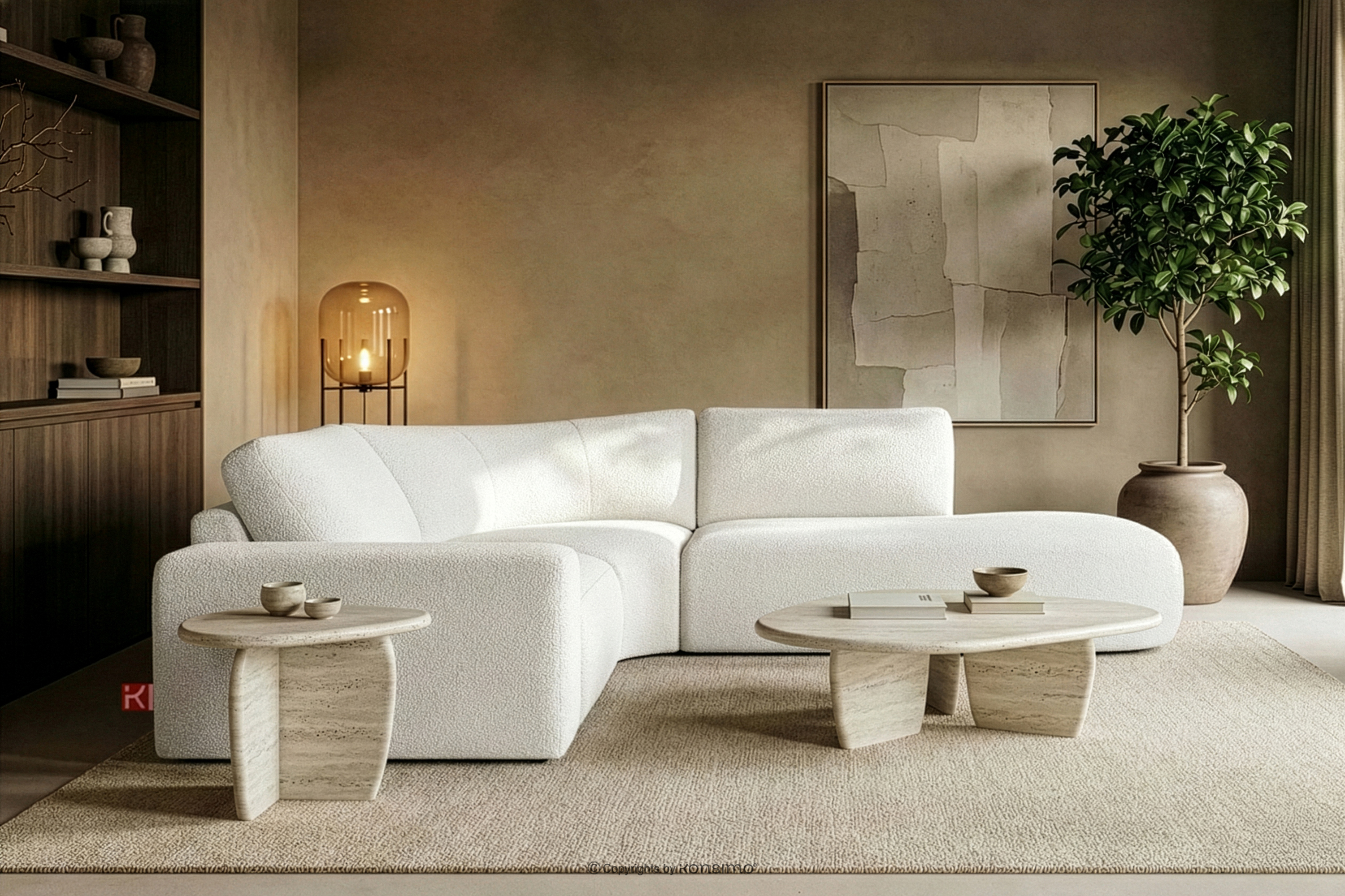 Modulares Ecksofa aus Bouclé-Stoff rechts ecru ist ein Synonym für modernen Komfort und Eleganz. Die Herstellung aus hochwertigen Materialien und die Modularität gewährleisten eine flexible Nutzung je nach Bedarf. Der Bezug aus Bouclé-Stoff verleiht dem Möbelstück ein luxuriöses Aussehen und ist bekannt für seine Langlebigkeit und angenehme Haptik. Der moderne Stil, in dem ZUCCO entworfen wurde, passt perfekt zu den aktuellen Einrichtungstrends.