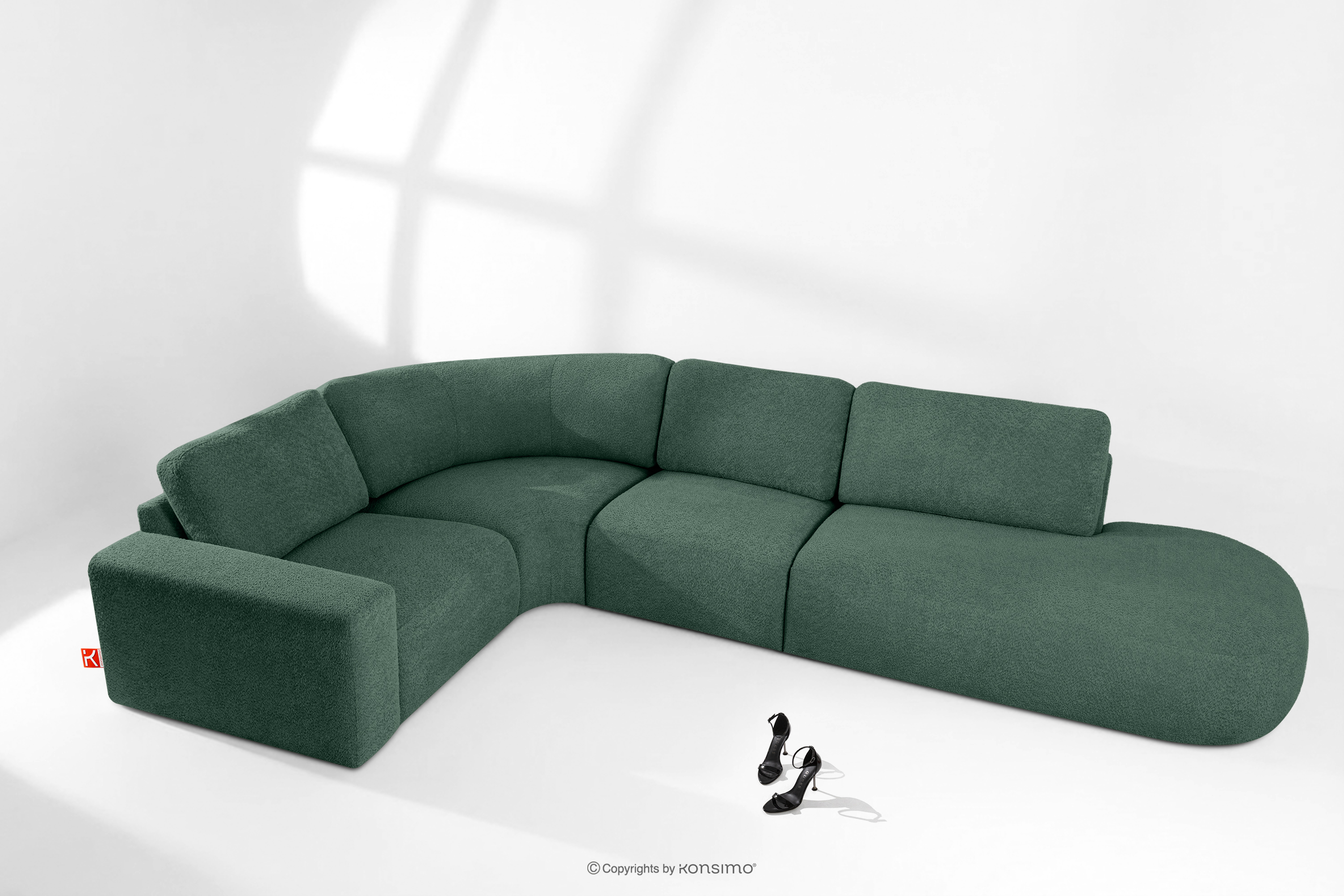 ZUCCO Modulares Ecksofa in organischer Form Bouclé-Stoff rechts grün
