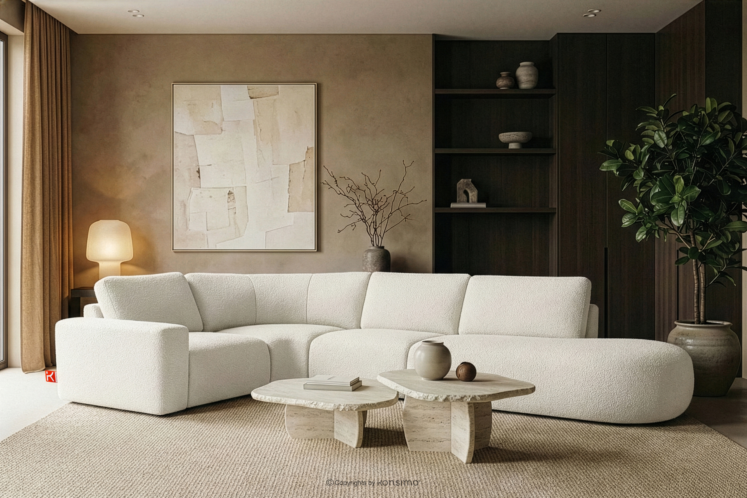 ZUCCO Modulares Ecksofa in organischer Form Bouclé-Stoff rechts ecru