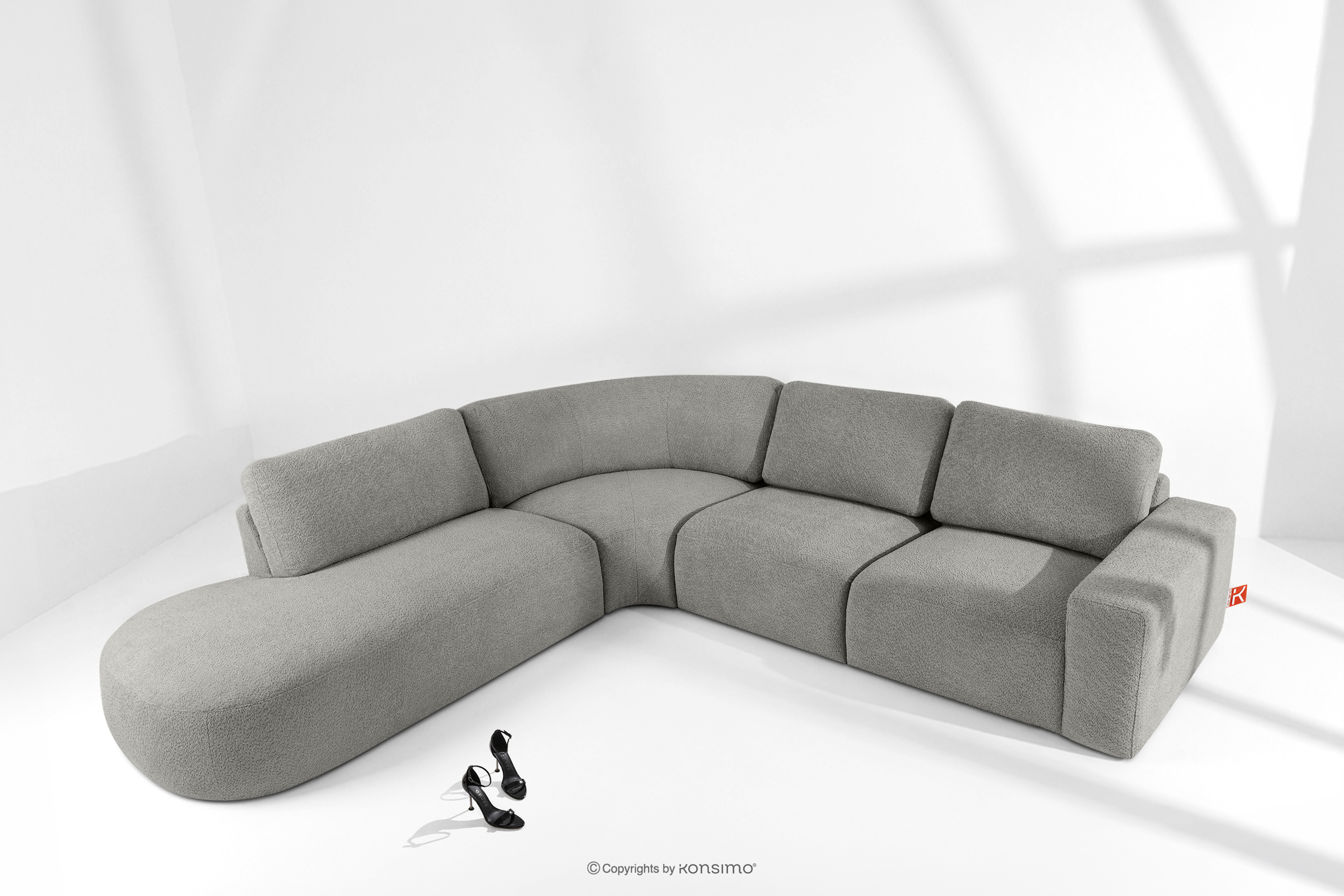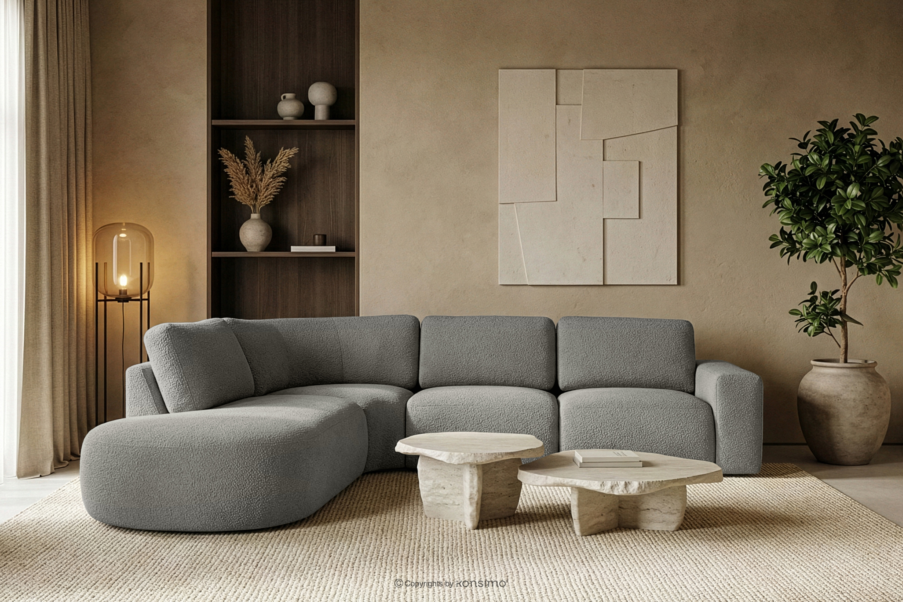 Große modulare Ecksofa aus Bouclé-Stoff links dunkelgrau ist ein Synonym für modernen Komfort und Eleganz. Die Herstellung aus hochwertigen Materialien und die Modularität gewährleisten eine flexible Nutzung je nach Bedarf. Der Bezug aus Bouclé-Stoff verleiht dem Möbelstück ein luxuriöses Aussehen und ist bekannt für seine Langlebigkeit und angenehme Haptik. Der moderne Stil, in dem ZUCCO entworfen wurde, passt perfekt zu den aktuellen Einrichtungstrends.