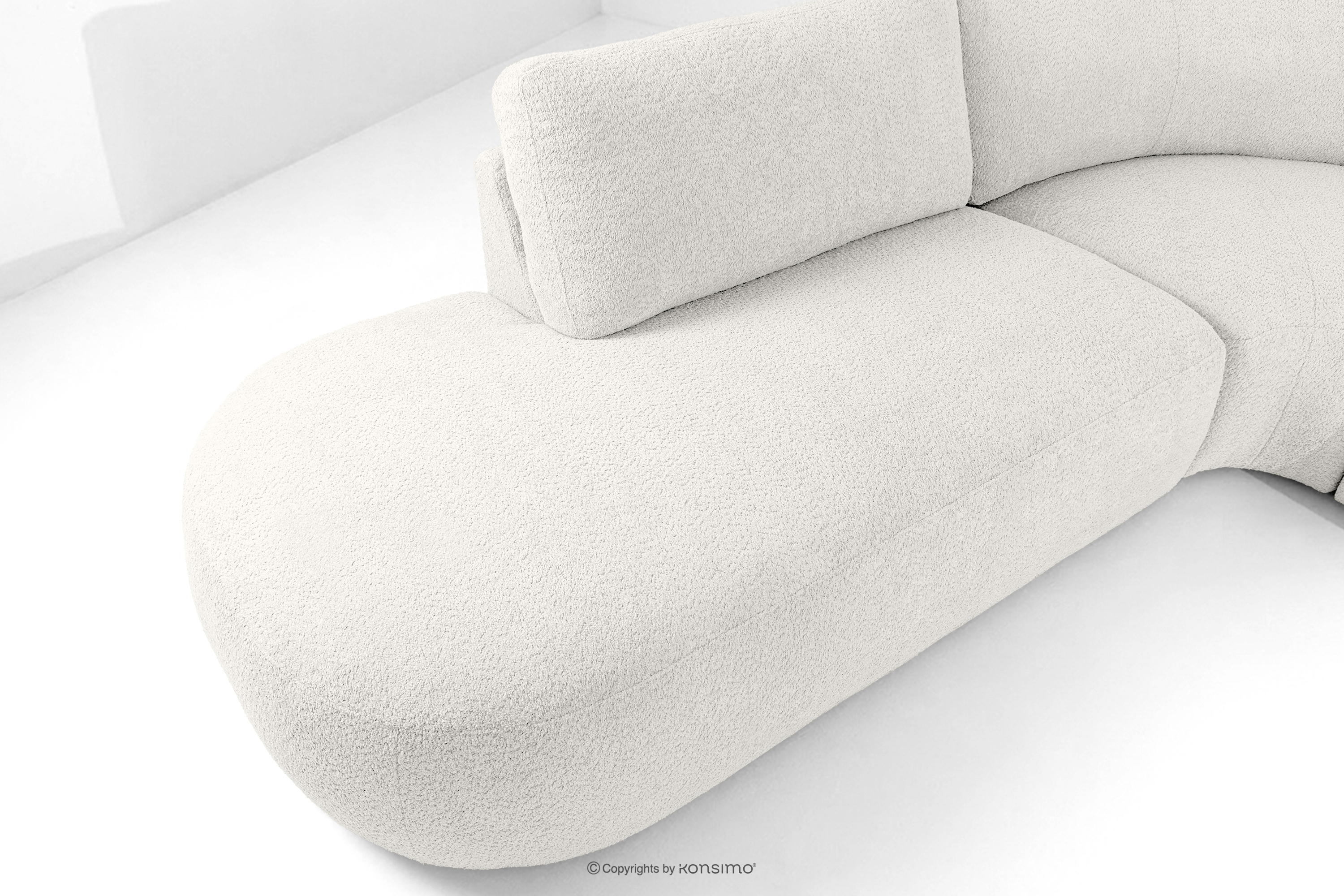 Großes modulares Ecksofa aus Bouclé-Stoff links ecru ist ein Synonym für modernen Komfort und Eleganz. Die Herstellung aus hochwertigen Materialien und die Modularität gewährleisten eine flexible Nutzung je nach Bedarf. Der Bezug aus Bouclé-Stoff verleiht dem Möbelstück ein luxuriöses Aussehen und ist bekannt für seine Langlebigkeit und angenehme Haptik. Der moderne Stil, in dem ZUCCO entworfen wurde, passt perfekt zu den aktuellen Einrichtungstrends.