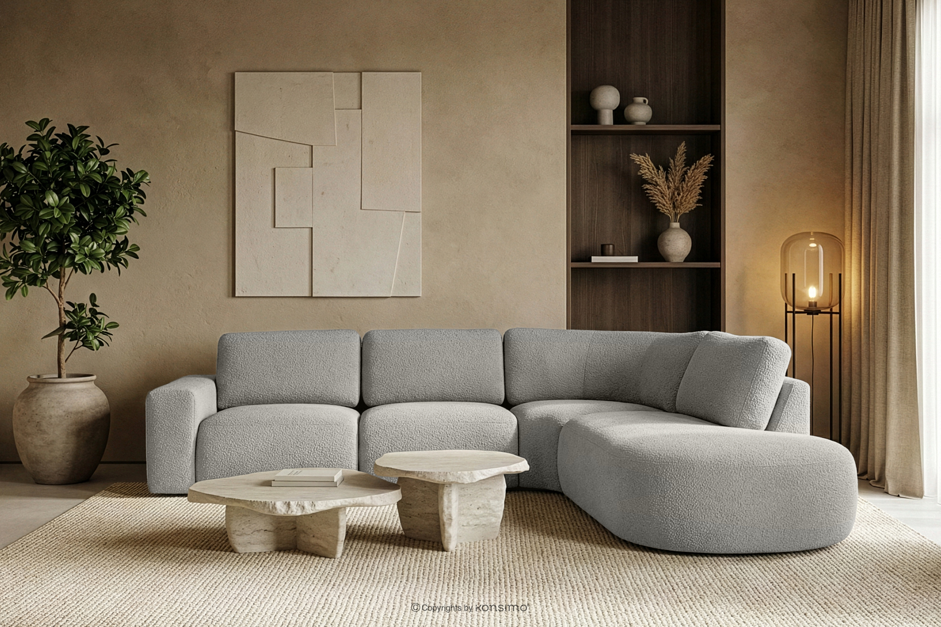 für das Produkt Große modulare Ecksofa aus Bouclé-Stoff rechts hellgrau