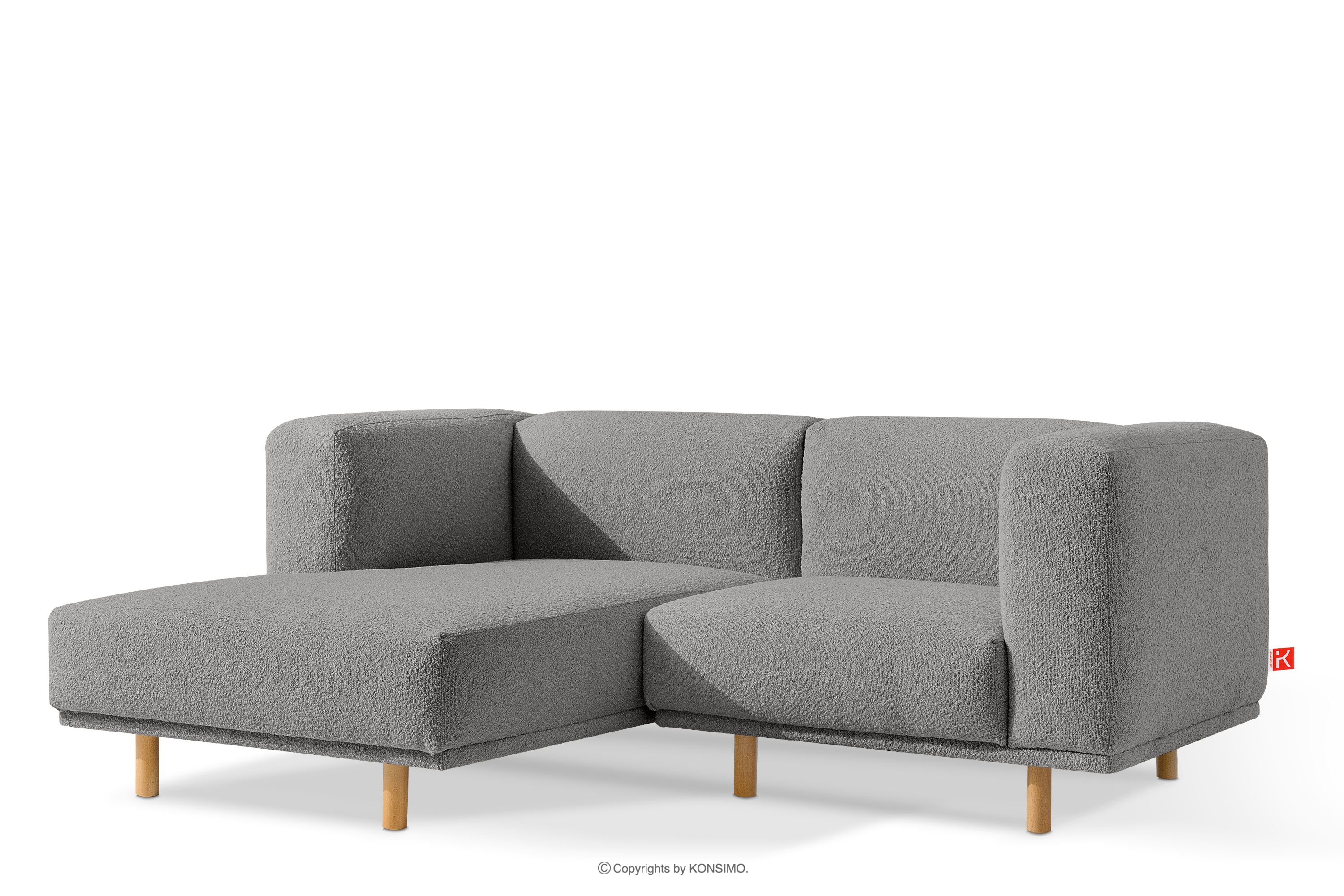 Skandinavisches hochbeiniges Ecksofa aus Boucle-Stoff hellgrau, links