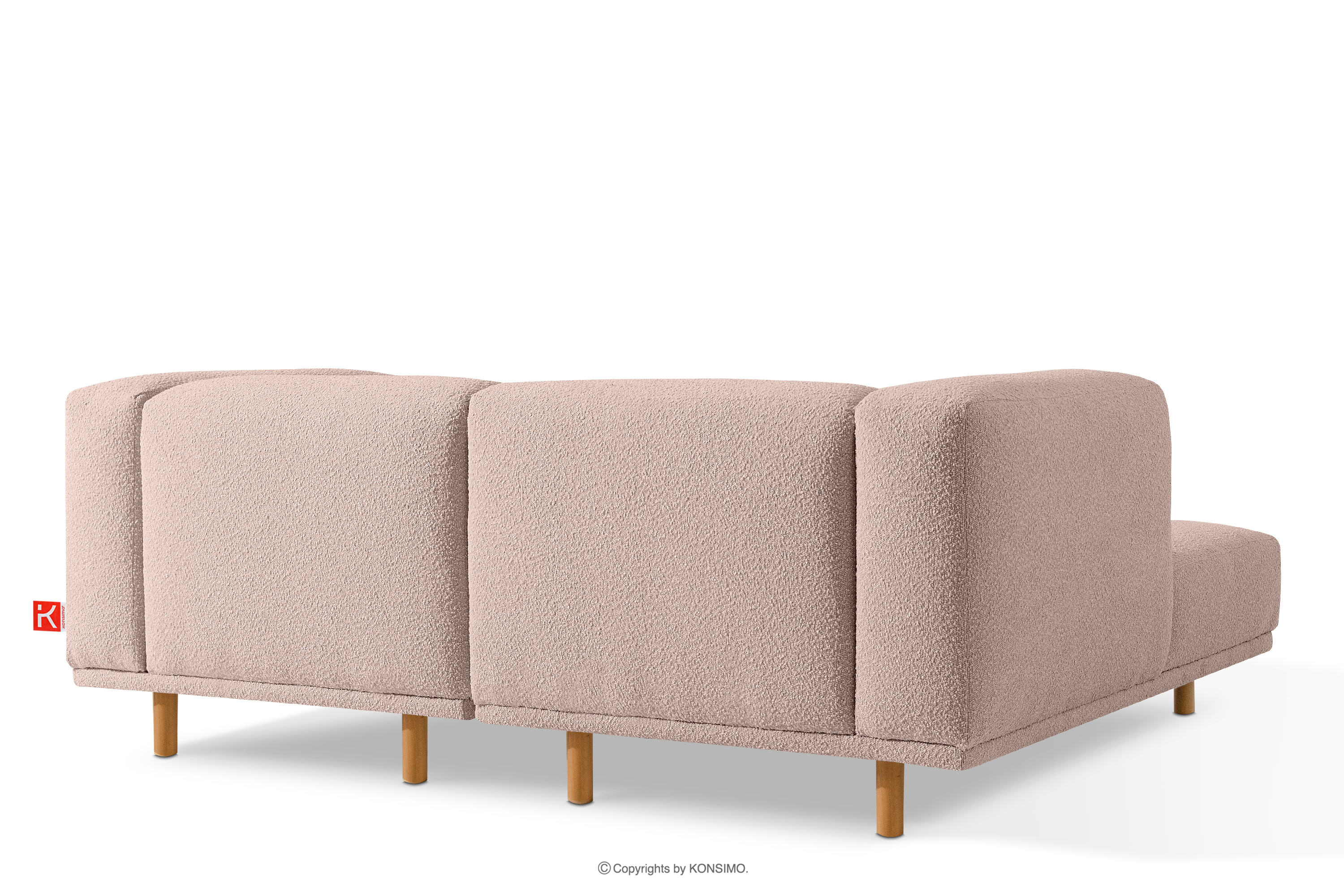 Skandinavisches hochbeiniges Ecksofa aus Boucle-Stoff rosa, links