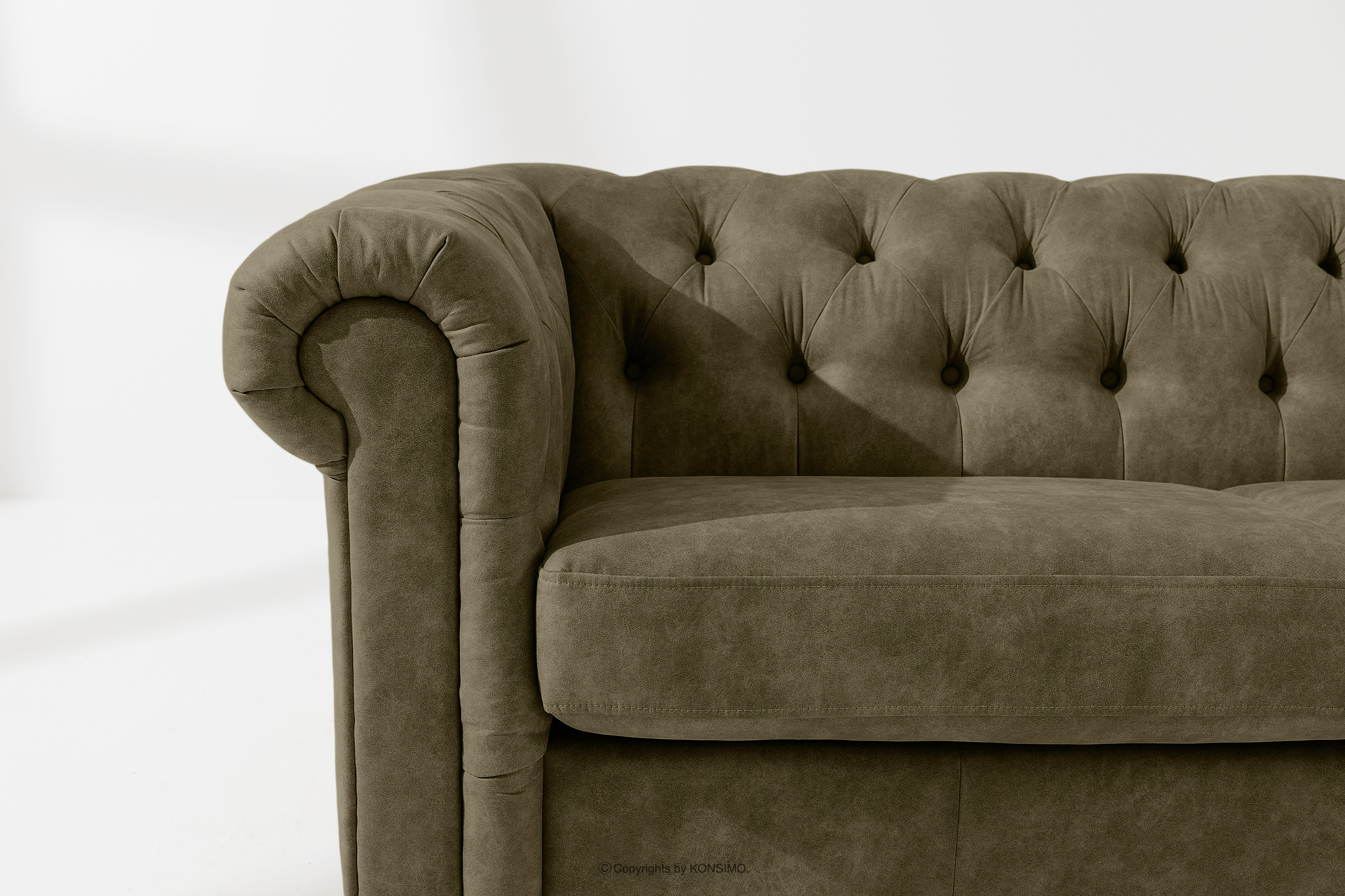Klassisches Dreisitzer-Sofa im Chesterfield-Stil aus Kunstleder olivgrün