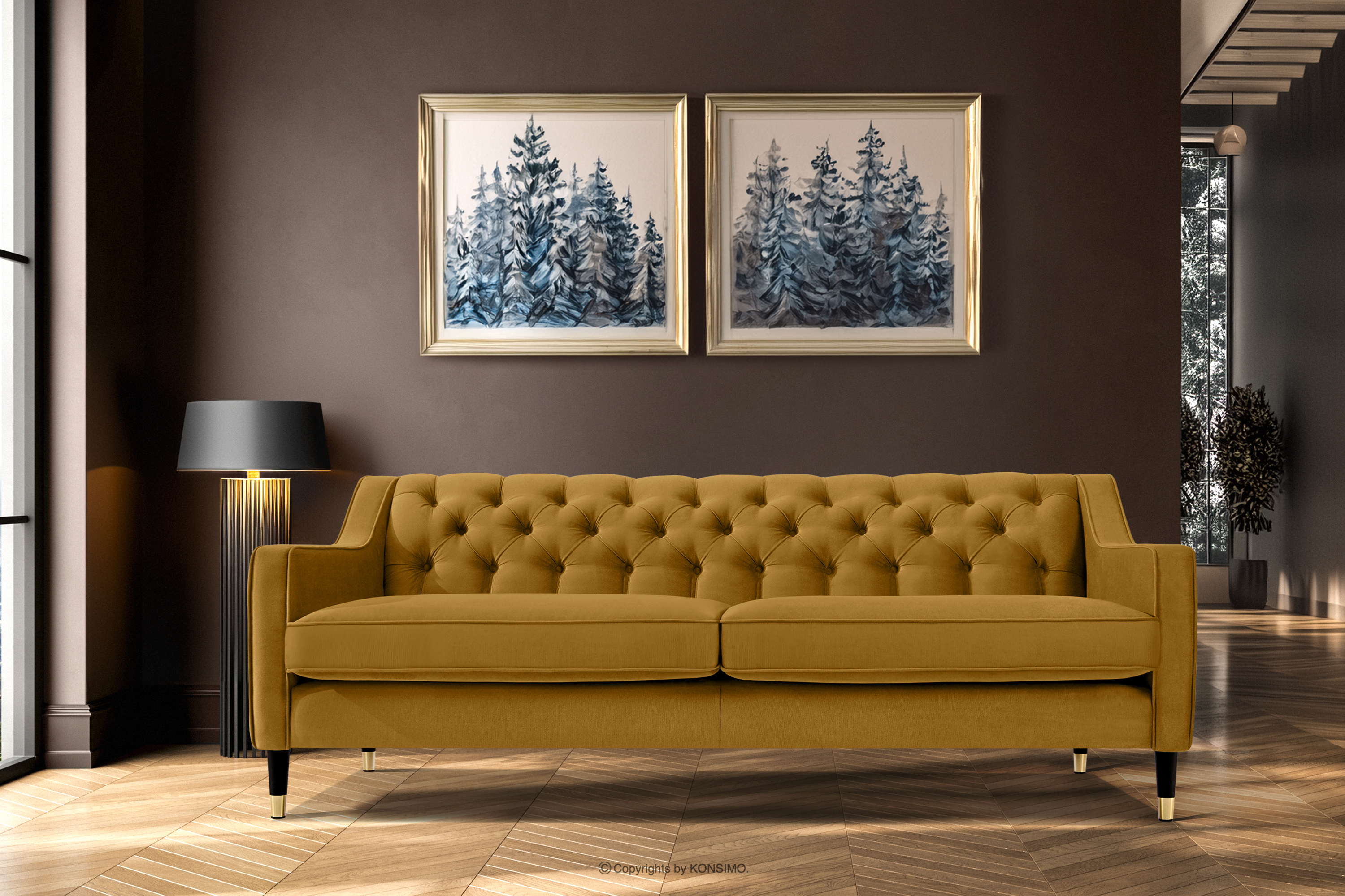 Elegantes Dreisitzer-Sofa mit gestepptem Velours gelb