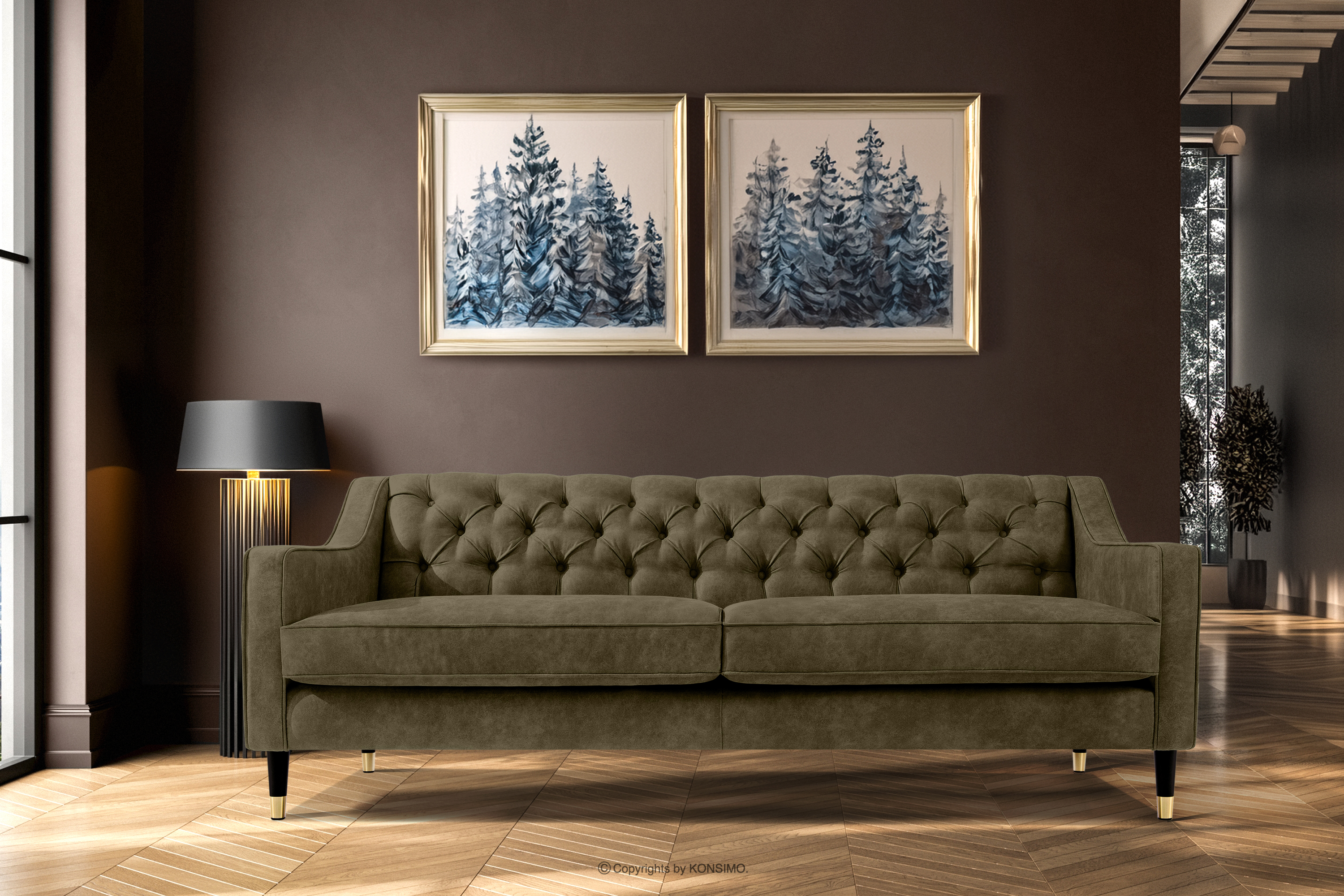 NOMUS Dreisitzer-Sofa im eleganten Stil mit Steppung Kunstleder oliv