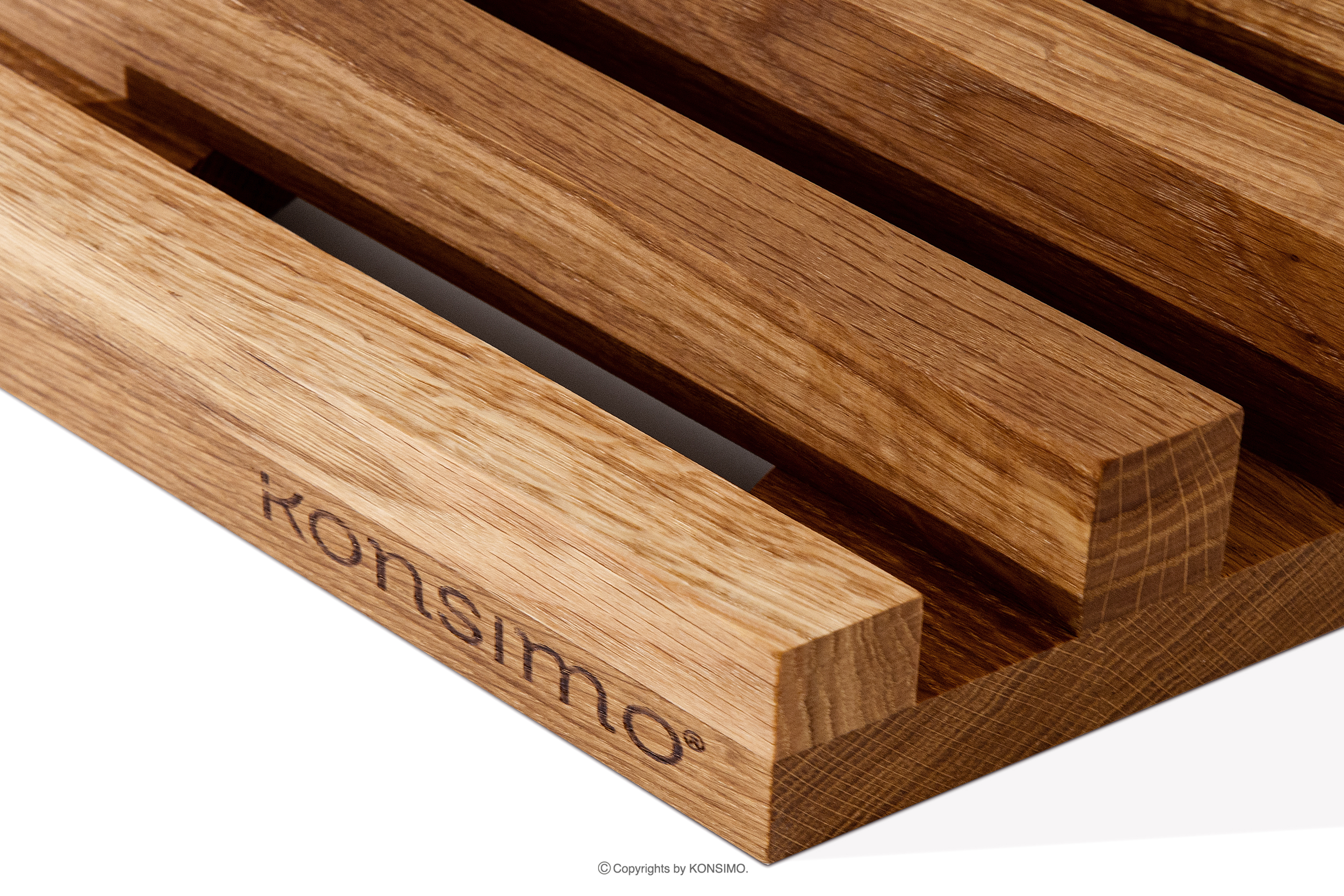 Das aus FSC-zertifizierten Quellen stammende Eichenholz garantiert nicht nur Langlebigkeit, sondern ist auch eine umweltfreundliche Wahl. Bei der Herstellung werden Lacke auf Wasserbasis verwendet, wodurch der Ständer umweltfreundlich ist.