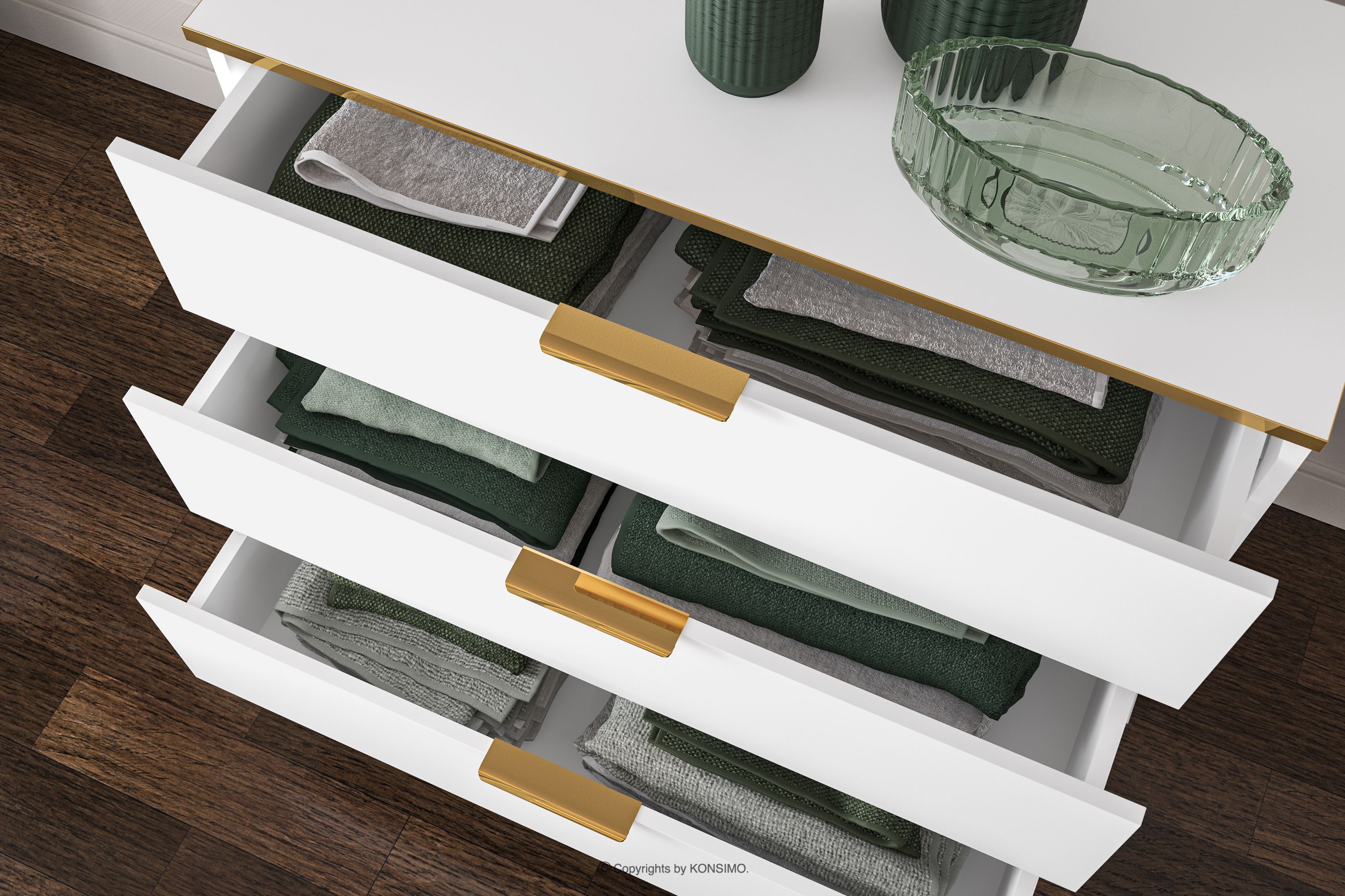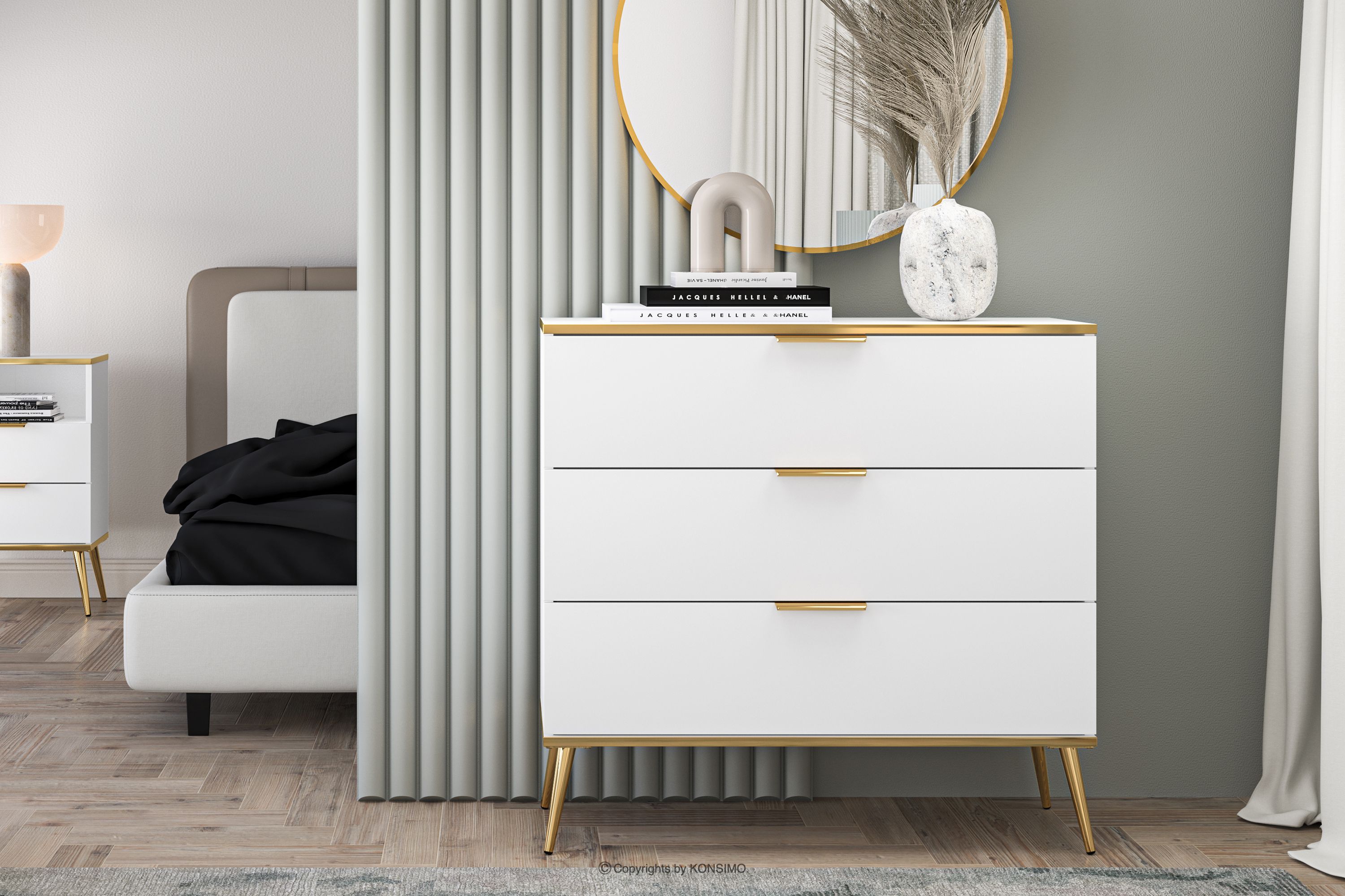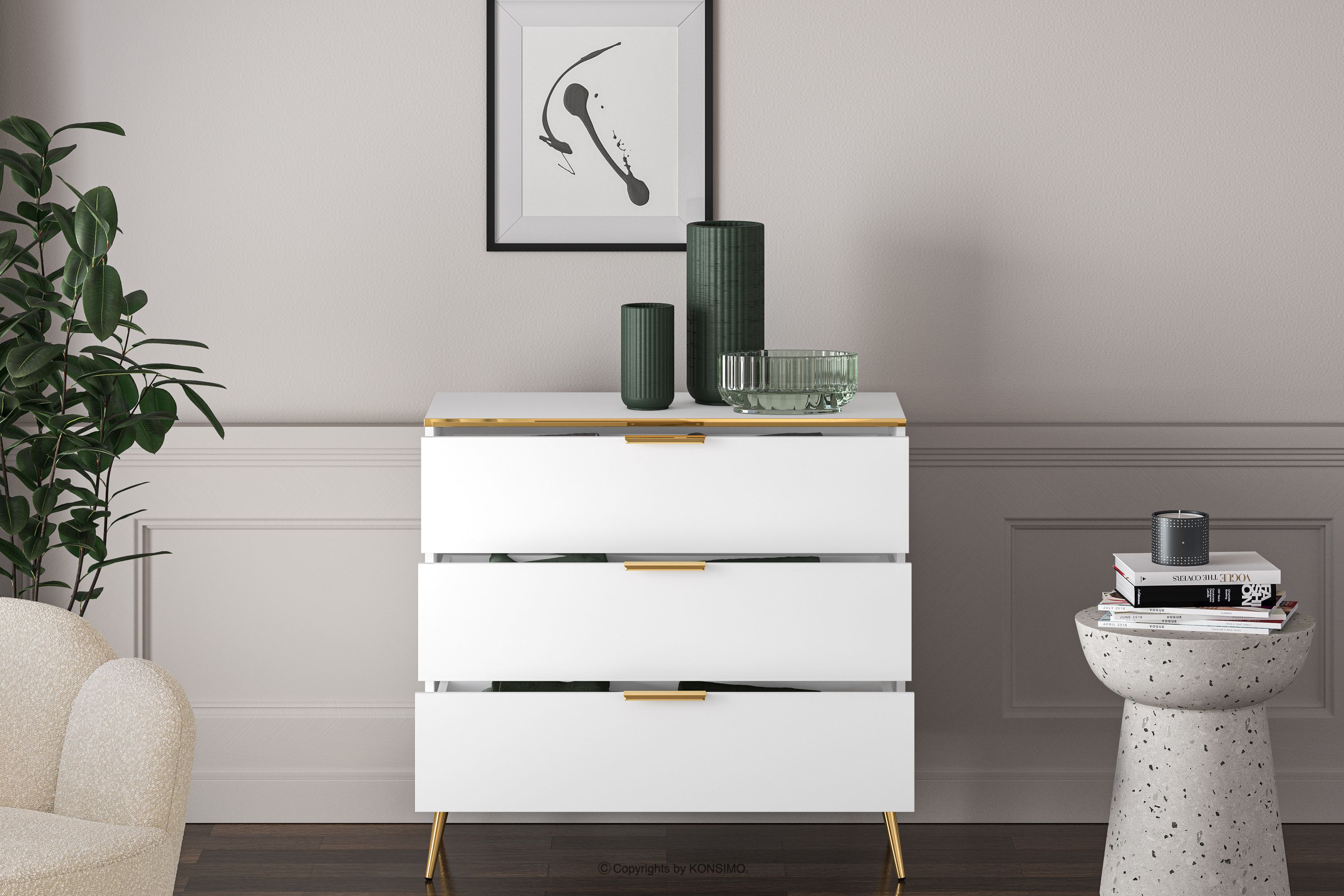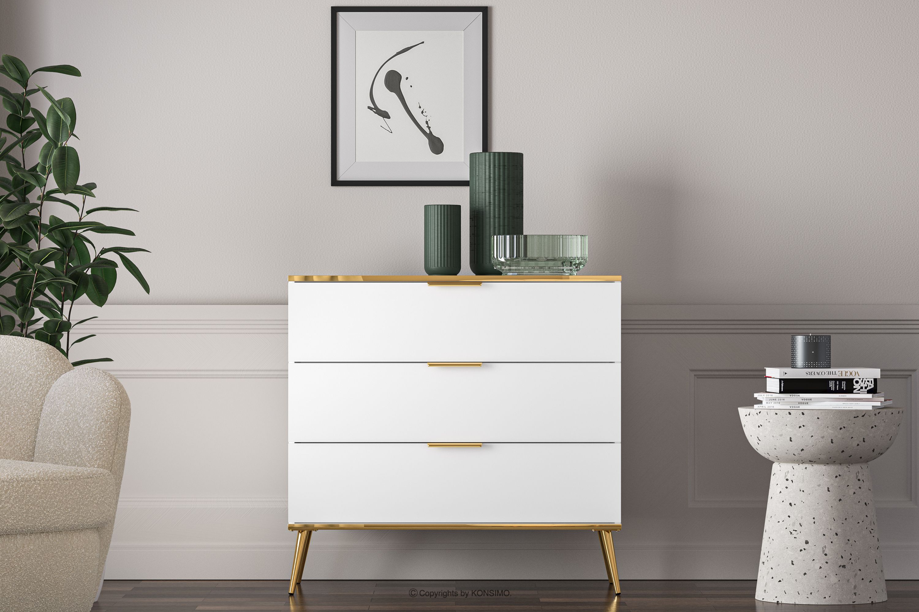 VELTI Mehr aus der Kollektion Elegante weiße Kommode auf goldenen Beinen- Farbe weiß