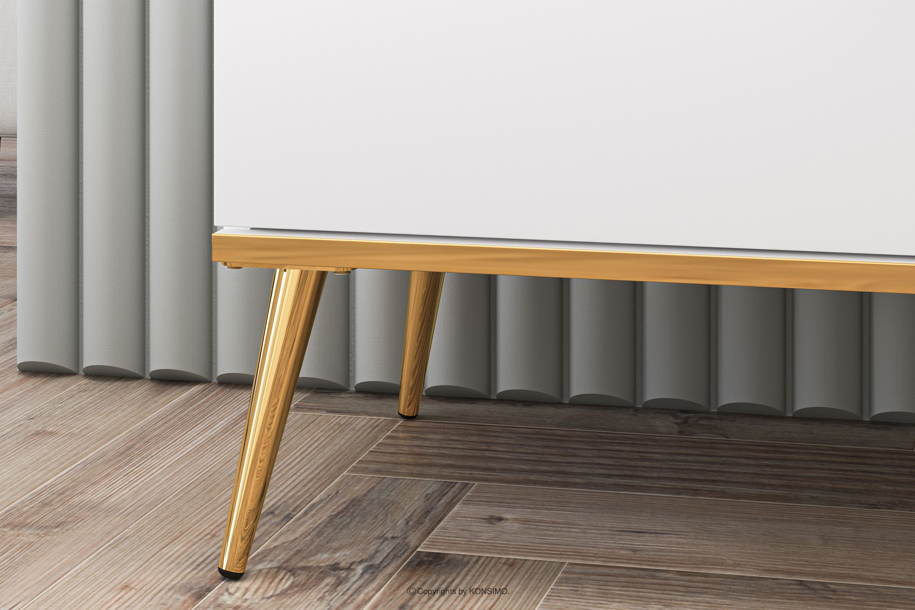 Elegante weiße Kommode auf goldenen Beinen VELTI - Farbe weiß