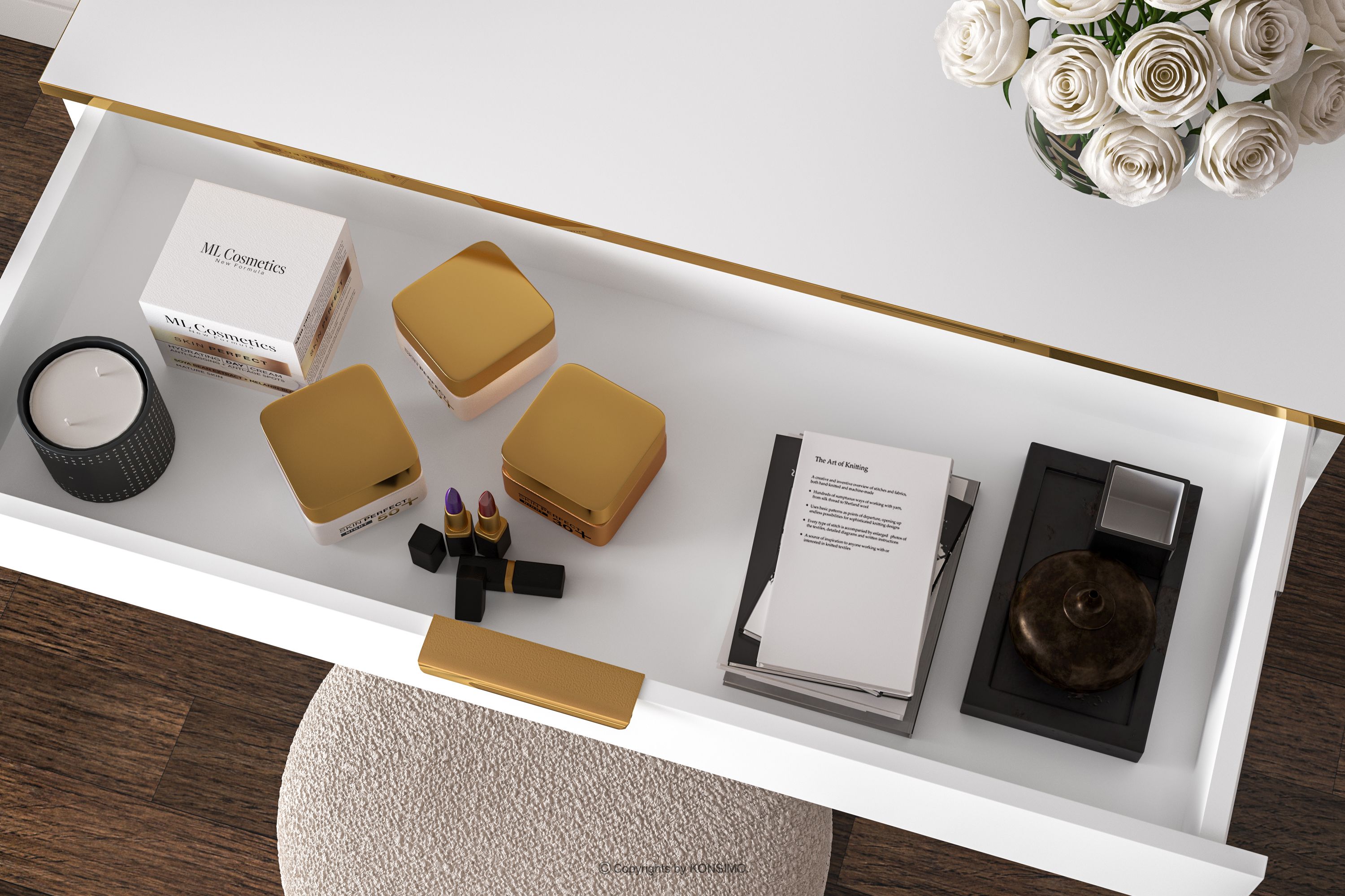VELTI Mehr aus der Kollektion Schreibtisch elegant weiß auf goldenen Beinen- Farbe weiß