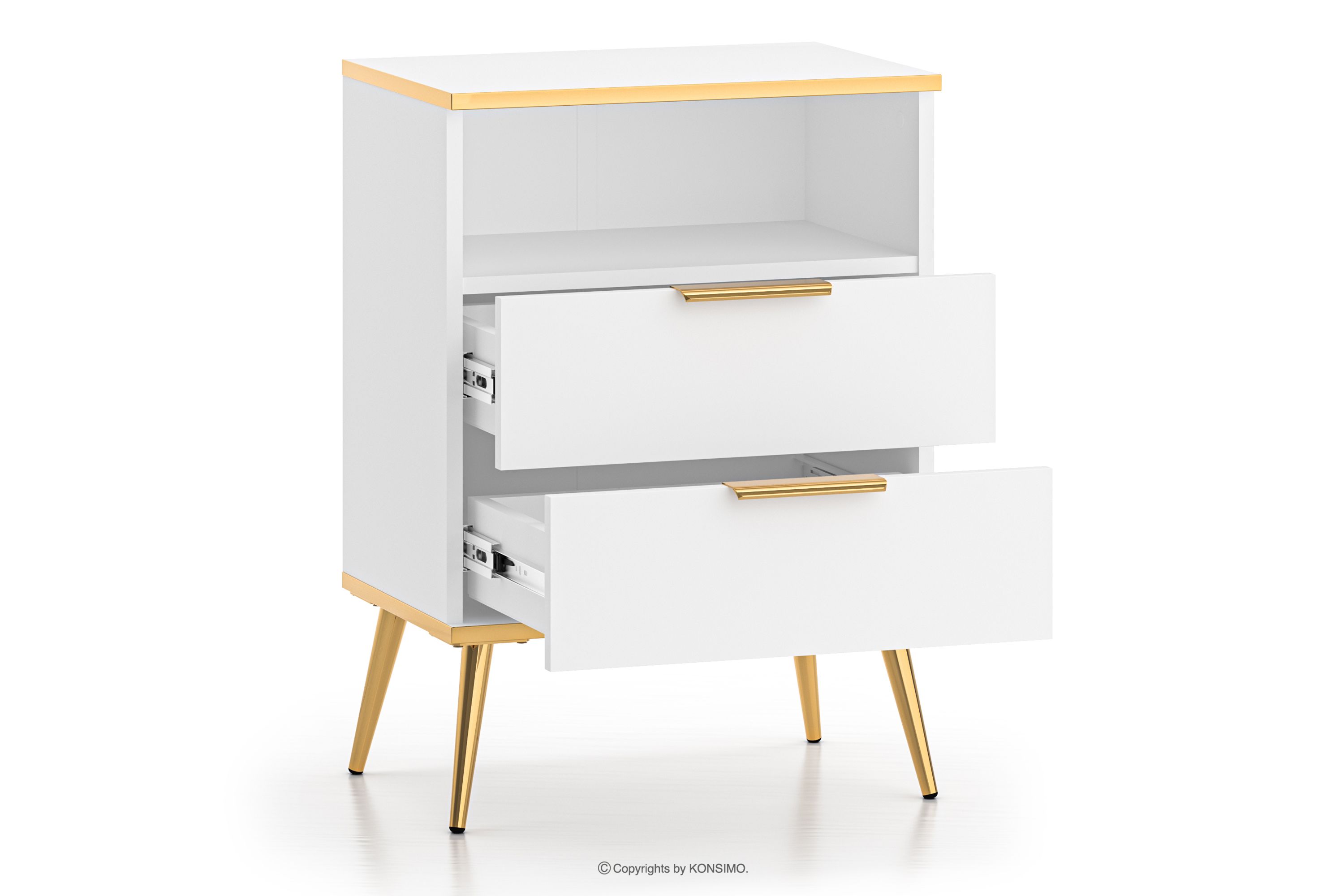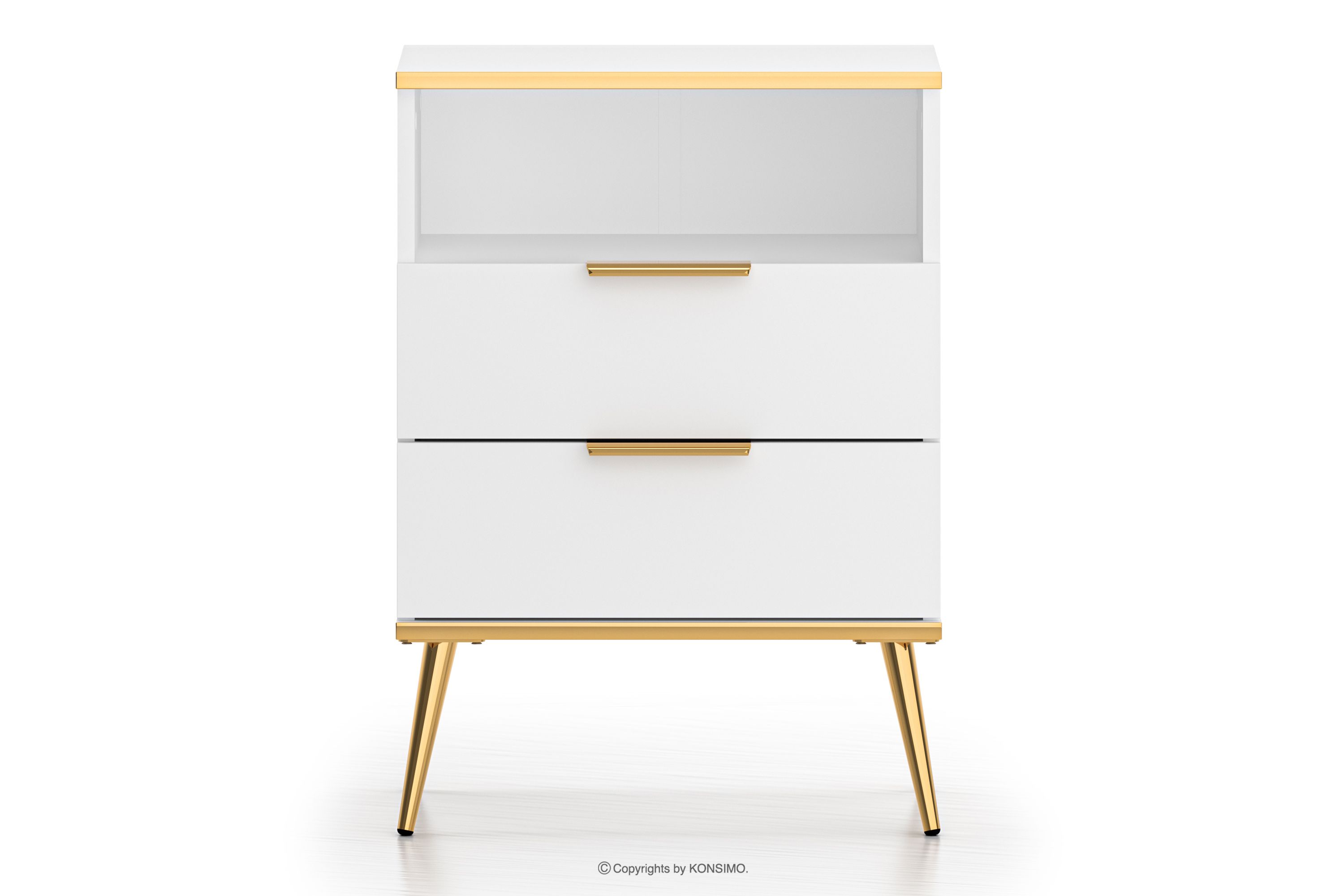 VELTI Mehr aus der Kollektion Nachttisch elegant weiß glänzend auf goldenen Beinen- Farbe weiß