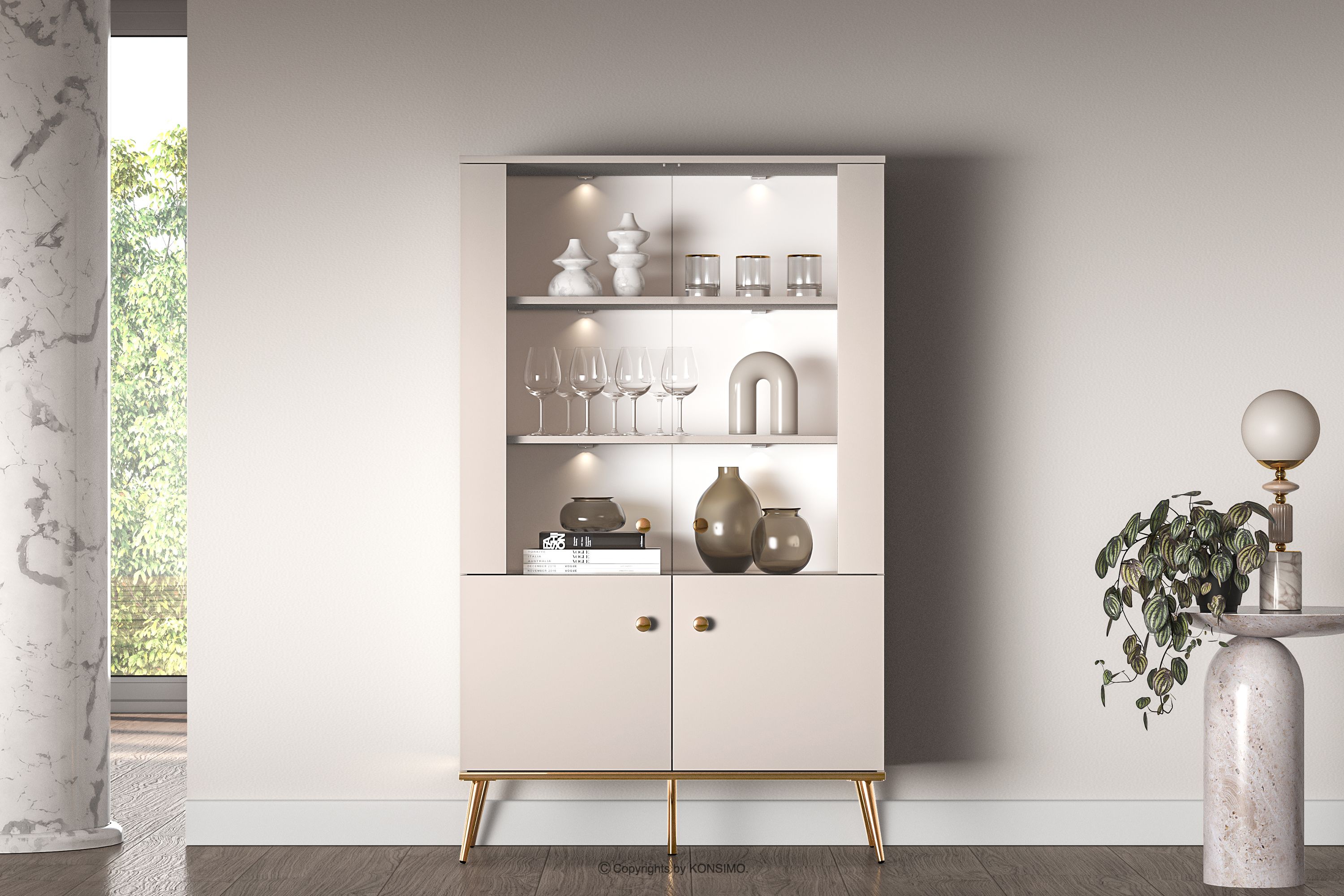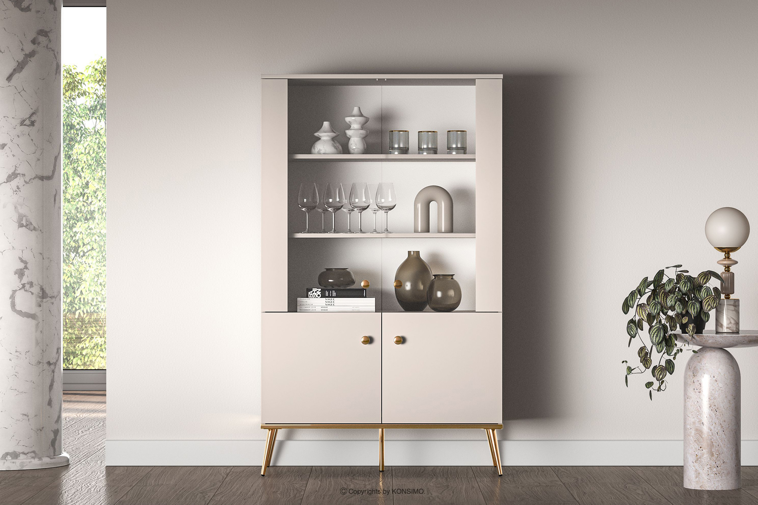Cremefarbene Vitrine