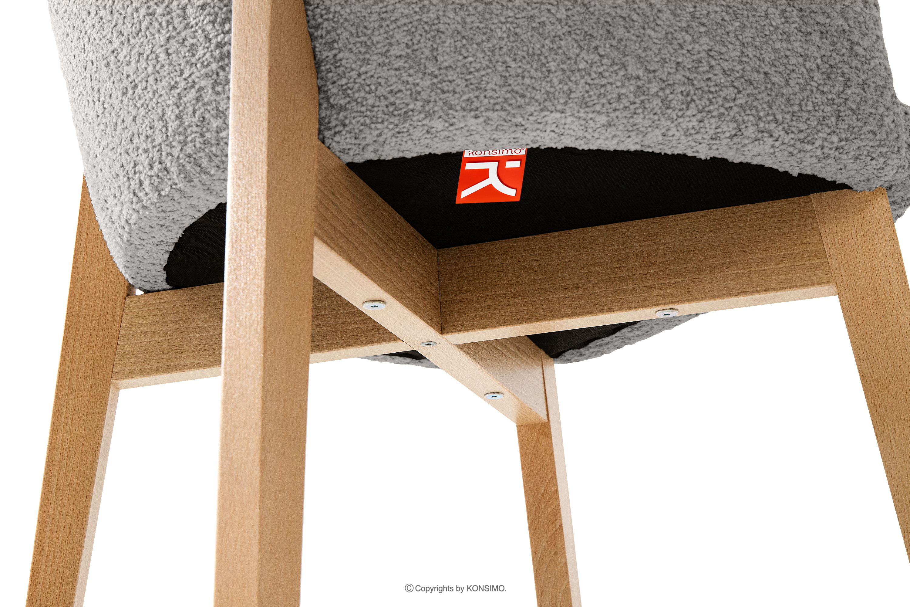 Polsterstuhl auf Holzbeinen stahlblauer Bouclé-Stoff 2 tlg. ist der Inbegriff von modernem Design in Kombination mit höchstem Komfort. Die solide Konstruktion basiert auf Beinen aus ausgewähltem Buchenholz, das sich nicht nur durch seine außergewöhnliche Langlebigkeit, sondern auch durch sein schönes, natürliches Aussehen auszeichnet. Die Bouclé-Stoffpolsterung ist ein echter Hingucker. Dieses einzigartige Material, das sich durch eine Schlingenstruktur auszeichnet, sorgt nicht nur für eine angenehme Haptik, sondern weist auch eine erhöhte Abrieb- und Schmutzbeständigkeit auf.