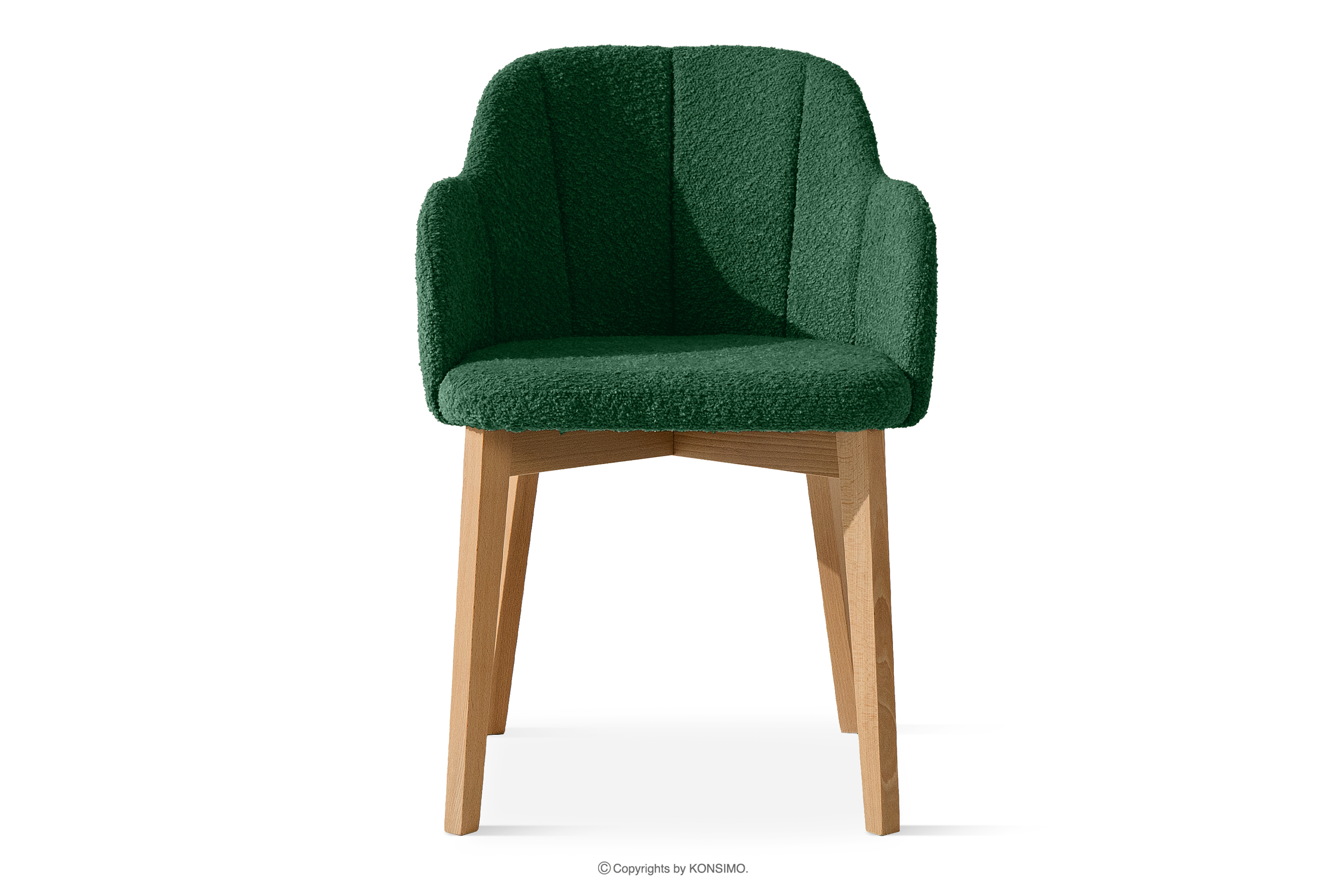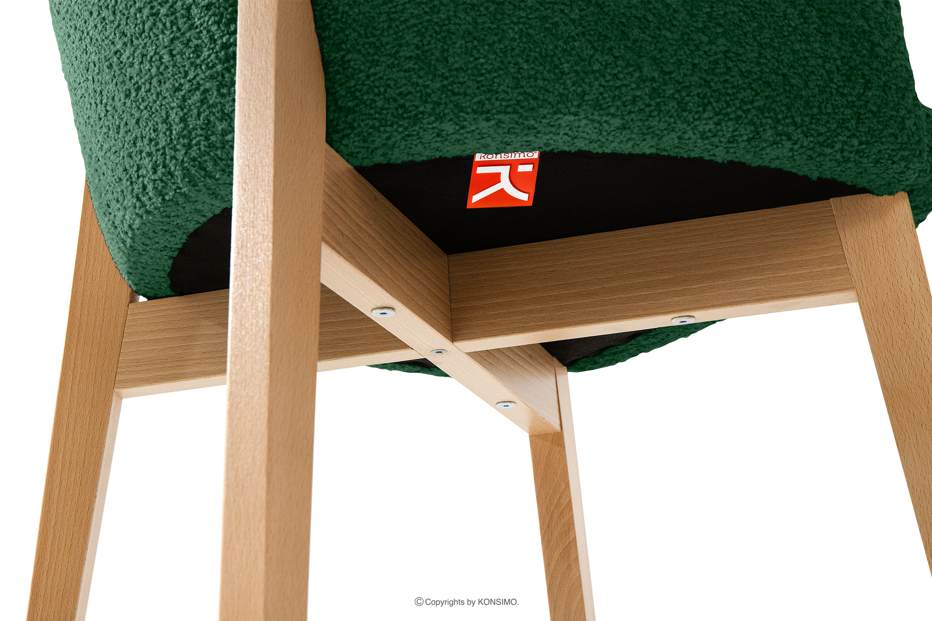 Polsterstuhl auf Holzbeinen Stoff mit Büffelkaro dunkelgrün 2 tlg. ist der Inbegriff von modernem Design in Kombination mit höchstem Komfort. Die solide Konstruktion basiert auf Beinen aus ausgewähltem Buchenholz, das sich nicht nur durch seine außergewöhnliche Langlebigkeit, sondern auch durch sein schönes, natürliches Aussehen auszeichnet. Die Bouclé-Stoffpolsterung ist ein echter Hingucker.