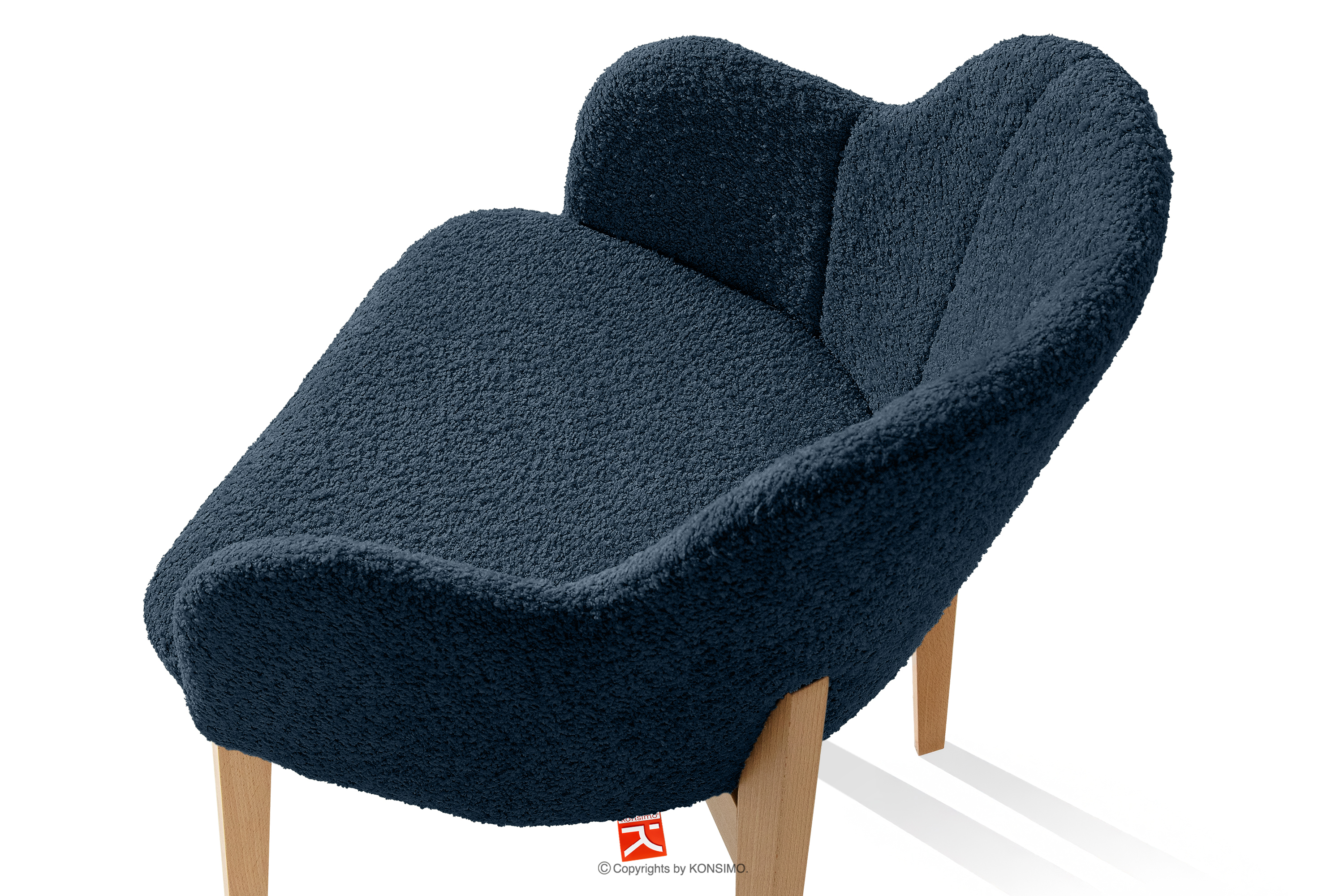 Ein traumhafter Stuhl! Die Kombination aus dunkelblauem Bouclé-Stoff und Holzbeinen ist einfach perfekt. Sehr bequem!