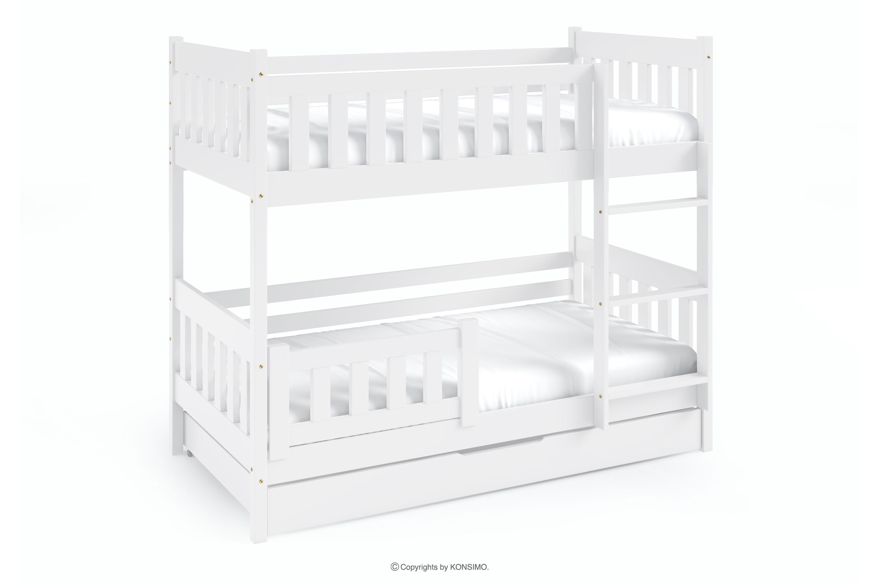 LUMBE Mehr aus der Kollektion Etagenbett für Kinder mit Matratze und Schublade weiß- Farbe weiß