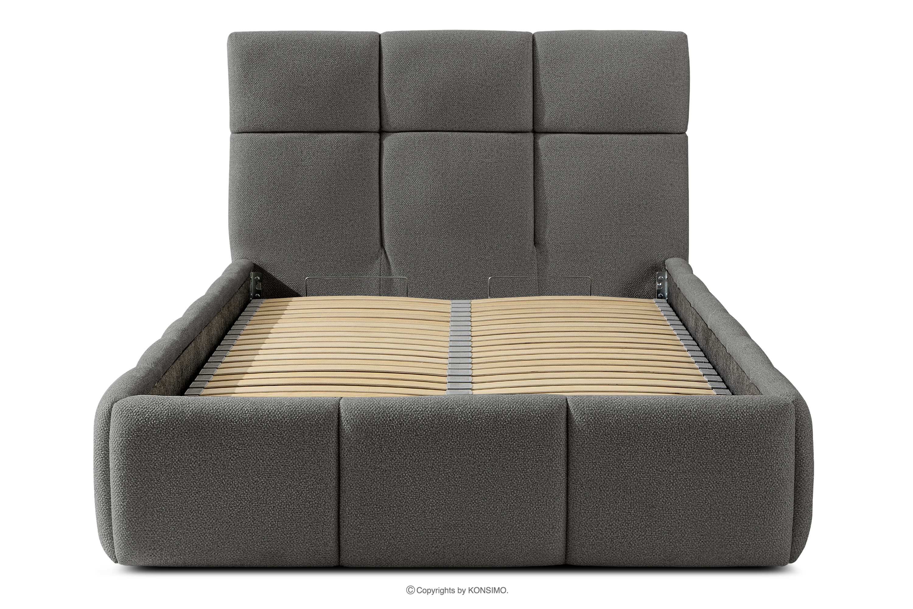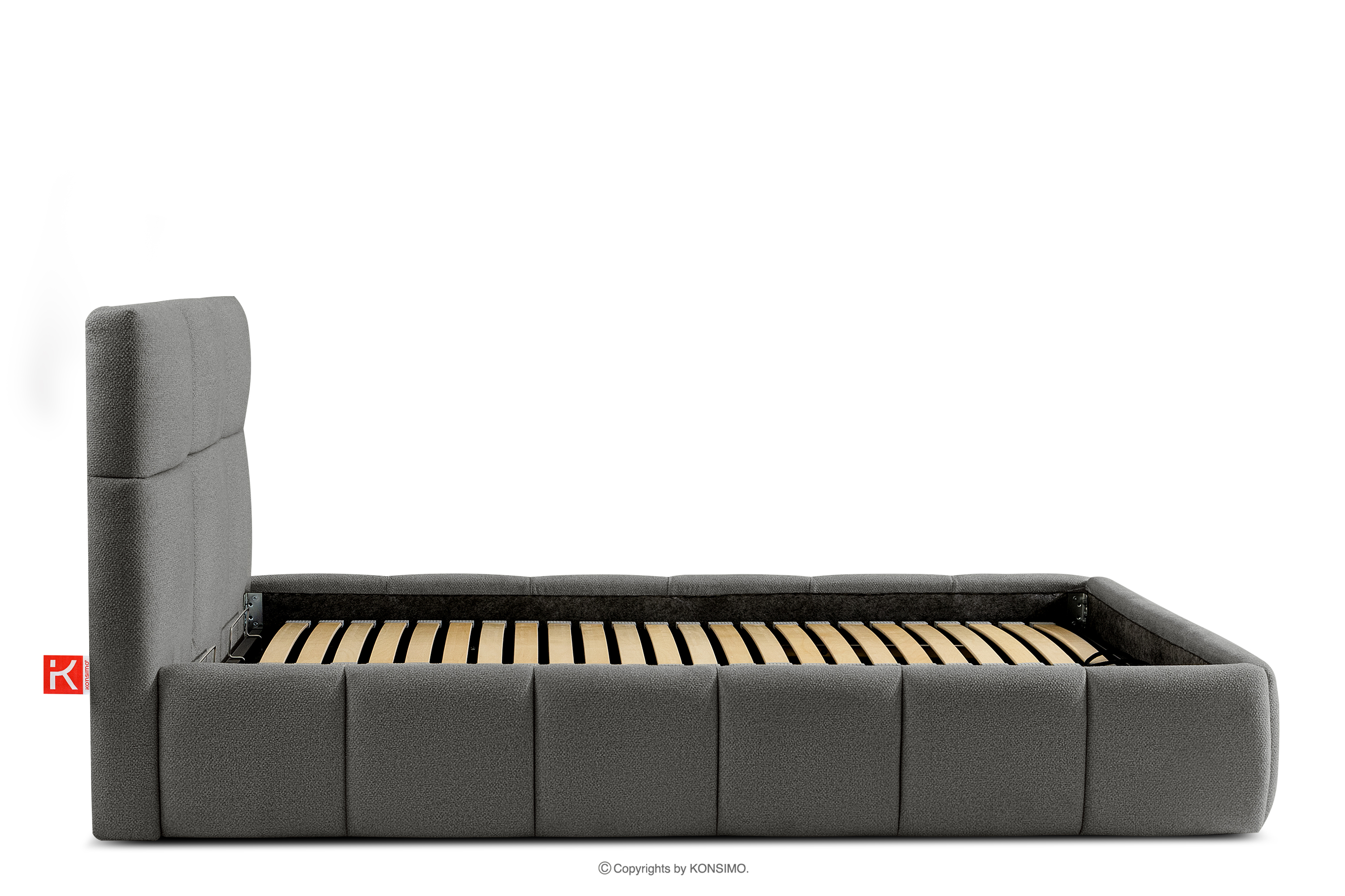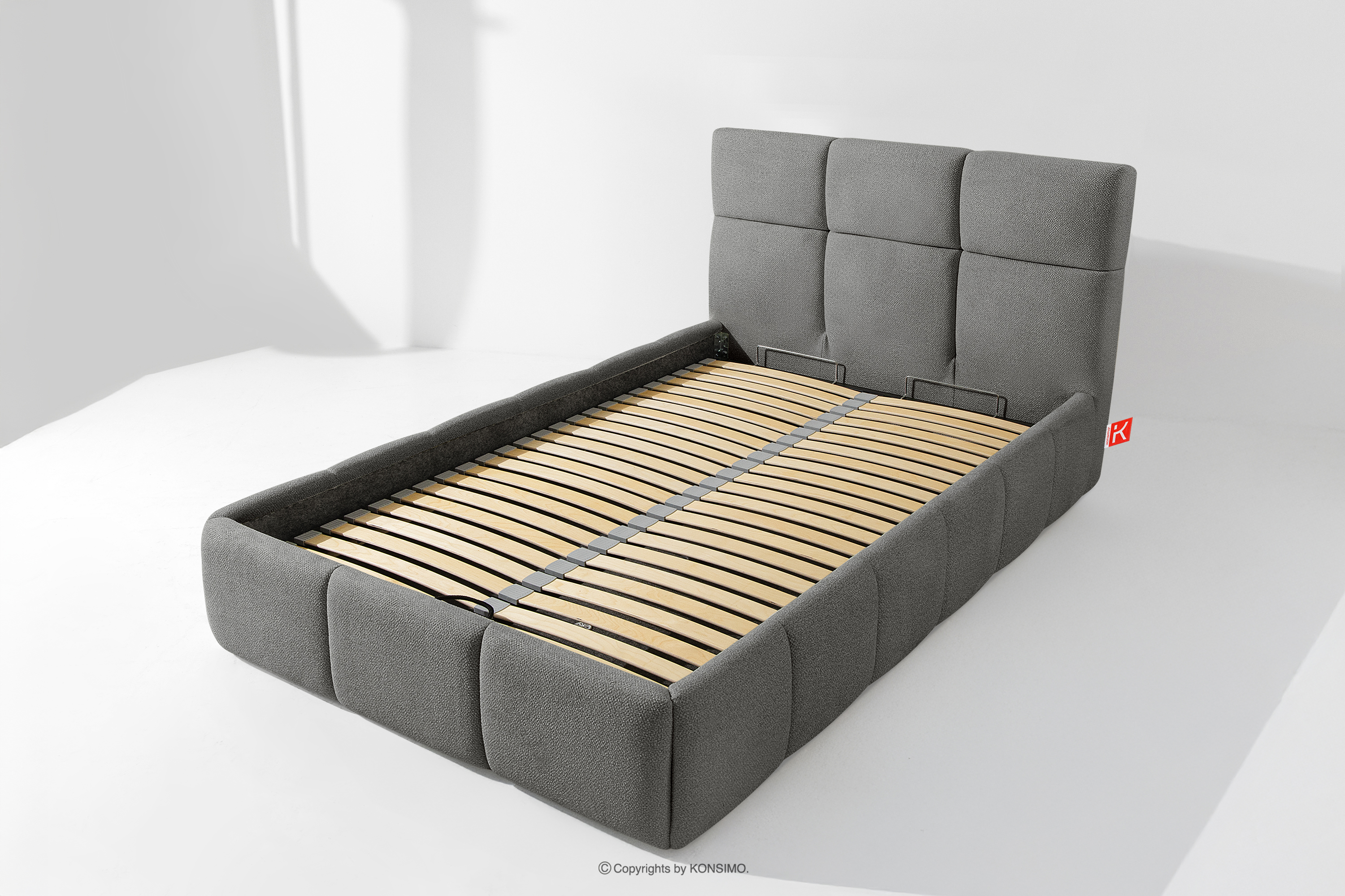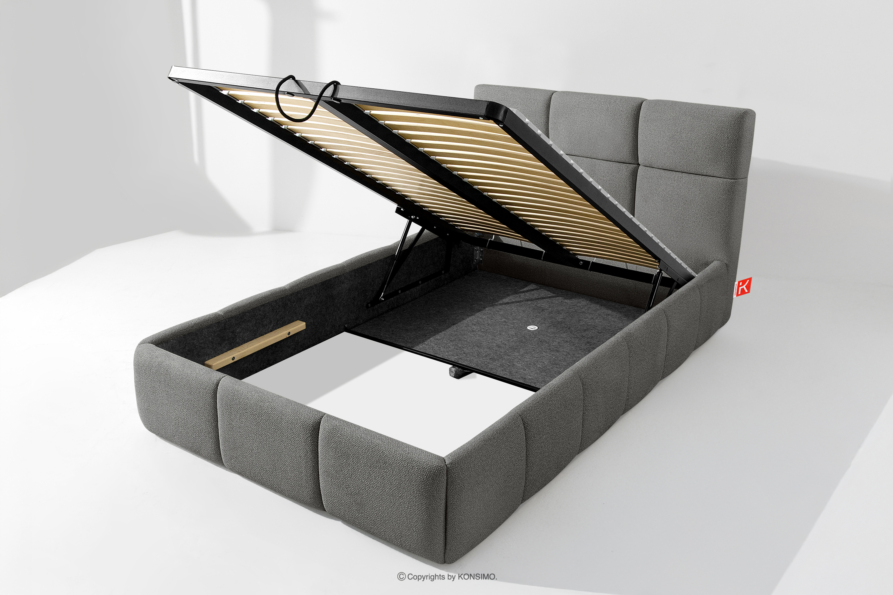 Darüber hinaus hat der Benutzer die Möglichkeit, den Härtegrad des Bettes individuell einzustellen - dank der herausnehmbaren Latten kann eine weichere oder festere Unterlage gewählt werden. Ein weiterer Komfort ist der bequeme Bettzeugbehälter, der sich dank moderner Gasflaschen mühelos und vollautomatisch öffnet. Diese praktische Lösung ermöglicht einen schnellen Zugriff auf das gelagerte Bettzeug, ohne die schwere Matratze manuell anheben zu müssen.