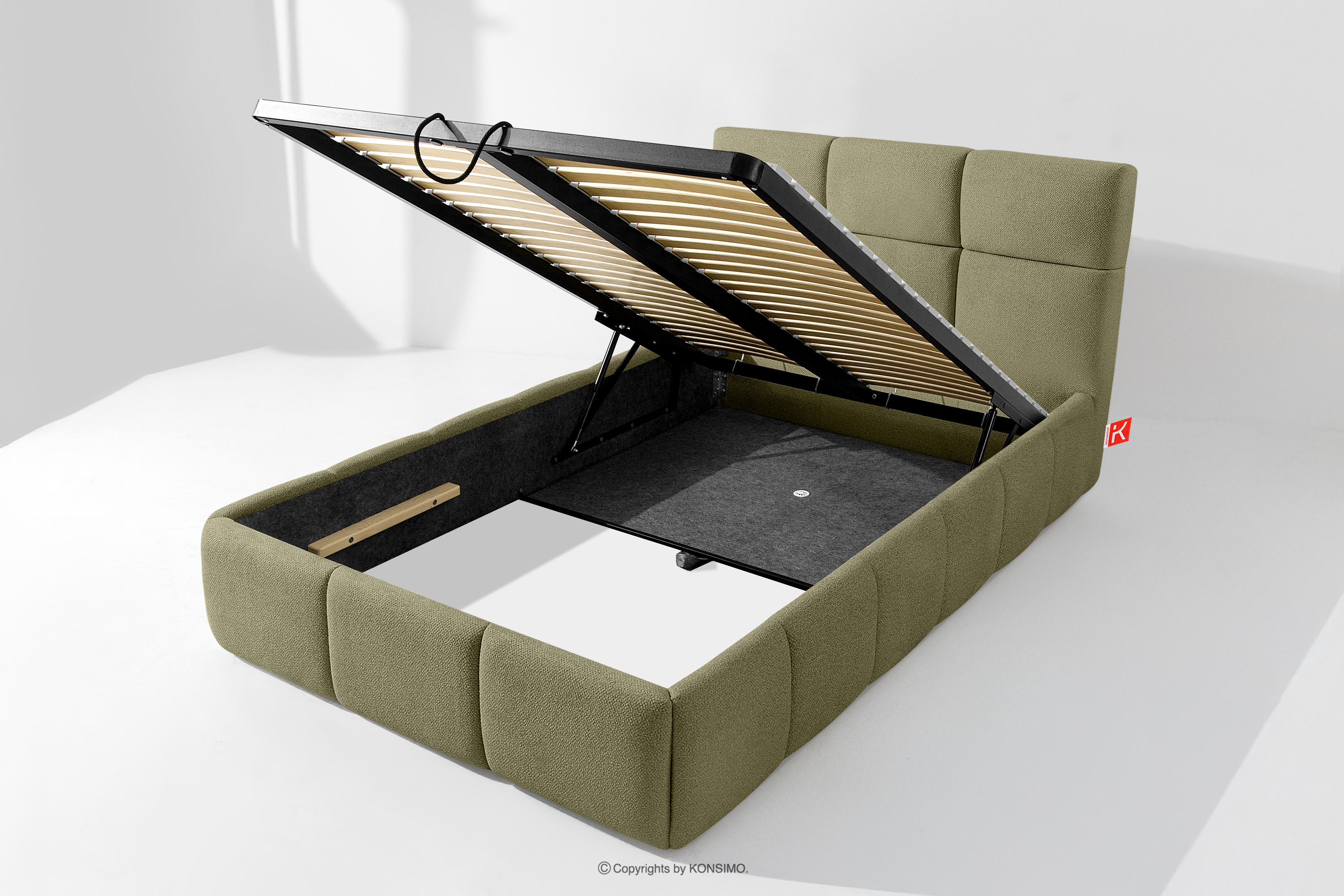 Darüber hinaus hat der Benutzer die Möglichkeit, den Härtegrad des Bettes individuell einzustellen - dank der herausnehmbaren Latten kann eine weichere oder festere Unterlage gewählt werden. Ein weiterer Komfort ist der bequeme Bettzeugbehälter, der sich dank moderner Gasflaschen mühelos und vollautomatisch öffnet. Diese praktische Lösung ermöglicht einen schnellen Zugriff auf das gelagerte Bettzeug, ohne die schwere Matratze manuell anheben zu müssen.