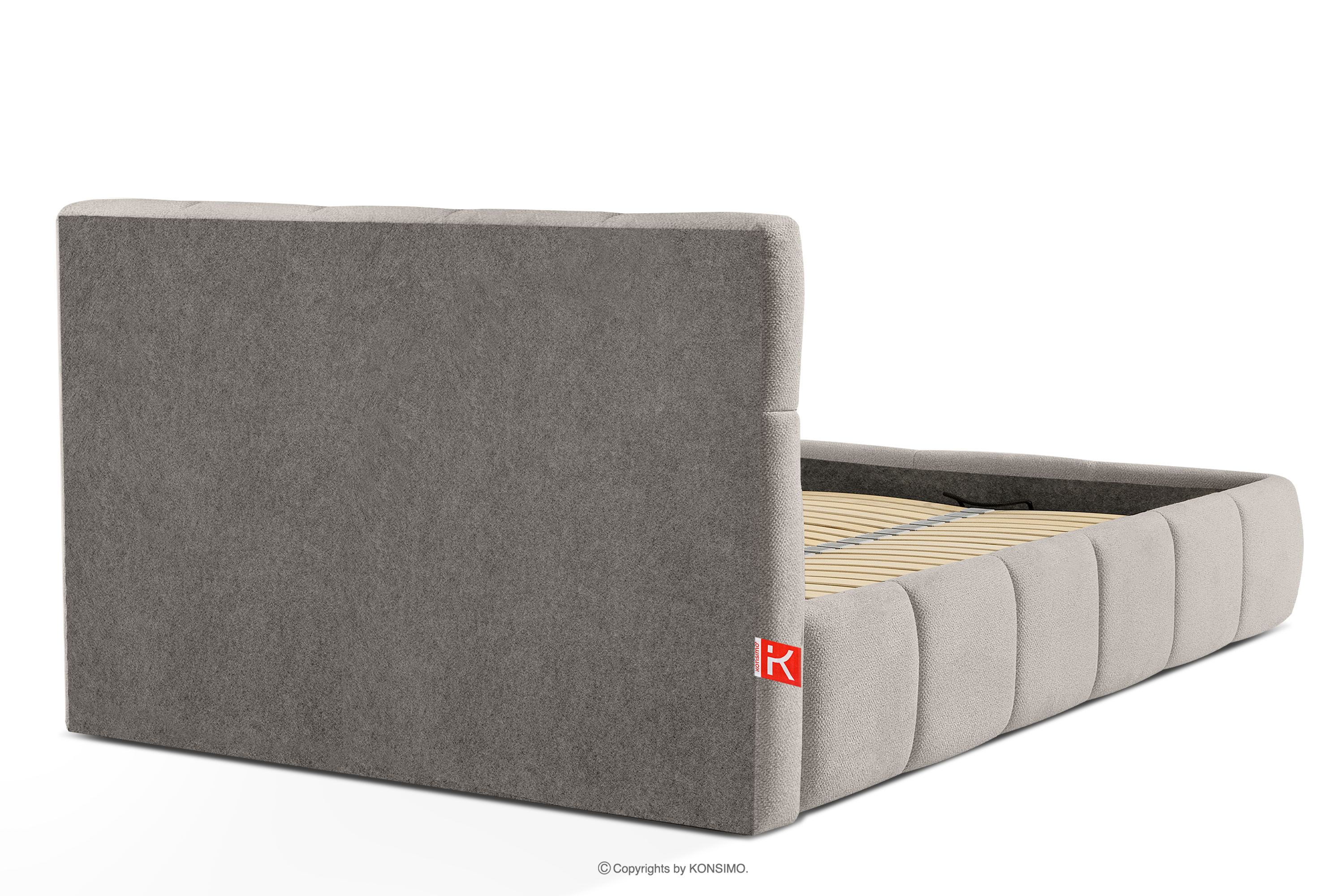 Das 140 cm lange Polsterbett im skandinavischen Stil in Hellgrau verbindet minimalistisches Design mit maximalem Komfort. Seine einzigartige Form lässt es nicht nur bemerkenswert aussehen, sondern bietet auch Komfort auf höchstem Niveau. Das Bett ist mit einem stabilen Rahmen aus flexiblen Holzlatten ausgestattet, die die Matratze optimal stützen und sich den natürlichen Bewegungen des Körpers anpassen.