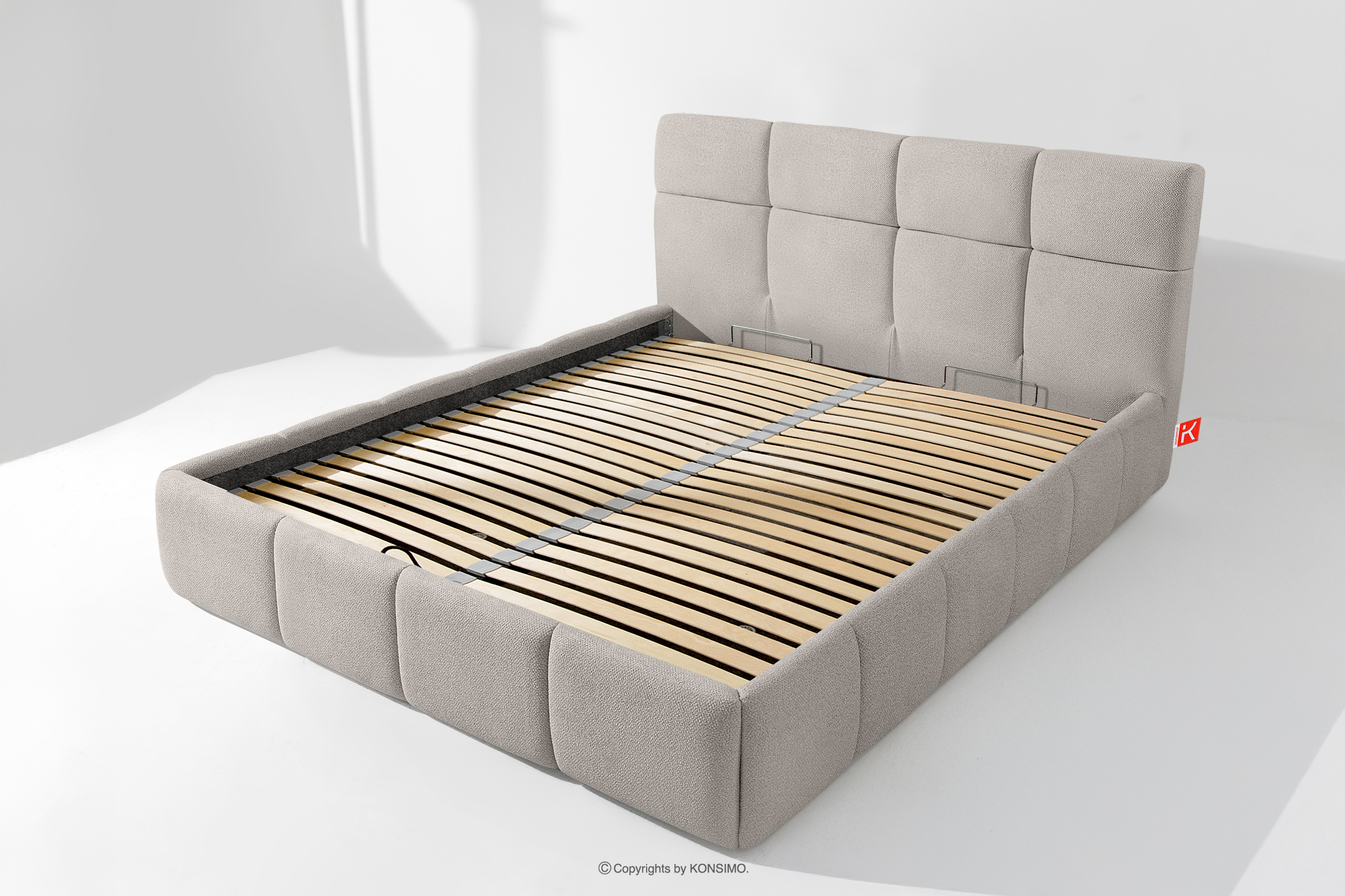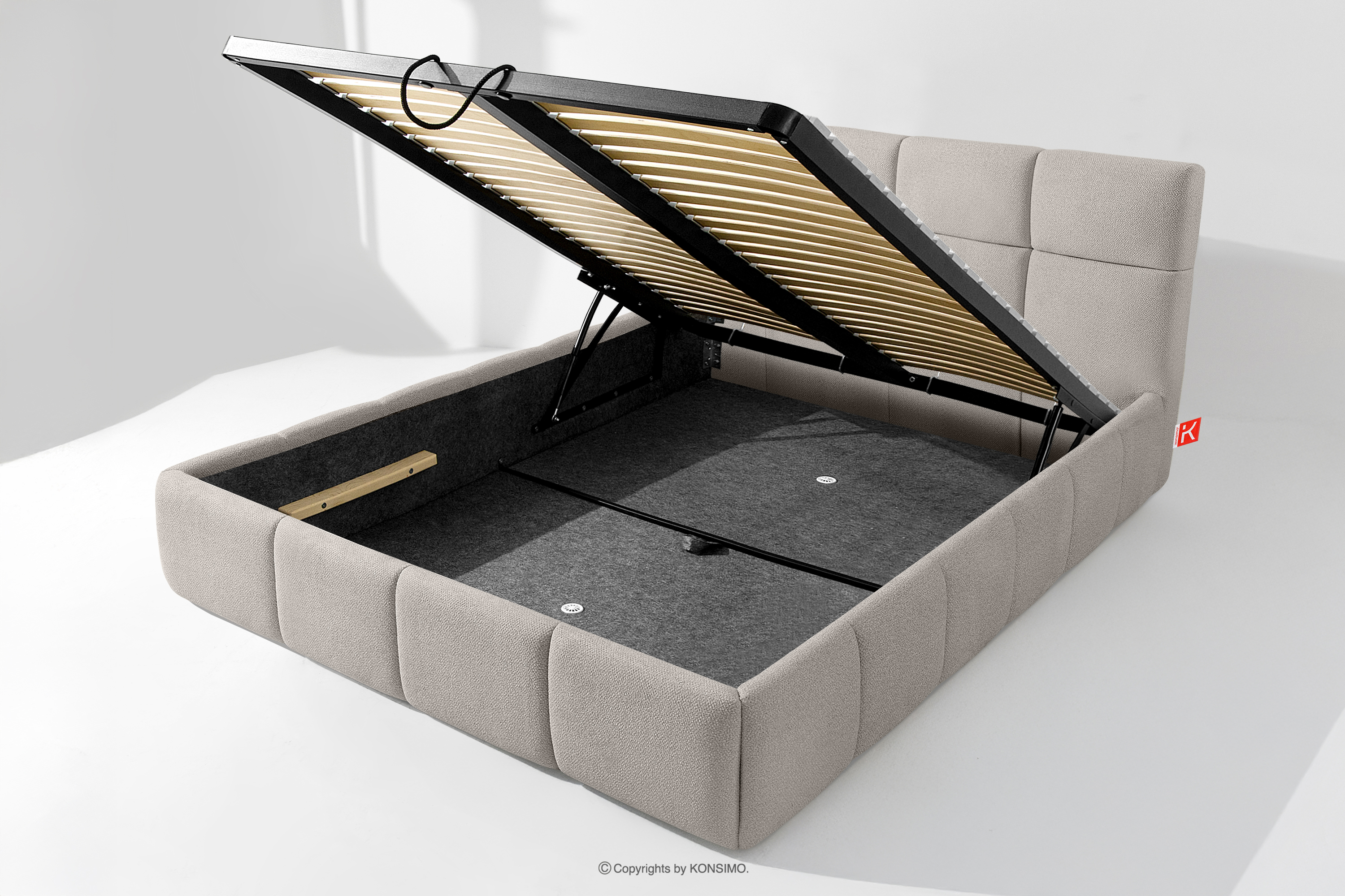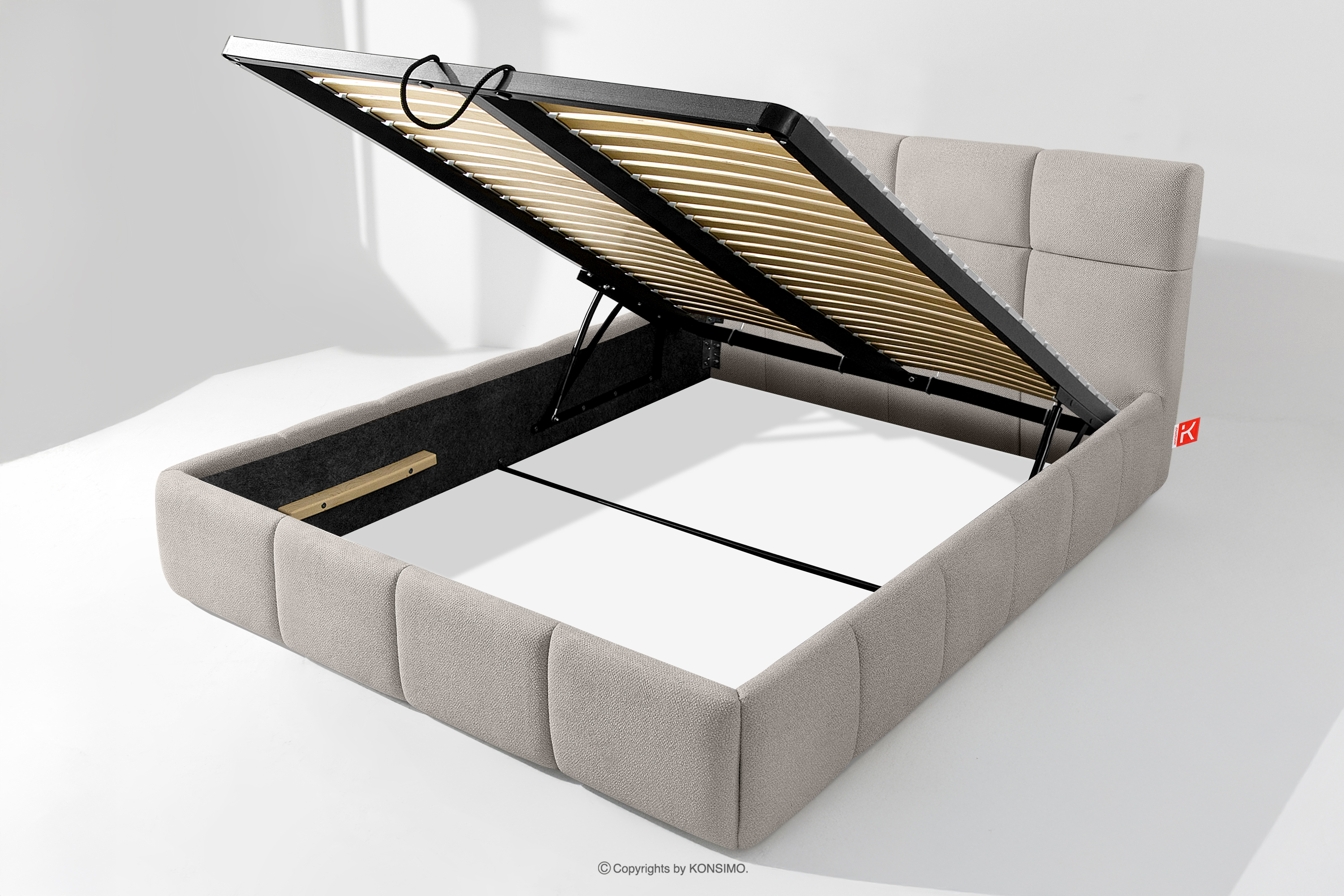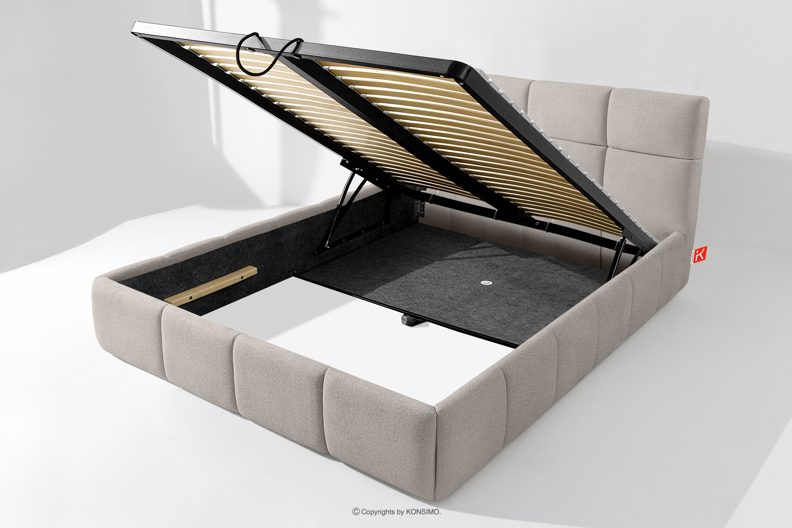 Darüber hinaus hat der Benutzer die Möglichkeit, den Härtegrad des Bettes individuell einzustellen - dank der herausnehmbaren Latten kann eine weichere oder festere Unterlage gewählt werden. Ein weiterer Komfort ist der bequeme Bettzeugbehälter, der sich dank moderner Gasflaschen mühelos und vollautomatisch öffnet. Diese praktische Lösung ermöglicht einen schnellen Zugriff auf das gelagerte Bettzeug, ohne die schwere Matratze manuell anheben zu müssen.