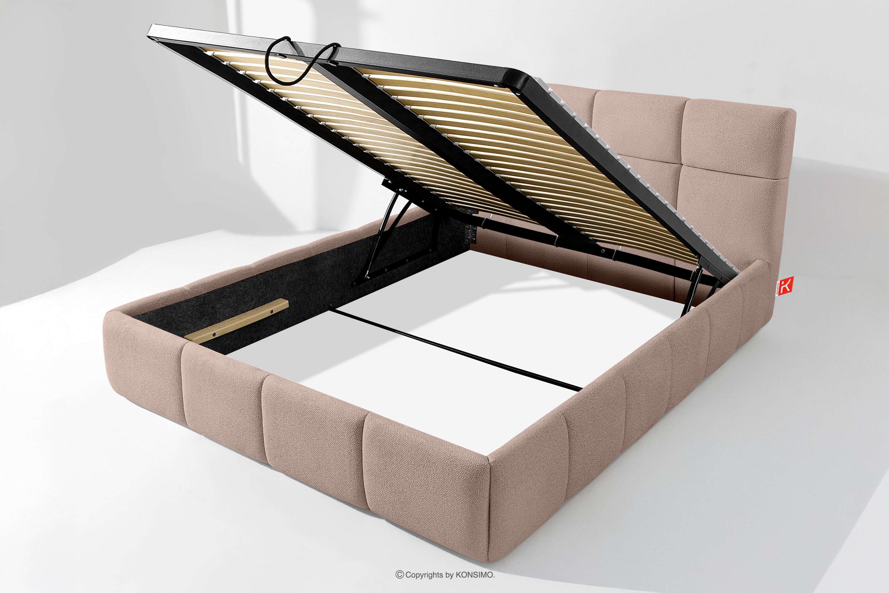 Darüber hinaus hat der Benutzer die Möglichkeit, den Härtegrad des Bettes individuell einzustellen - dank der herausnehmbaren Latten kann eine weichere oder festere Unterlage gewählt werden. Ein weiterer Komfort ist der bequeme Bettzeugbehälter, der sich dank moderner Gasflaschen mühelos und vollautomatisch öffnet. Diese praktische Lösung ermöglicht einen schnellen Zugriff auf das gelagerte Bettzeug, ohne die schwere Matratze manuell anheben zu müssen.