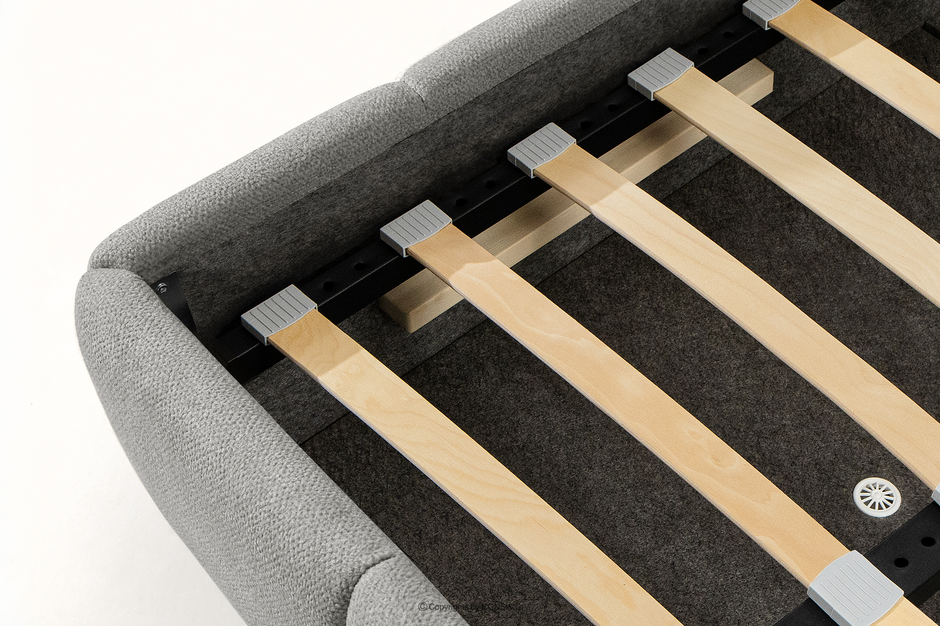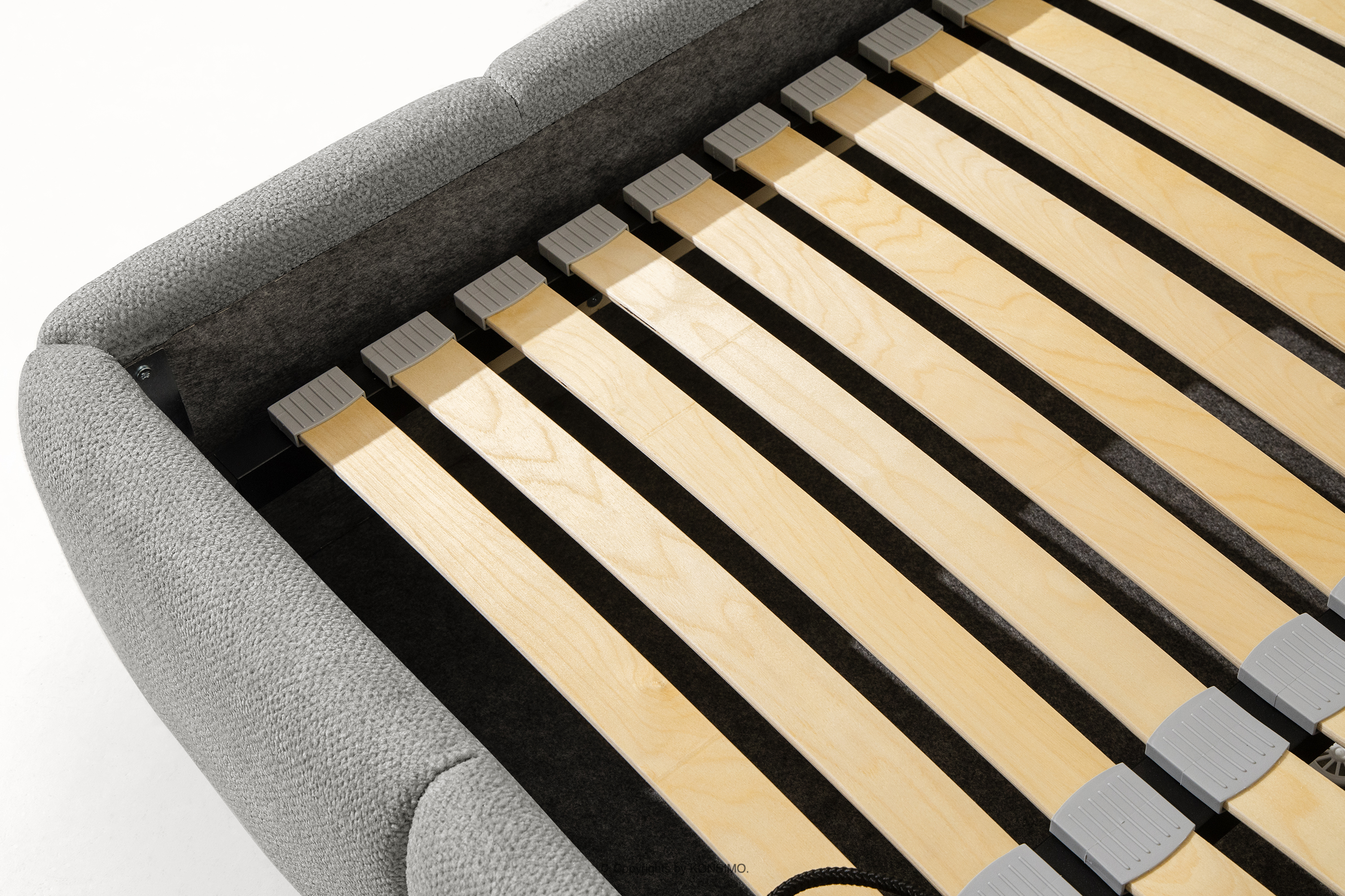 Das 160 cm lange Polsterbett im skandinavischen Stil in Grau verbindet minimalistisches Design mit maximalem Komfort. Seine einzigartige Form lässt es nicht nur bemerkenswert aussehen, sondern bietet auch Komfort auf höchstem Niveau. Das Bett ist mit einem stabilen Rahmen aus flexiblen Holzlatten ausgestattet, die die Matratze optimal stützen und sich den natürlichen Bewegungen des Körpers anpassen.