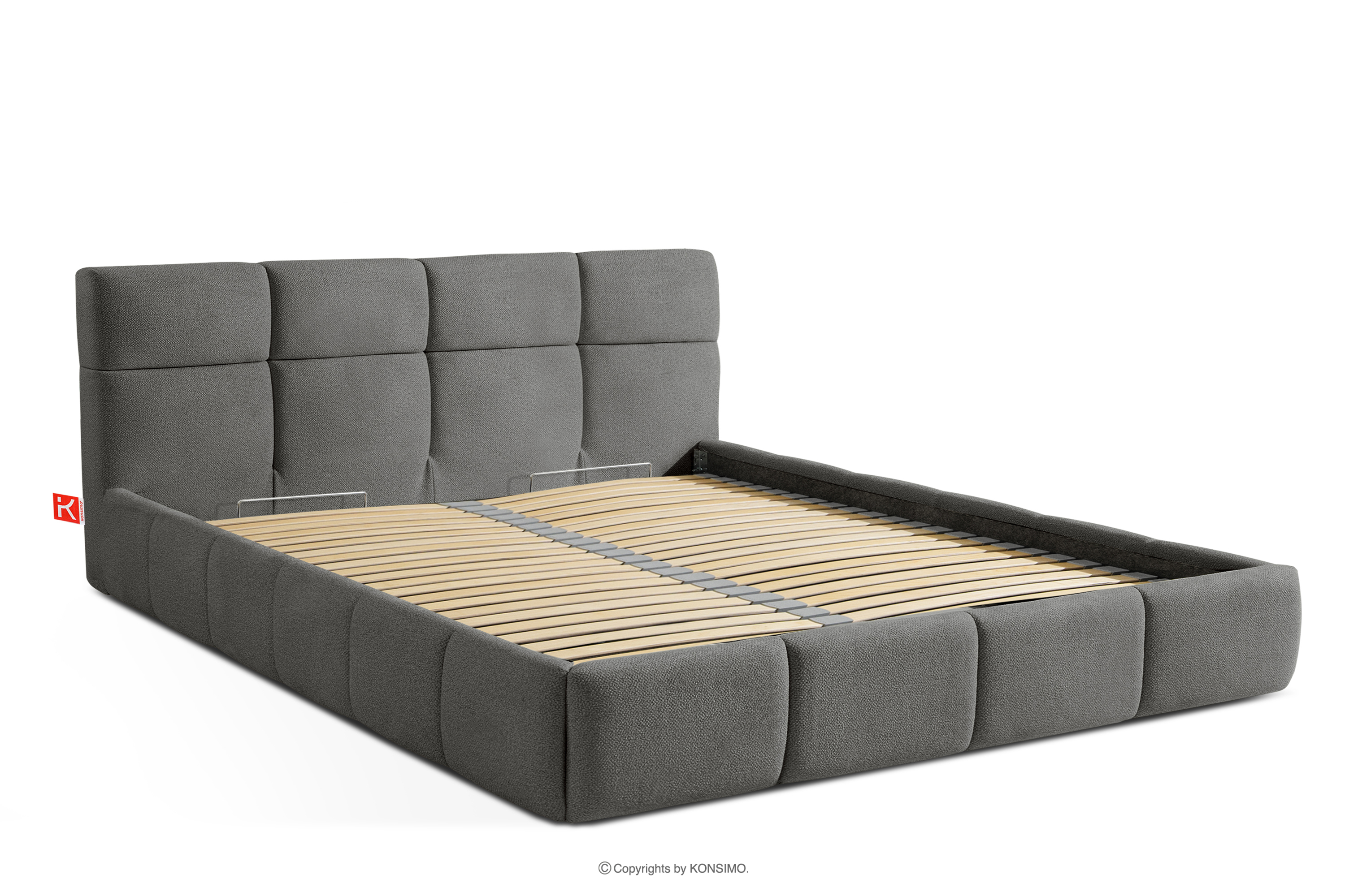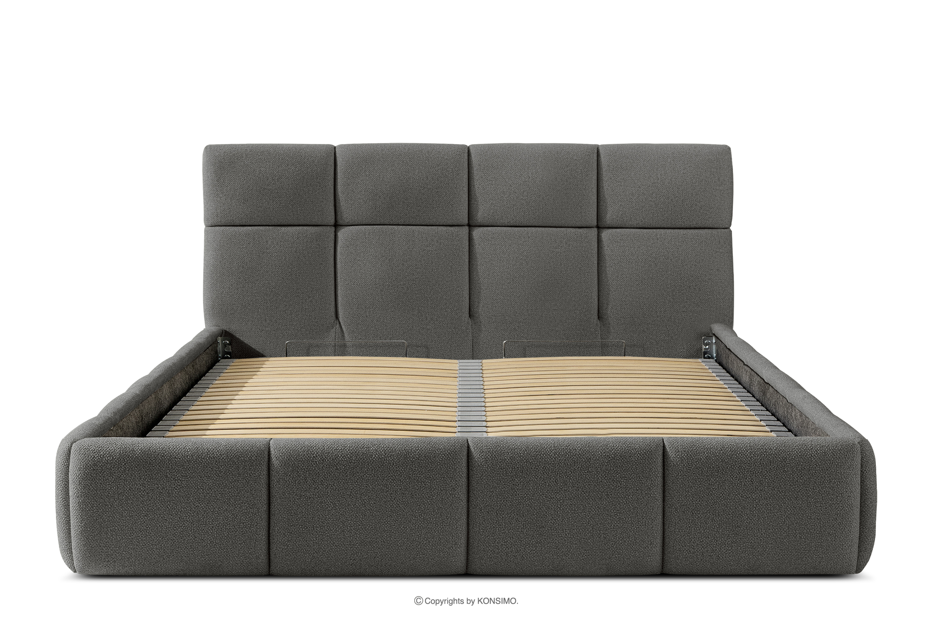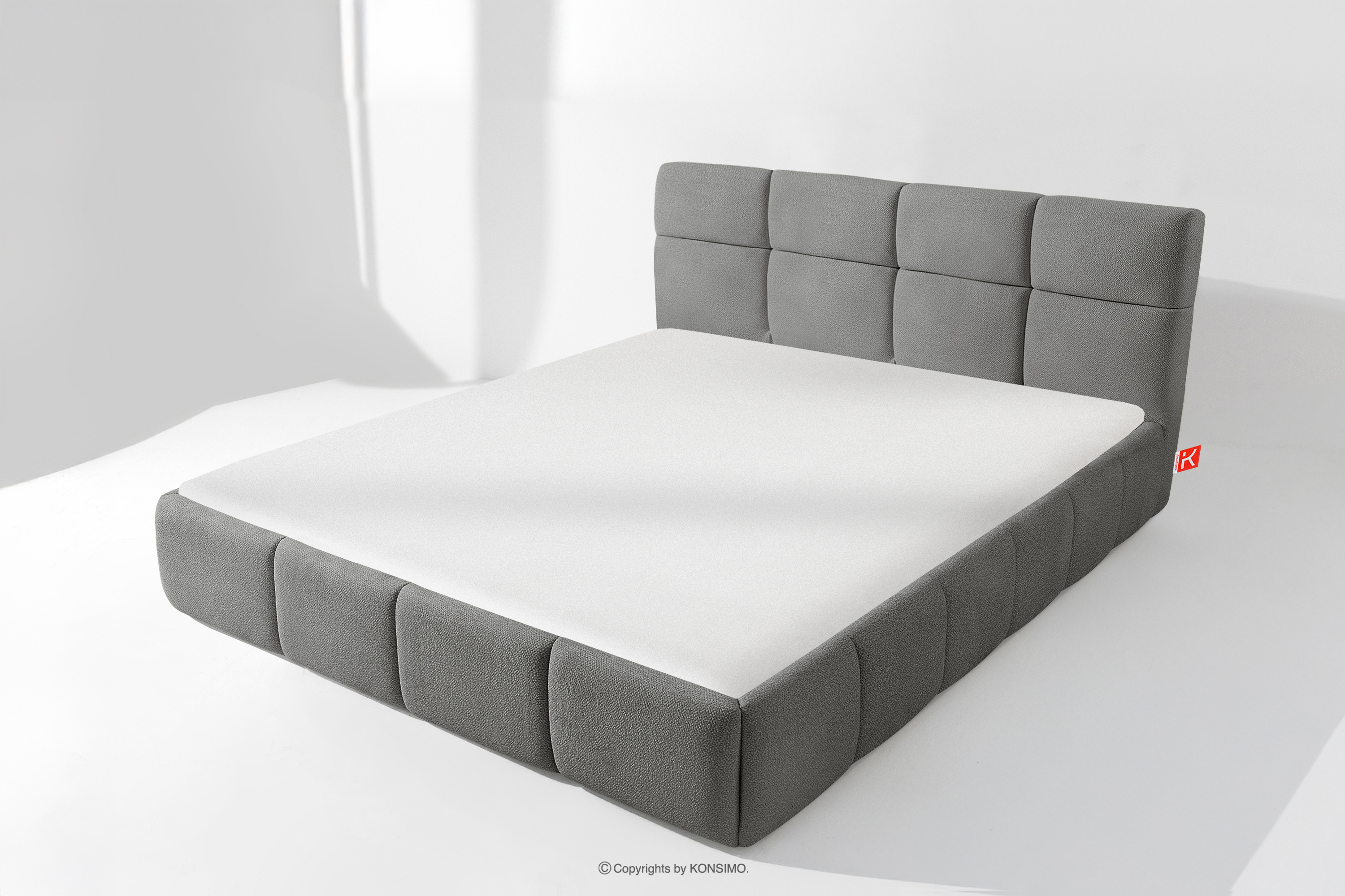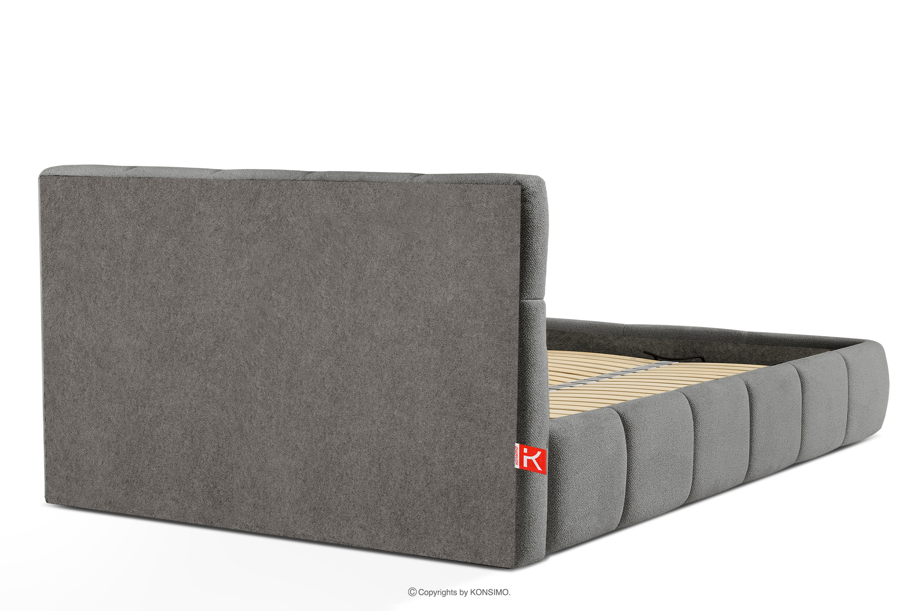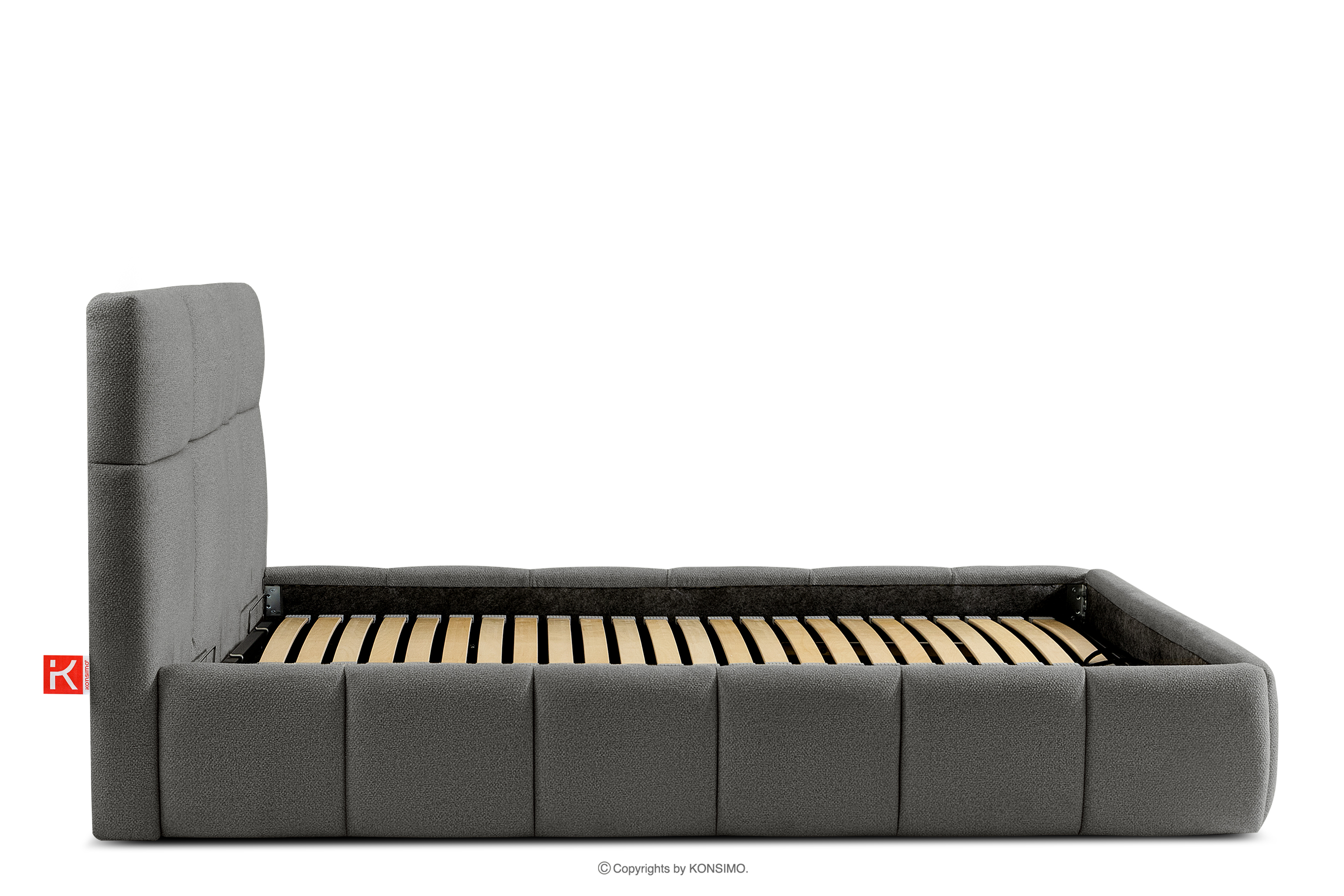 Der für den Bezug des Bettes verwendete Stoff ist von höchster Qualität - er sieht nicht nur schön aus und verleiht dem Interieur Eleganz, sondern ist auch äußerst funktionell. Er ist widerstandsfähig gegen Abrieb und alltägliche Beanspruchung. Der Stoff passt perfekt in moderne und skandinavische Interieurs, in denen Schlichtheit und Funktionalität Hand in Hand gehen. Der Boden des Bettkastens ist herausnehmbar, so dass die Reinigung unter den Möbeln leicht möglich ist. Außerdem sind die Wände und die Bodenplatte des Kastens mit Filz versehen, der das Verrutschen von Bettzeug und anderen gelagerten Gegenständen verhindert und für Ordnung und Ästhetik sorgt.