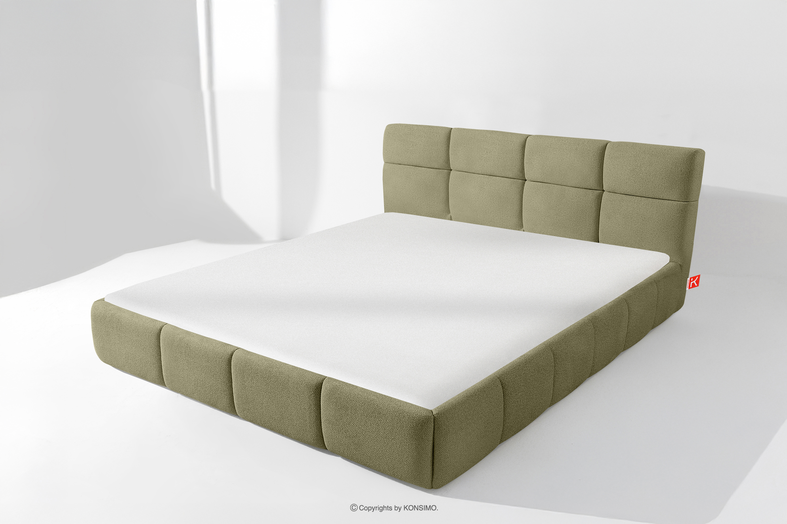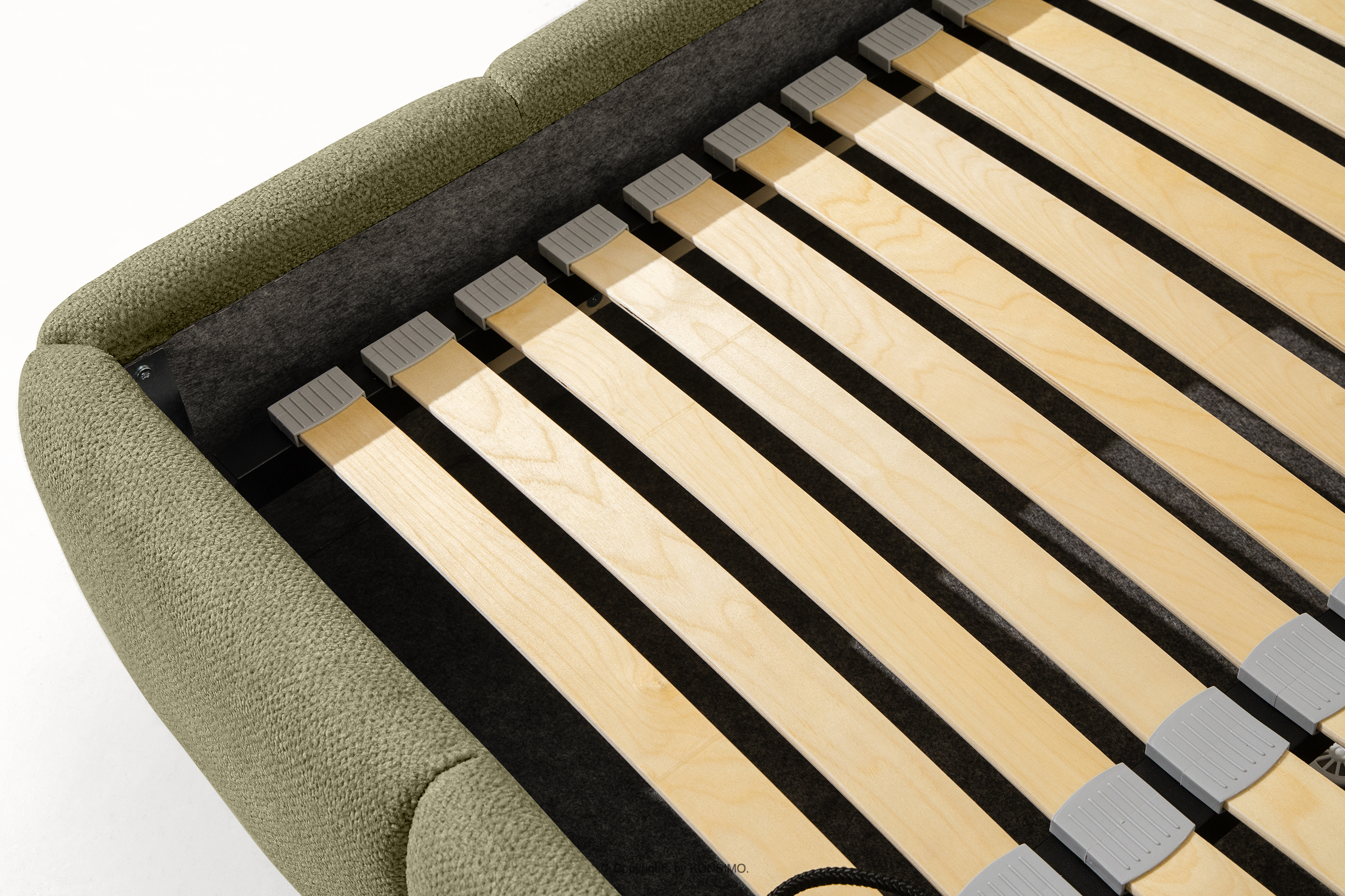 Das 180 cm lange Polsterbett im skandinavischen Stil grün verbindet minimalistisches Design mit maximalem Komfort. Seine einzigartige Form lässt es nicht nur bemerkenswert aussehen, sondern bietet auch Komfort auf höchstem Niveau. Das Bett ist mit einem stabilen Rahmen aus flexiblen Holzlatten ausgestattet, die die Matratze optimal stützen und sich den natürlichen Bewegungen des Körpers anpassen.