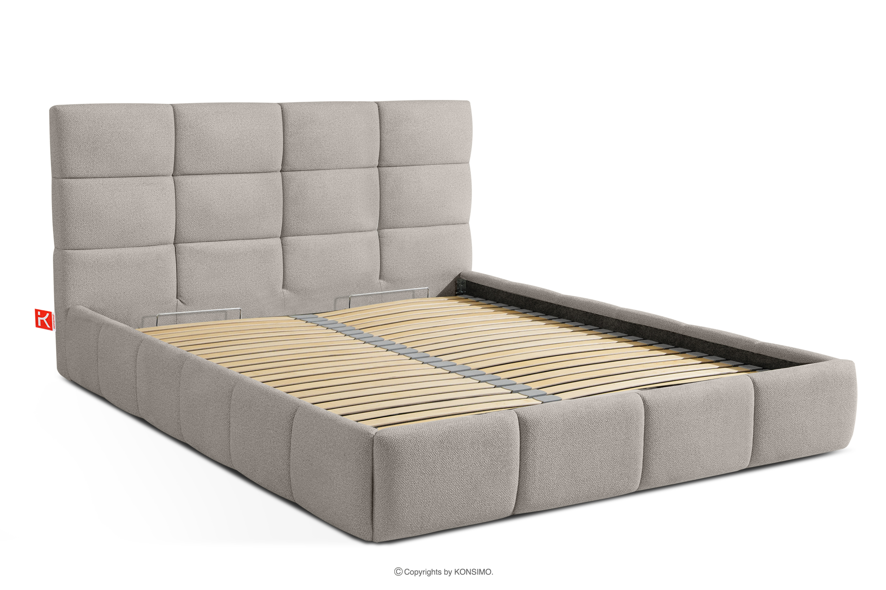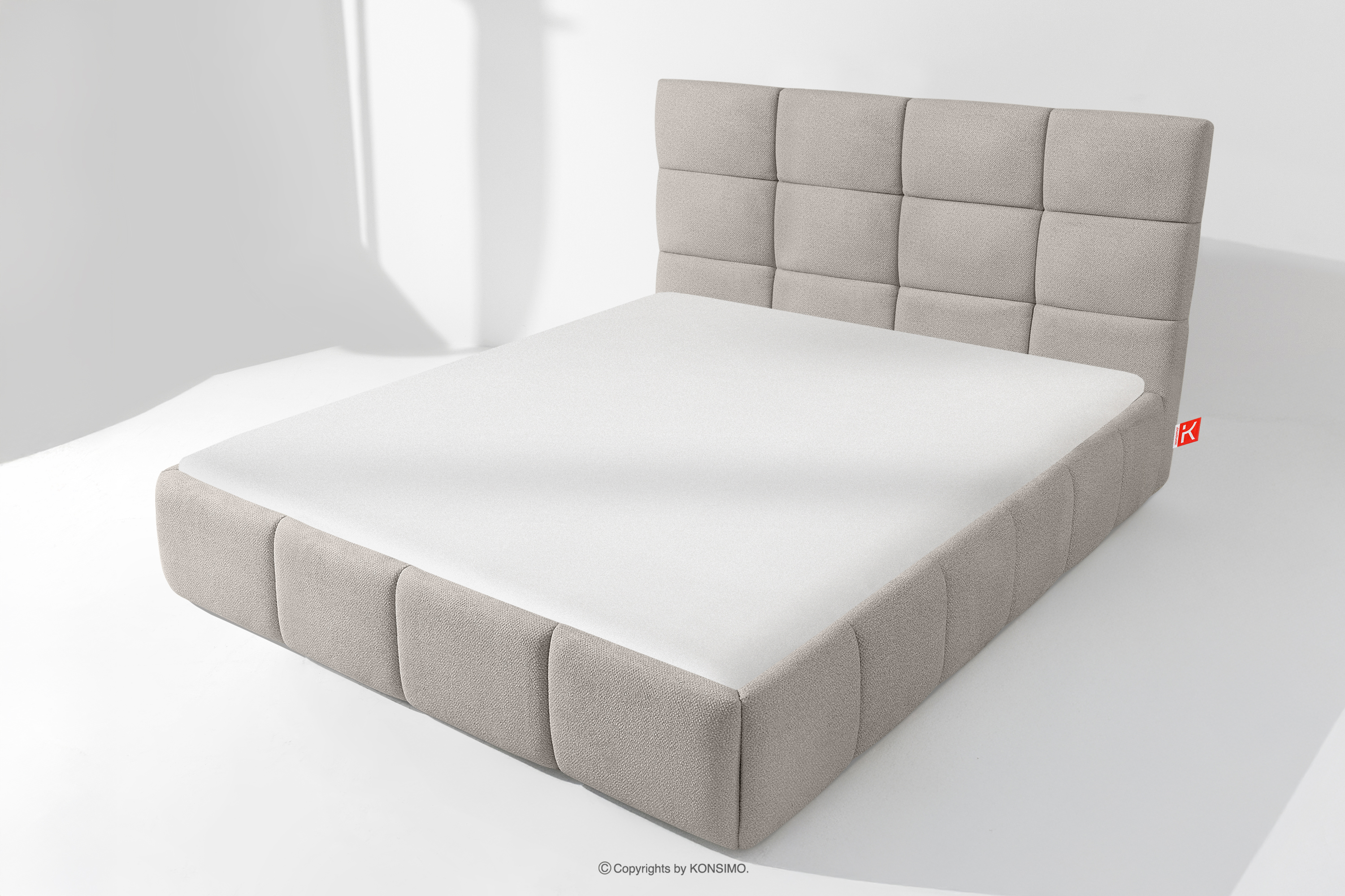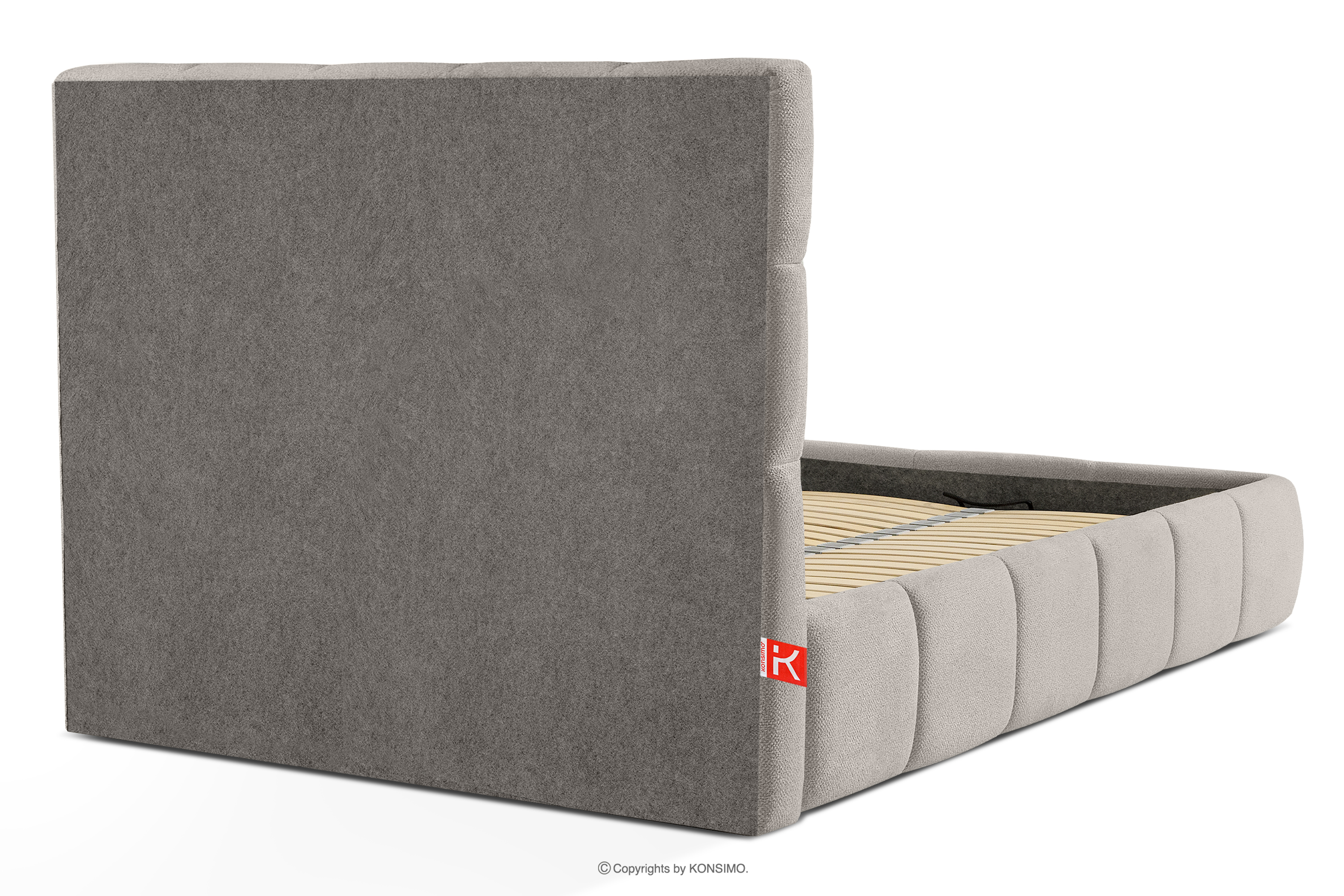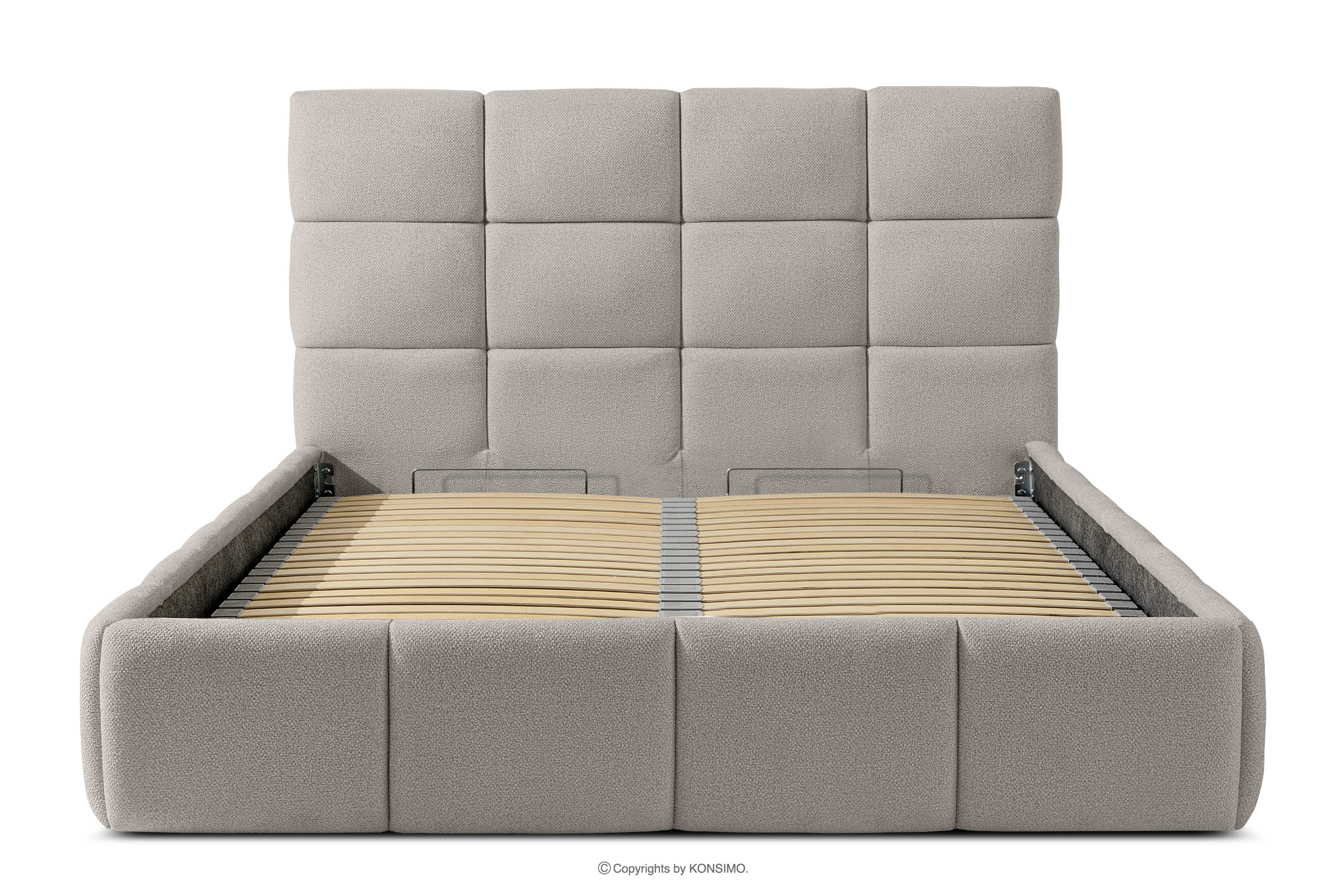 Der für den Bezug des Bettes verwendete Stoff ist von höchster Qualität - er sieht nicht nur schön aus und verleiht dem Interieur Eleganz, sondern ist auch äußerst funktionell. Er ist widerstandsfähig gegen Abrieb und alltägliche Beanspruchung. Der Stoff passt perfekt in moderne und skandinavische Interieurs, in denen Schlichtheit und Funktionalität Hand in Hand gehen. Der Boden des Bettkastens ist herausnehmbar, so dass die Reinigung unter den Möbeln leicht möglich ist. Außerdem sind die Wände und die Bodenplatte des Kastens mit Filz versehen, der das Verrutschen von Bettzeug und anderen gelagerten Gegenständen verhindert und für Ordnung und Ästhetik sorgt.