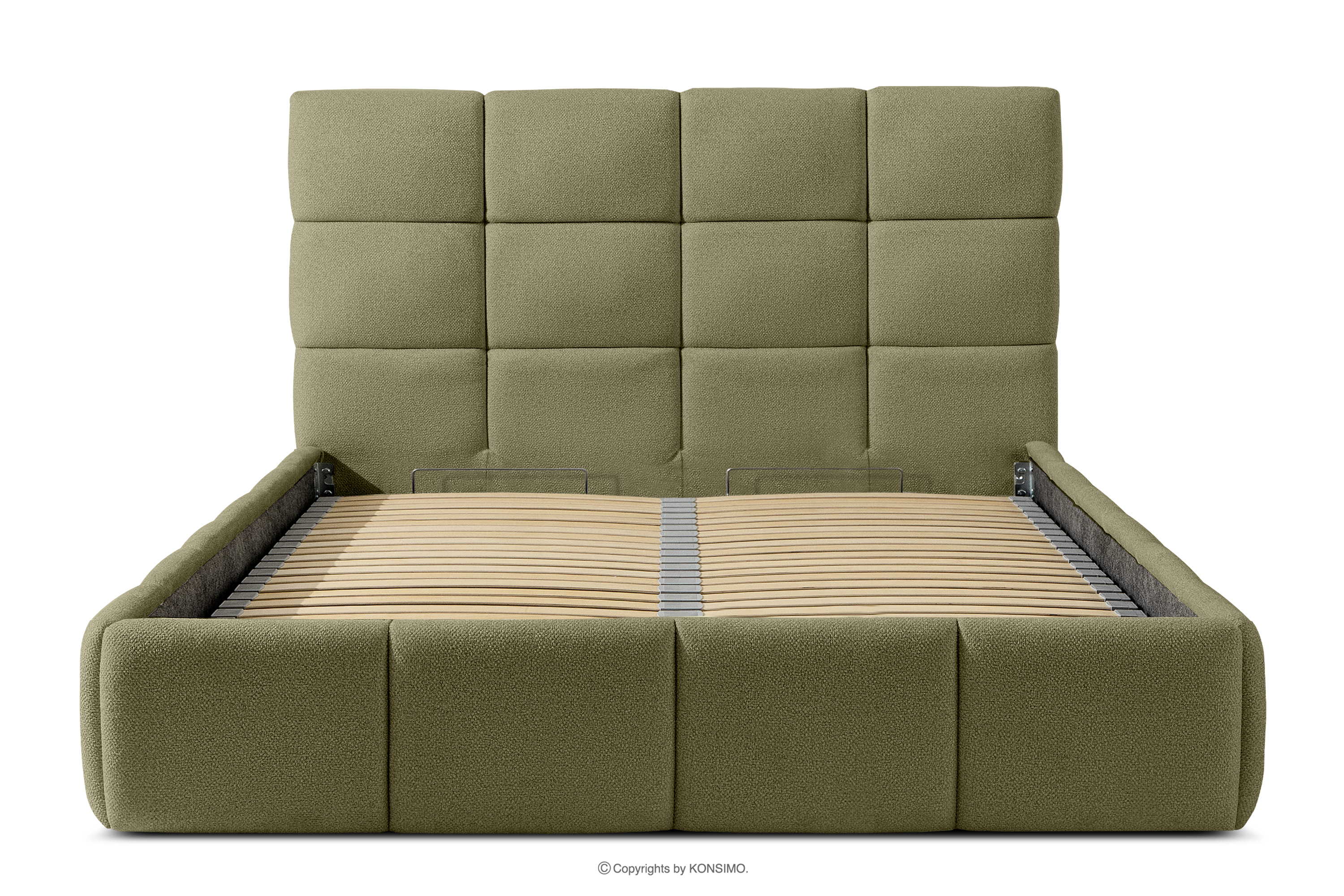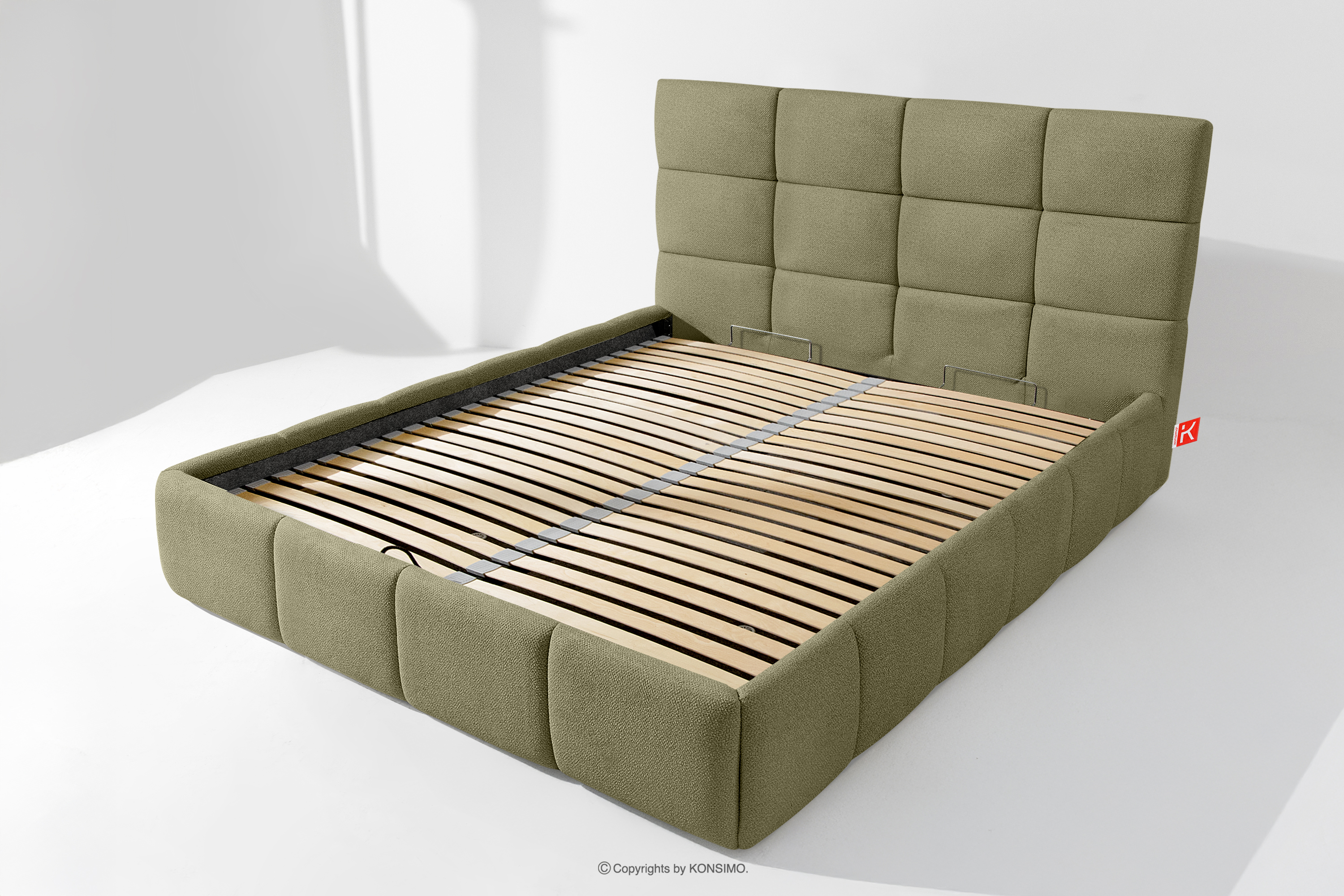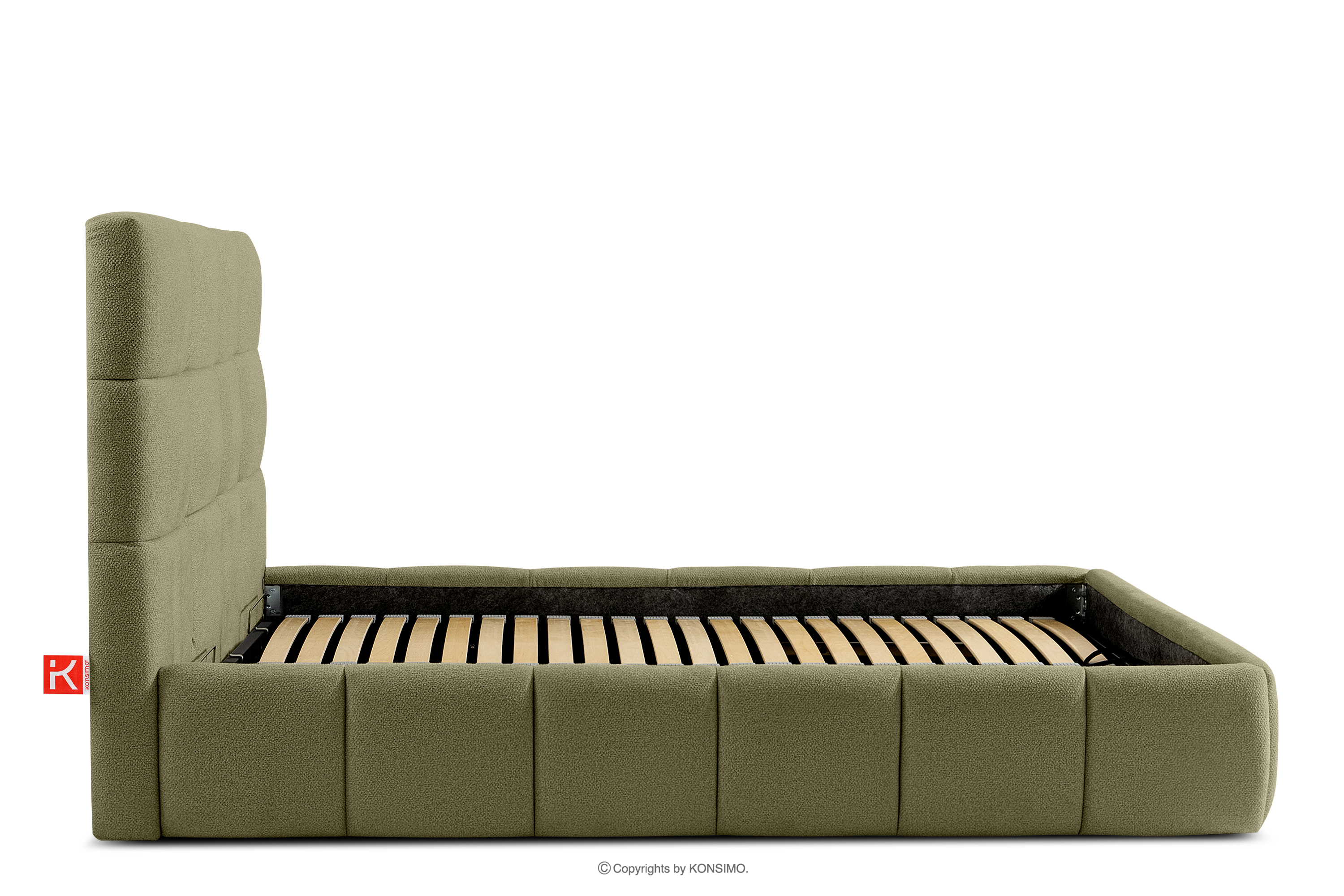 Darüber hinaus hat der Benutzer die Möglichkeit, den Härtegrad des Bettes individuell einzustellen - dank der herausnehmbaren Latten kann eine weichere oder festere Unterlage gewählt werden. Ein weiterer Komfort ist der bequeme Bettzeugbehälter, der sich dank moderner Gasflaschen mühelos und vollautomatisch öffnet. Diese praktische Lösung ermöglicht einen schnellen Zugriff auf das gelagerte Bettzeug, ohne die schwere Matratze manuell anheben zu müssen.