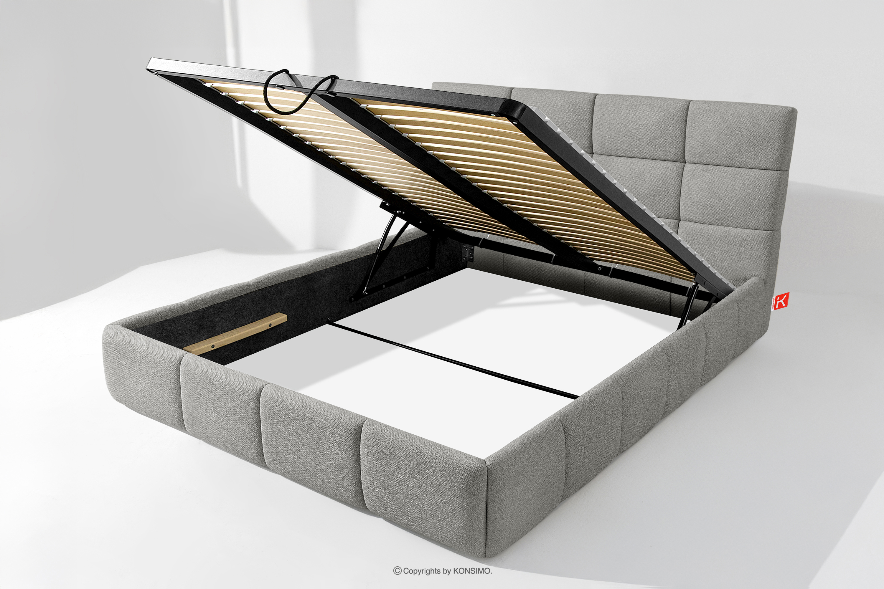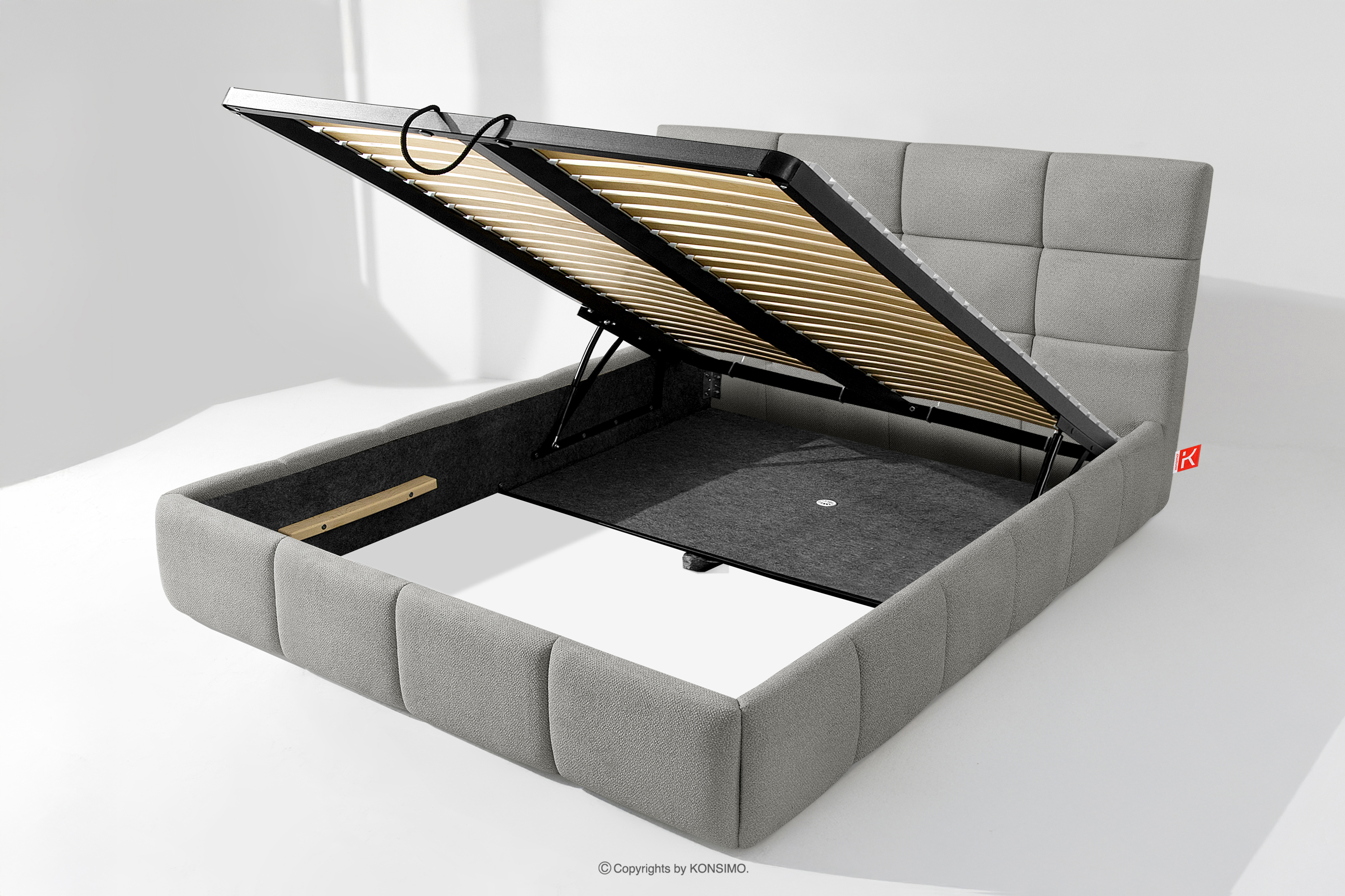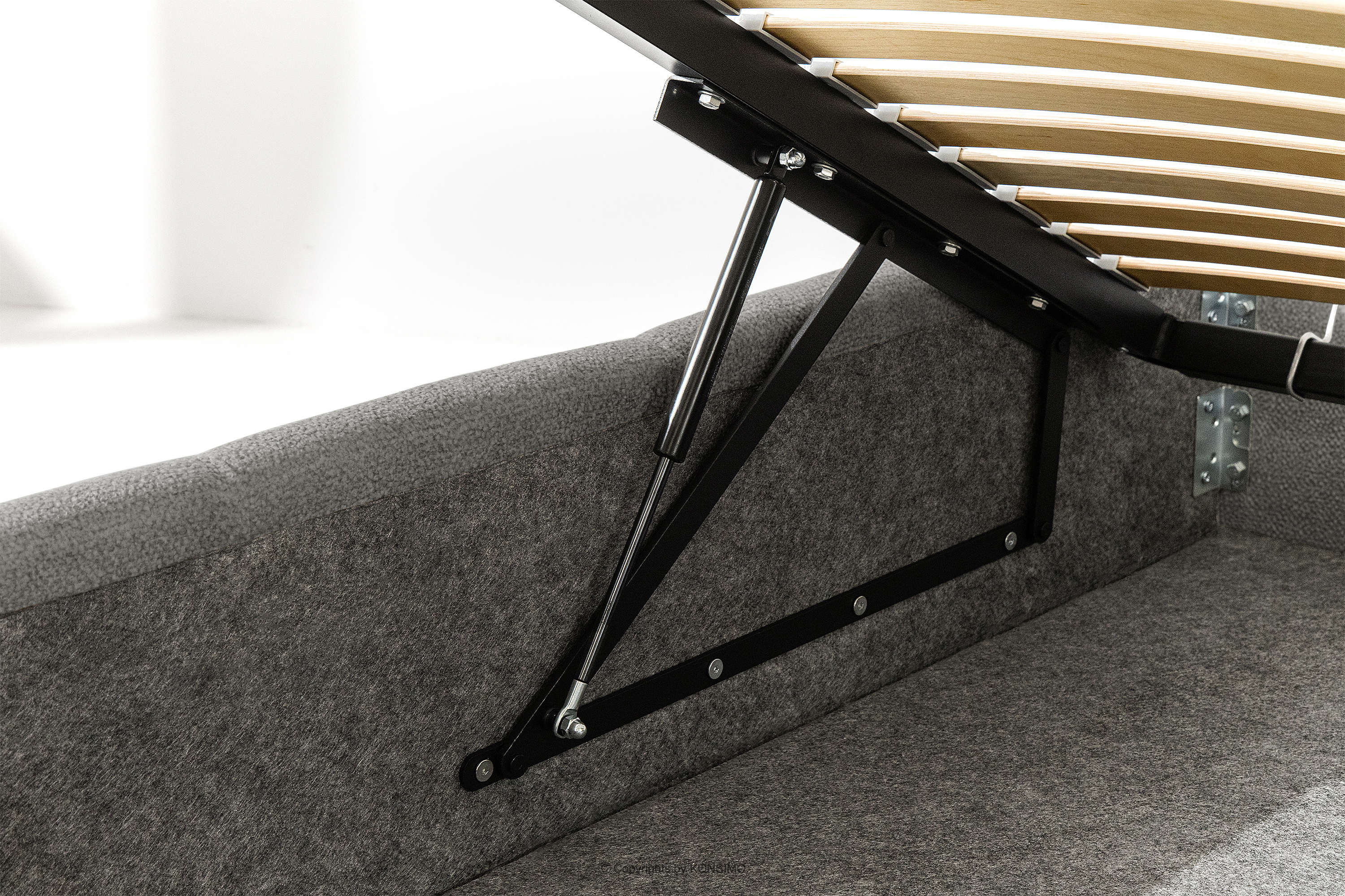 Darüber hinaus hat der Benutzer die Möglichkeit, den Härtegrad des Bettes individuell einzustellen - dank der herausnehmbaren Latten kann eine weichere oder festere Unterlage gewählt werden. Ein weiterer Komfort ist der bequeme Bettzeugbehälter, der sich dank moderner Gasflaschen mühelos und vollautomatisch öffnet. Diese praktische Lösung ermöglicht einen schnellen Zugriff auf das gelagerte Bettzeug, ohne die schwere Matratze manuell anheben zu müssen.