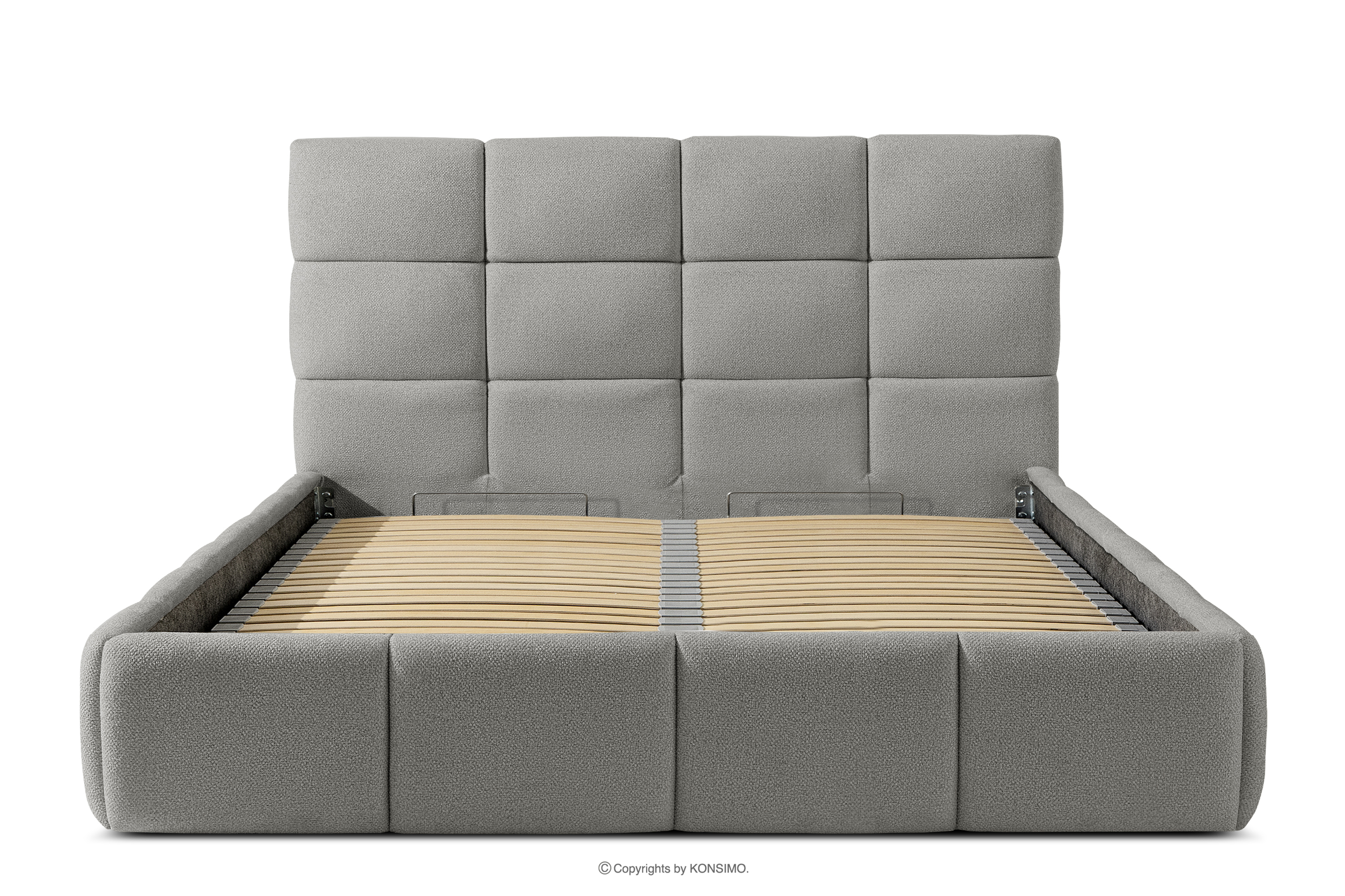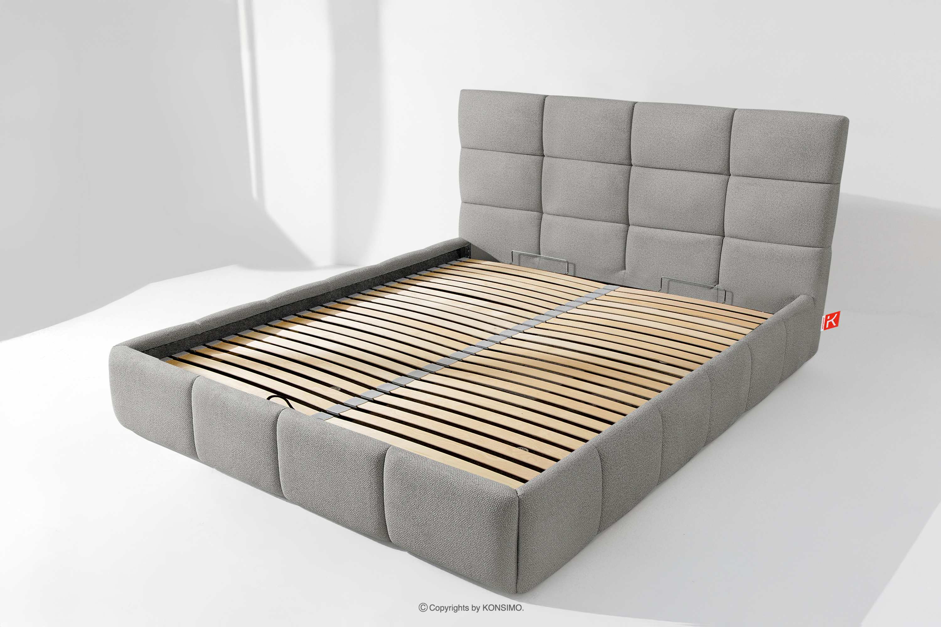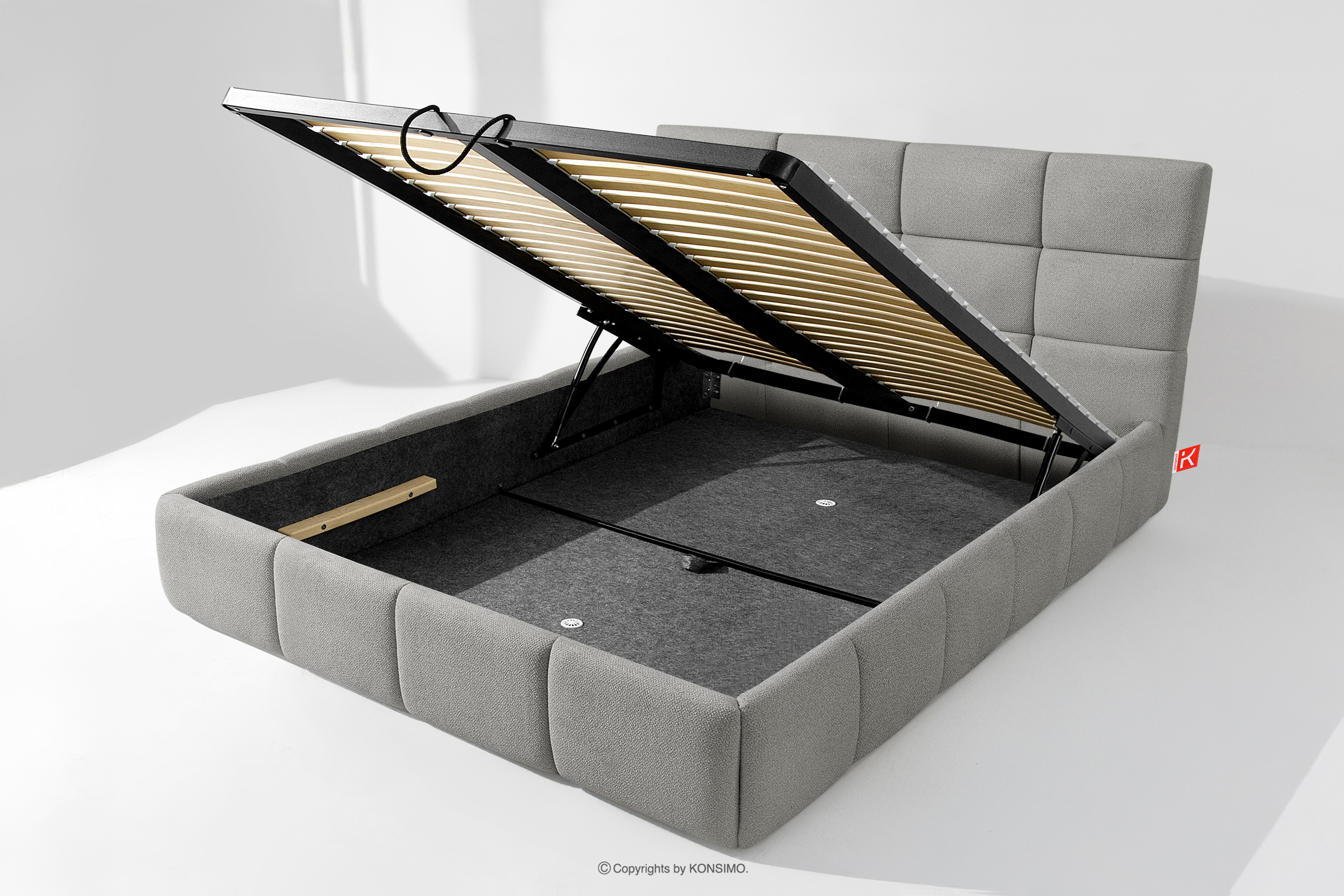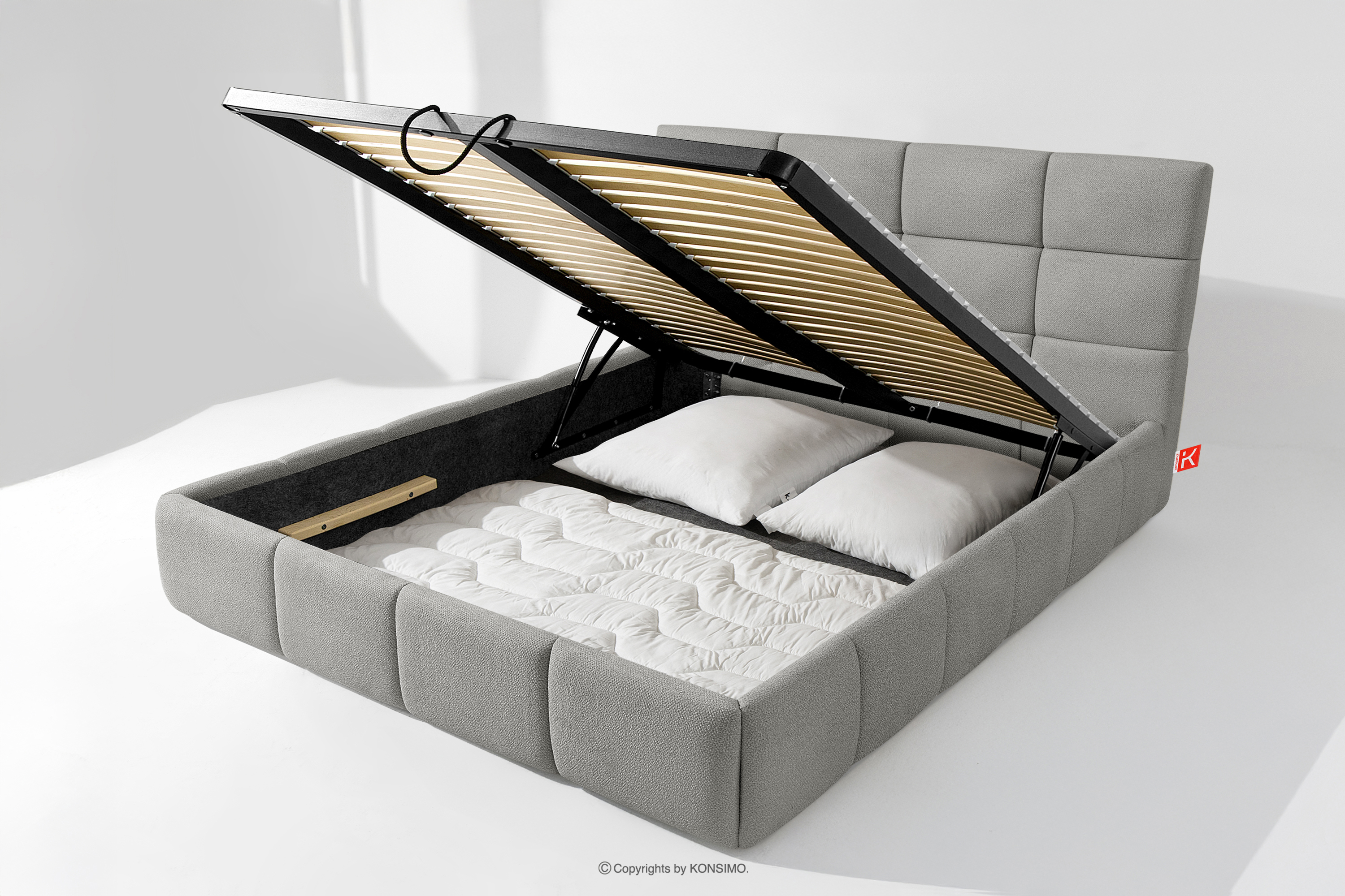 Darüber hinaus hat der Benutzer die Möglichkeit, den Härtegrad des Bettes individuell einzustellen - dank der herausnehmbaren Latten kann eine weichere oder festere Unterlage gewählt werden. Ein weiterer Komfort ist der bequeme Bettzeugbehälter, der sich dank moderner Gasflaschen mühelos und vollautomatisch öffnet. Diese praktische Lösung ermöglicht einen schnellen Zugriff auf das gelagerte Bettzeug, ohne die schwere Matratze manuell anheben zu müssen.