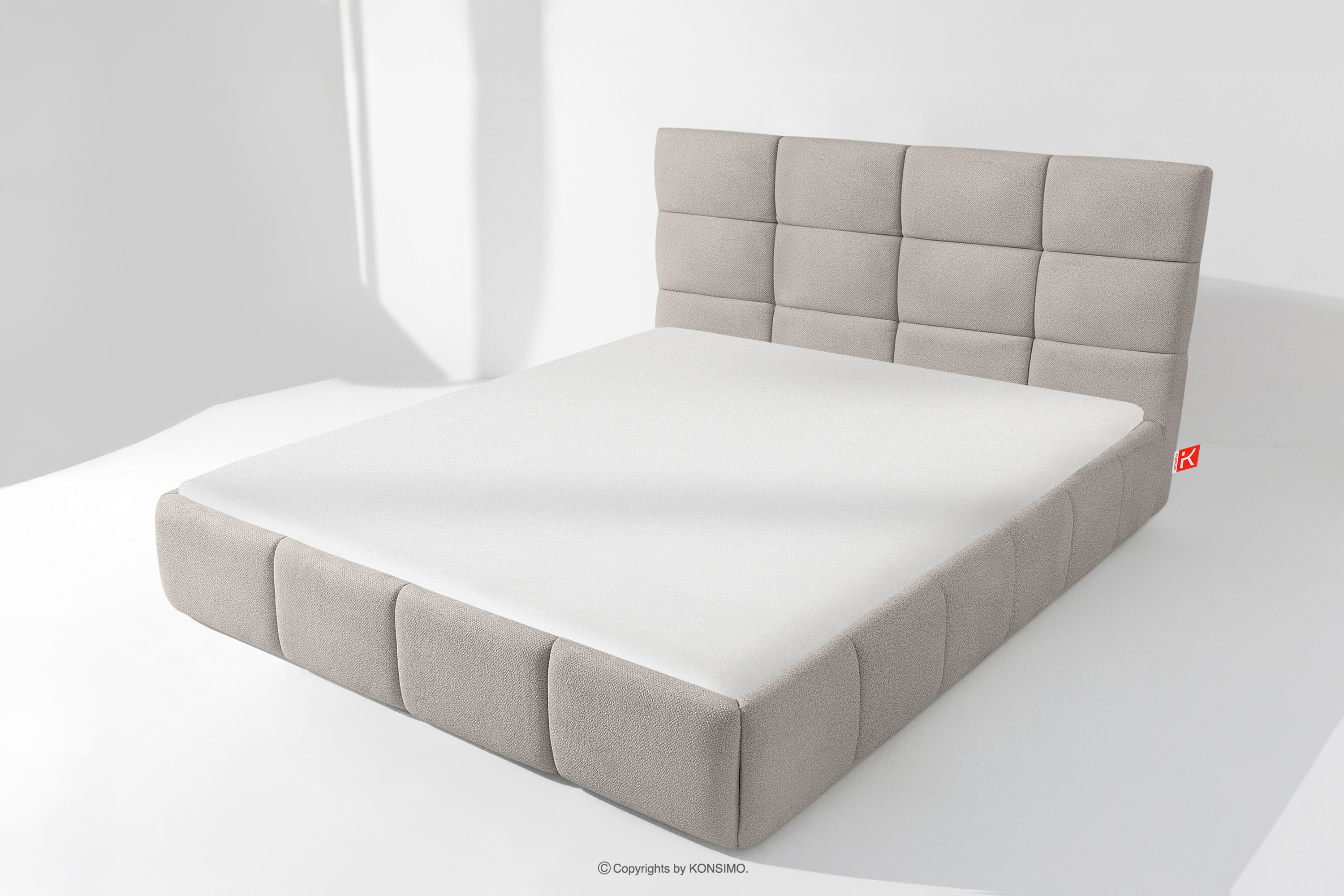 für das Produkt Bett 160 cm aus Bouclestoff hellgrau