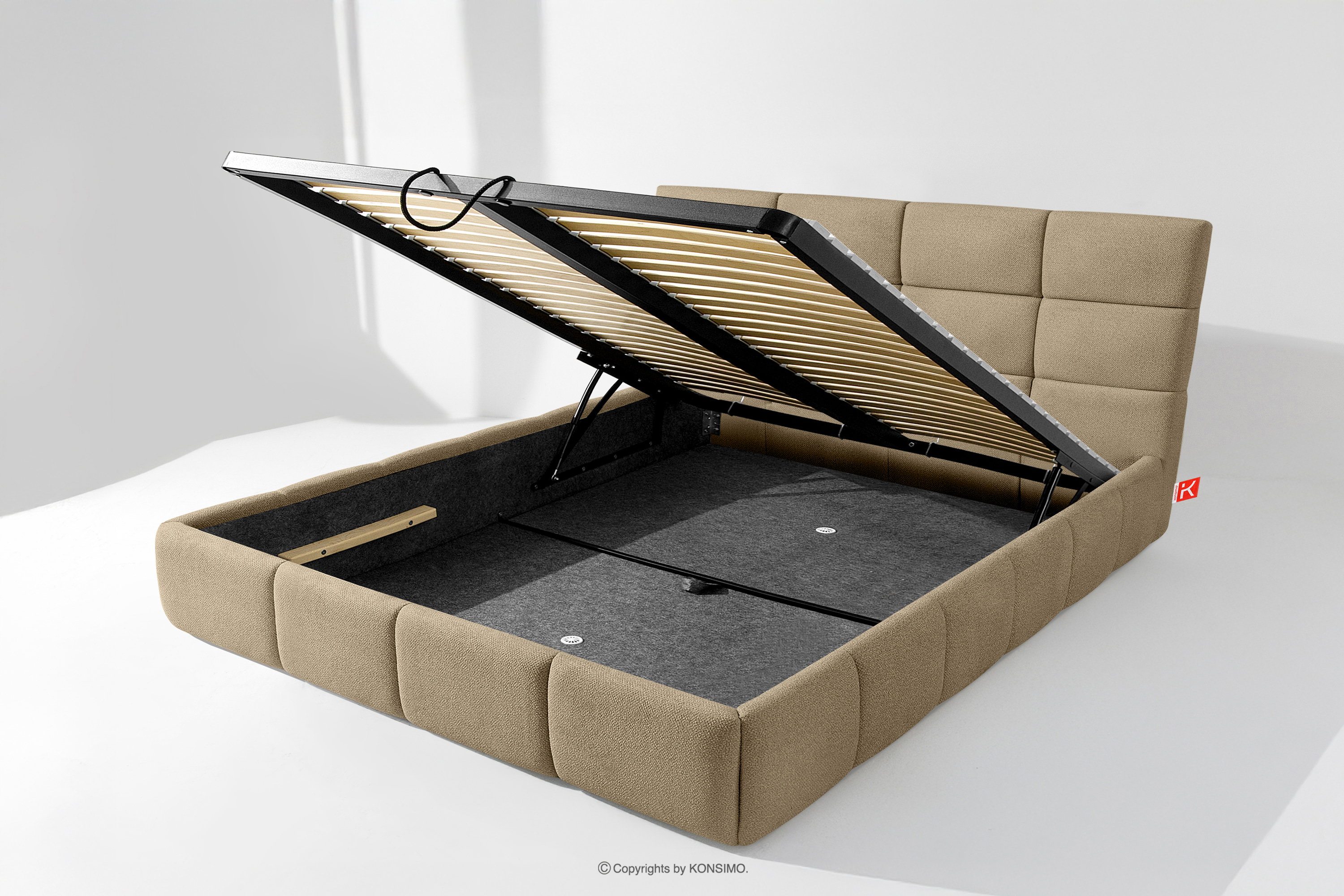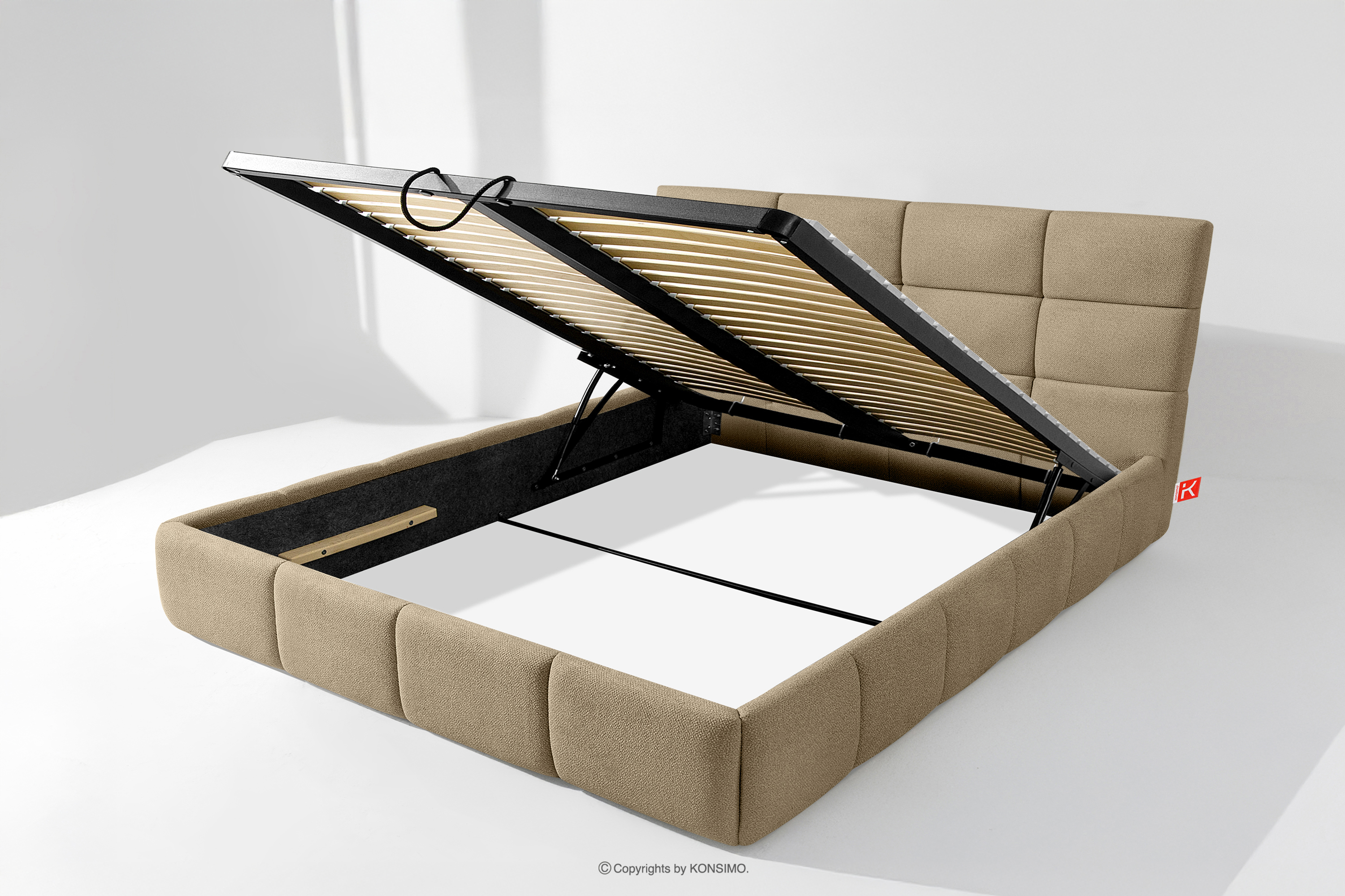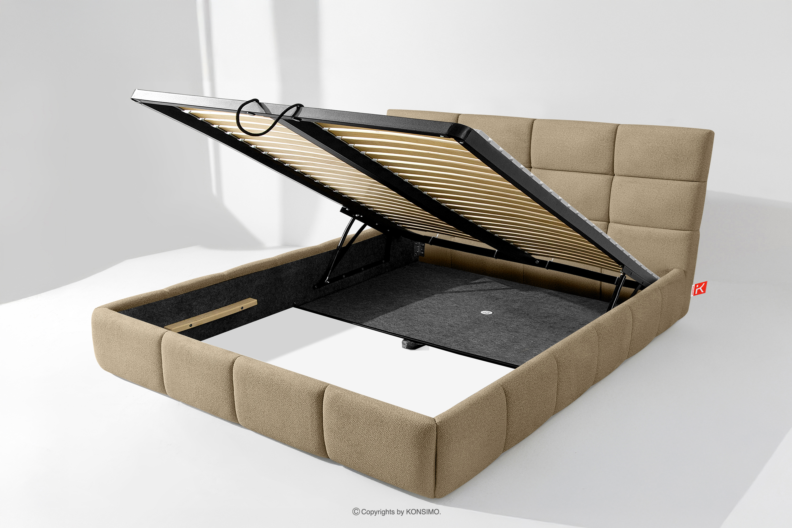 Darüber hinaus hat der Benutzer die Möglichkeit, den Härtegrad des Bettes individuell einzustellen - dank der herausnehmbaren Latten kann eine weichere oder festere Unterlage gewählt werden. Ein weiterer Komfort ist der bequeme Bettzeugbehälter, der sich dank moderner Gasflaschen mühelos und vollautomatisch öffnet. Diese praktische Lösung ermöglicht einen schnellen Zugriff auf das gelagerte Bettzeug, ohne die schwere Matratze manuell anheben zu müssen.