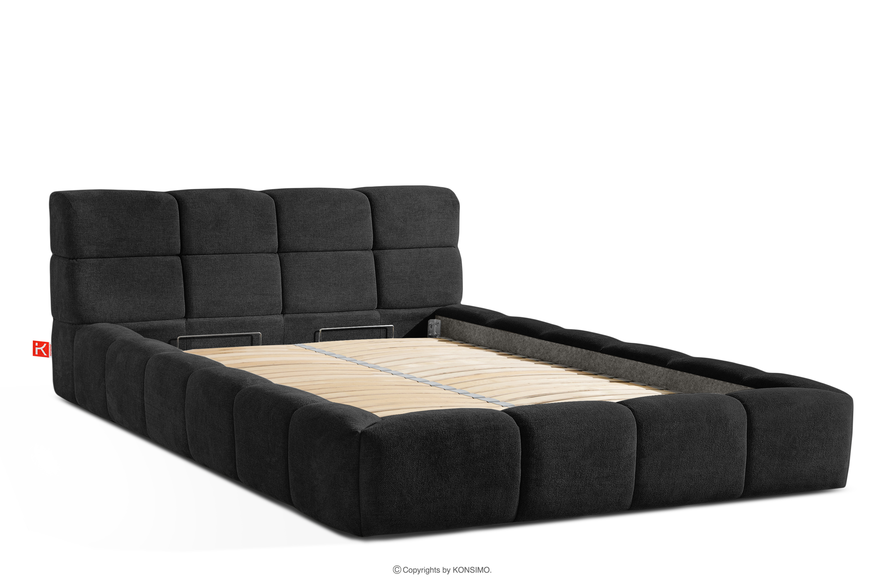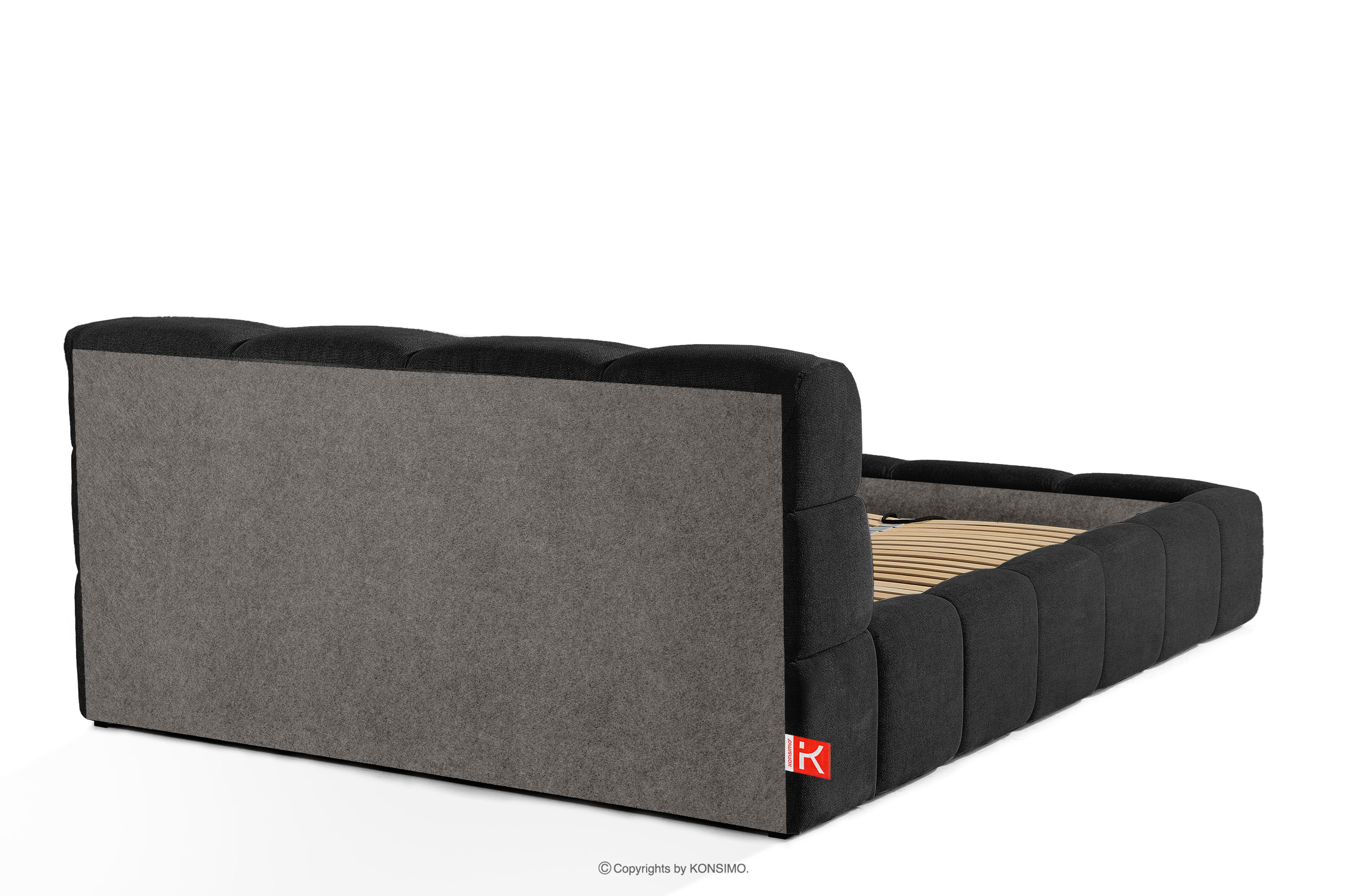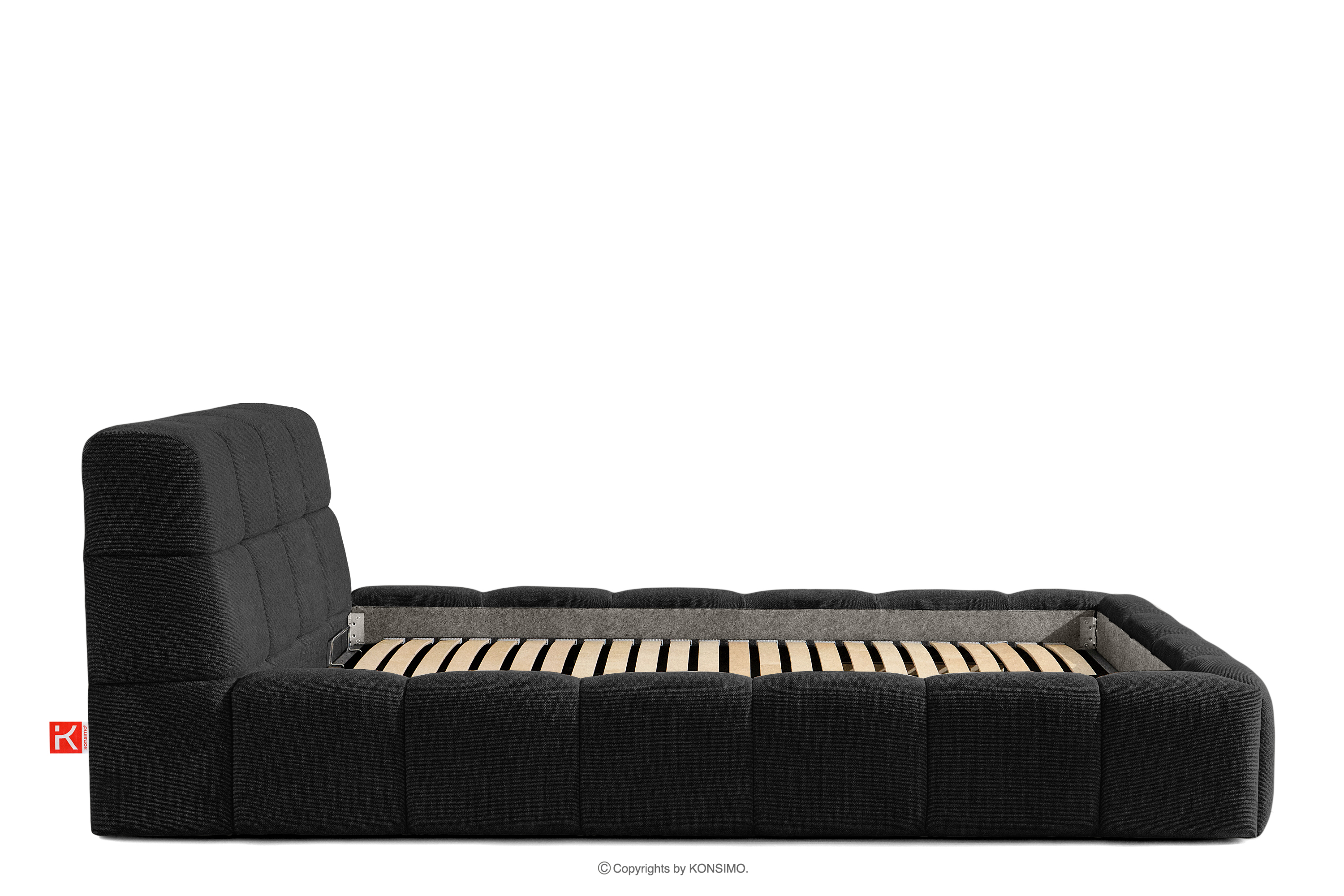 Das Bett 140 mit Kopfteil in Anthrazit ist eine harmonische Kombination aus der Schlichtheit des skandinavischen Stils und außergewöhnlichem Nutzungskomfort. Seine einzigartige Form, die von der Form einer Wolke inspiriert ist, zieht mit ihrem originellen Design die Aufmerksamkeit auf sich und bietet gleichzeitig Komfort auf höchstem Niveau. Die Konstruktion basiert auf einem flexiblen Rahmen aus Holzlatten, dessen zusätzlicher Vorteil die Möglichkeit ist, die Härte des Bettes einzustellen - dank der herausnehmbaren Latten kann man den Grad der Weichheit den individuellen Vorlieben anpassen.