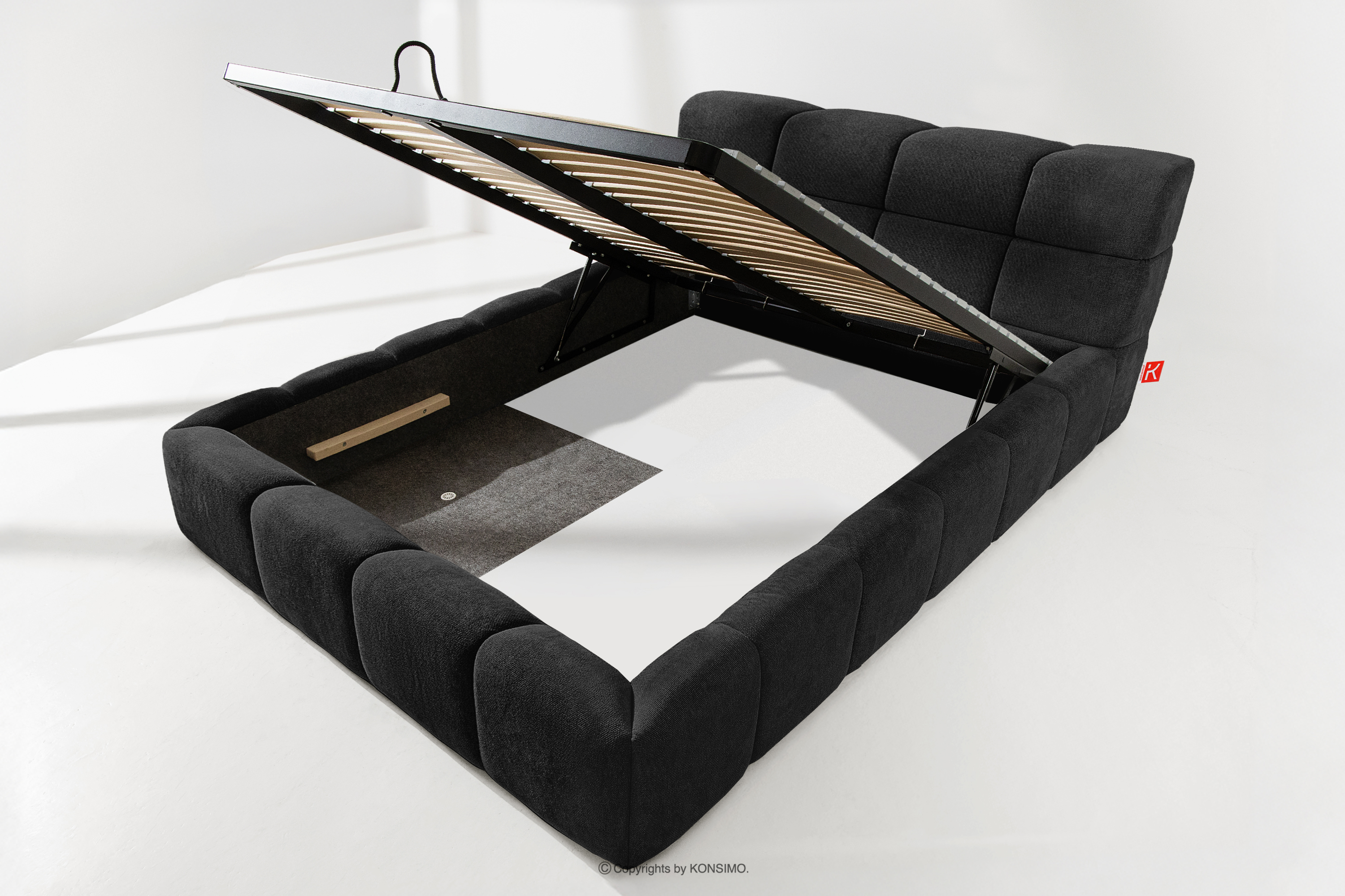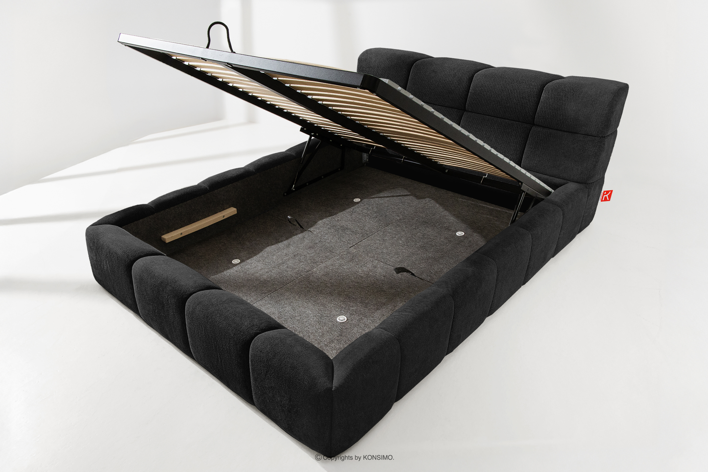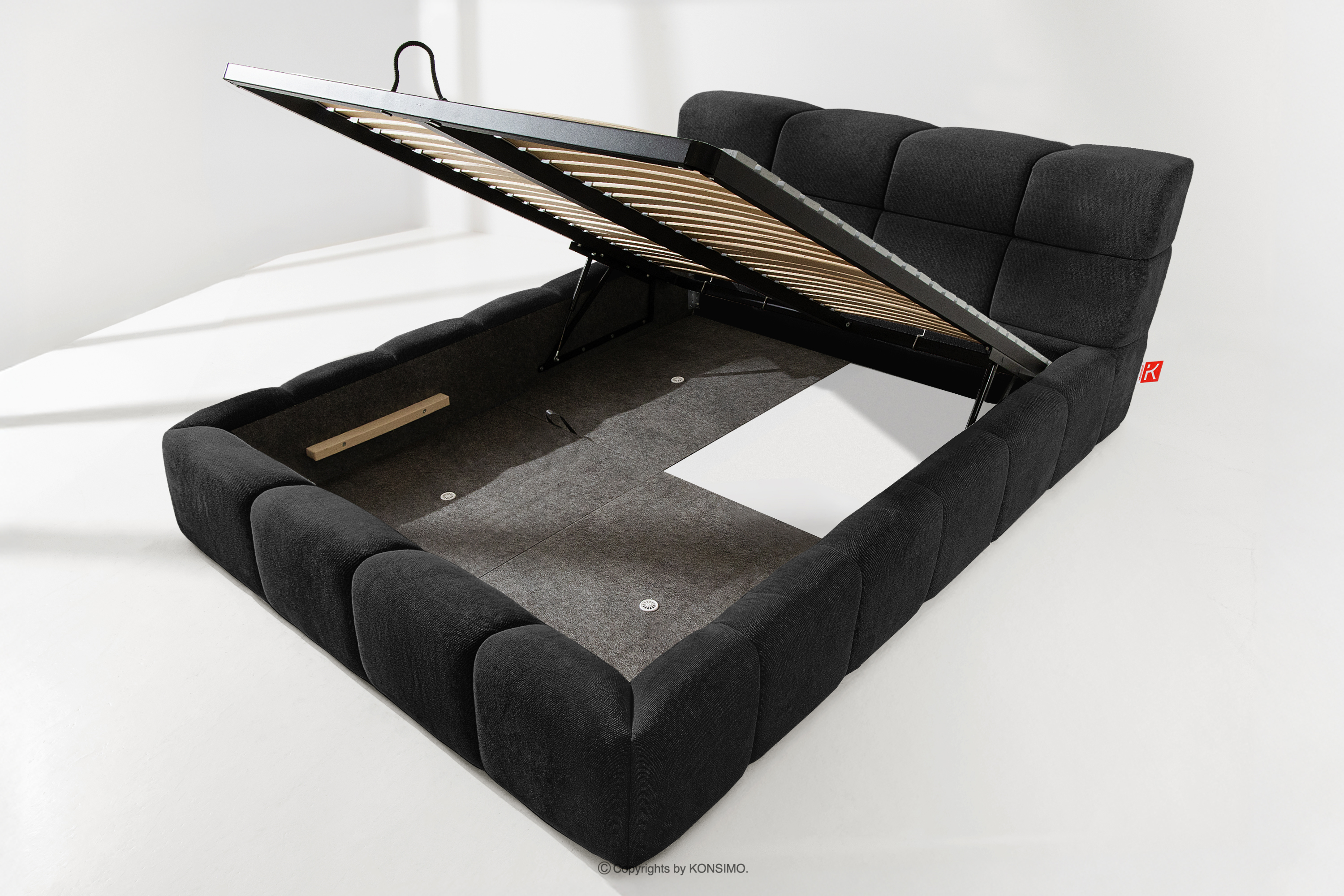 Der praktische Bettkasten, der durch Gasflaschen geöffnet wird, ist eine moderne Lösung, die den Zugriff auf die gelagerten Gegenstände ohne großen Aufwand ermöglicht. Dank der Funktionalität dieses Mechanismus lässt sich der Behälter sanft und leicht öffnen, was den Nutzungskomfort weiter erhöht.