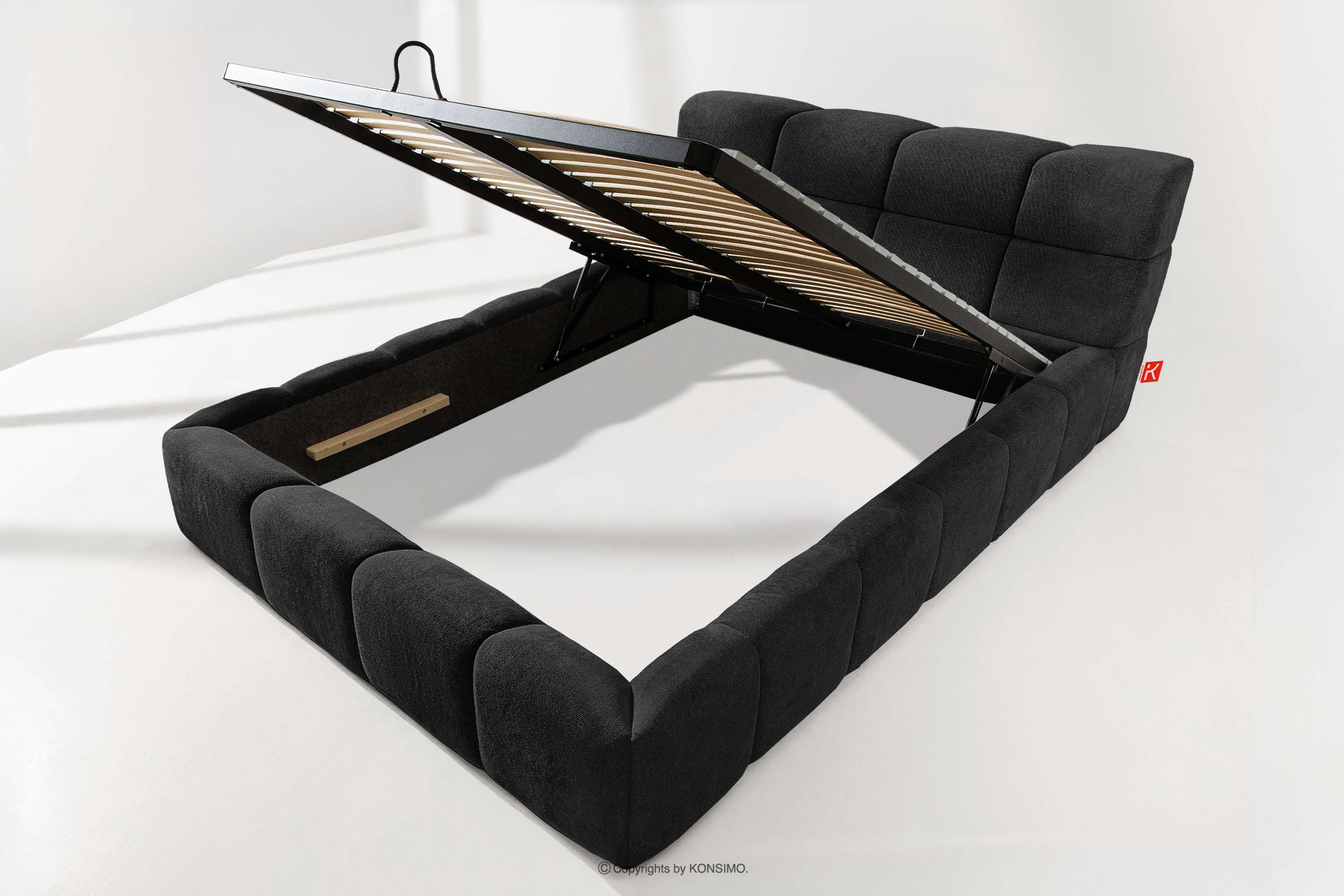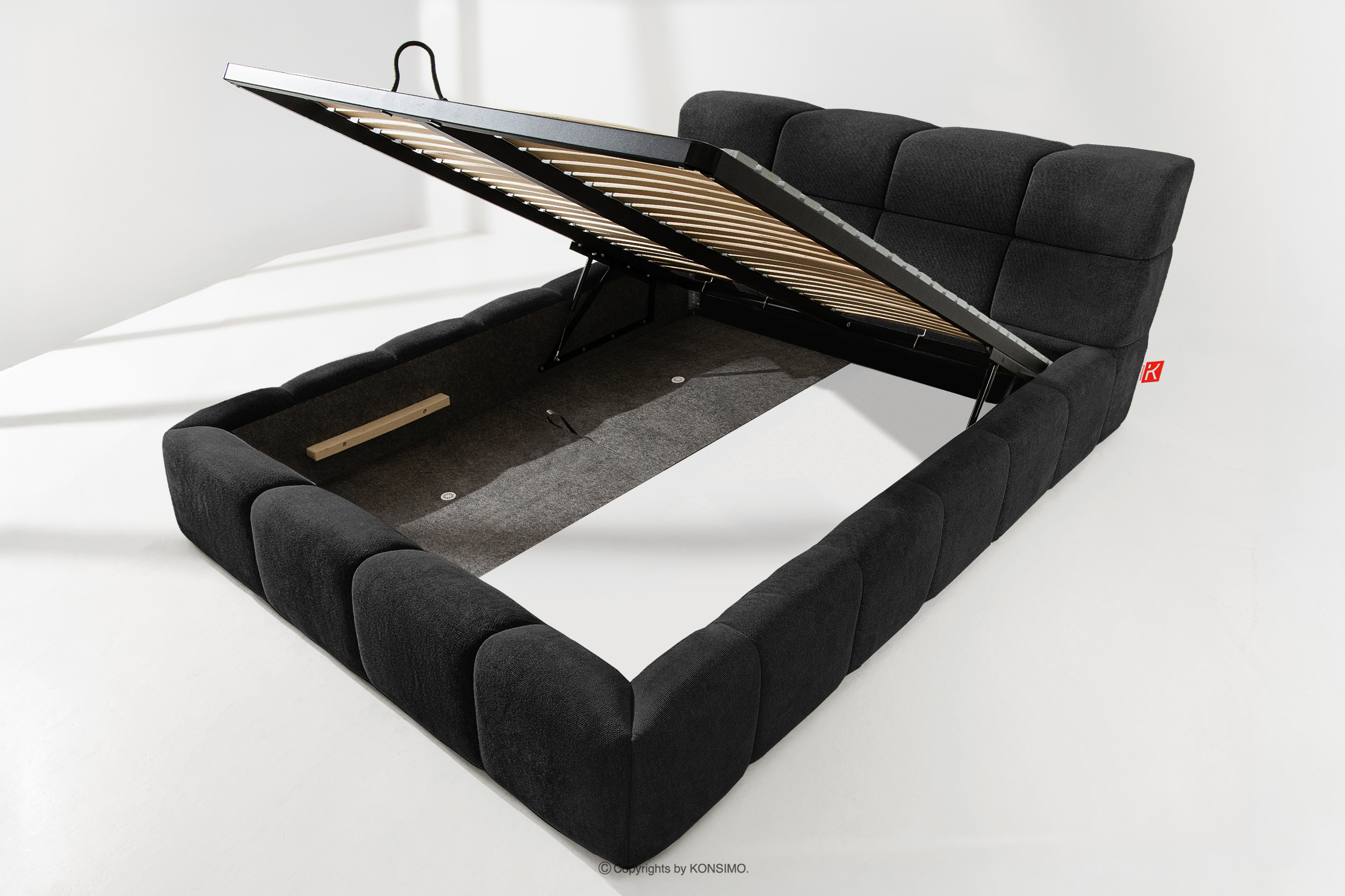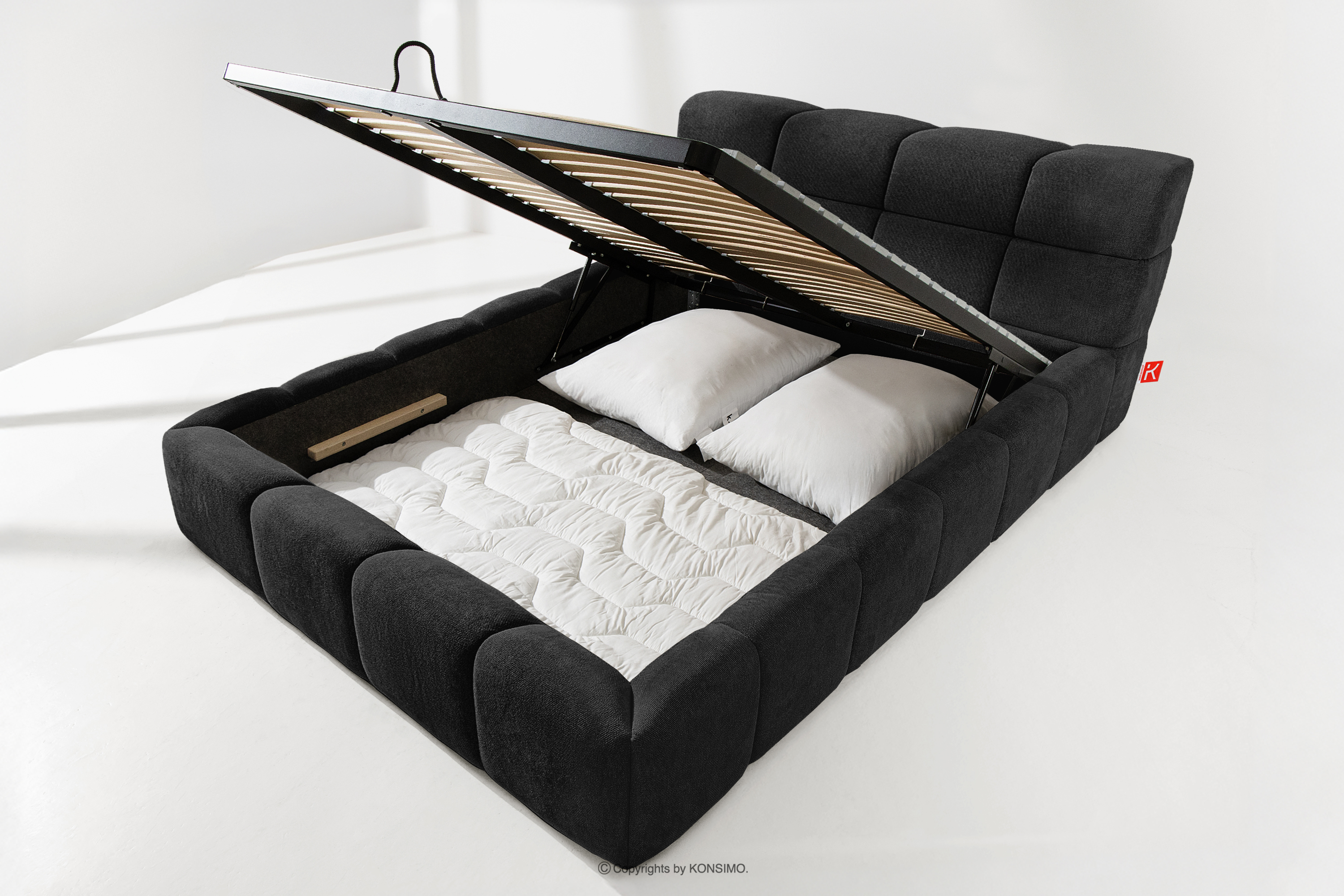 Der praktische Bettkasten, der durch Gasflaschen geöffnet wird, ist eine moderne Lösung, die den Zugriff auf die gelagerten Gegenstände ohne großen Aufwand ermöglicht. Dank der Funktionalität dieses Mechanismus lässt sich der Behälter sanft und leicht öffnen, was den Nutzungskomfort weiter erhöht.
