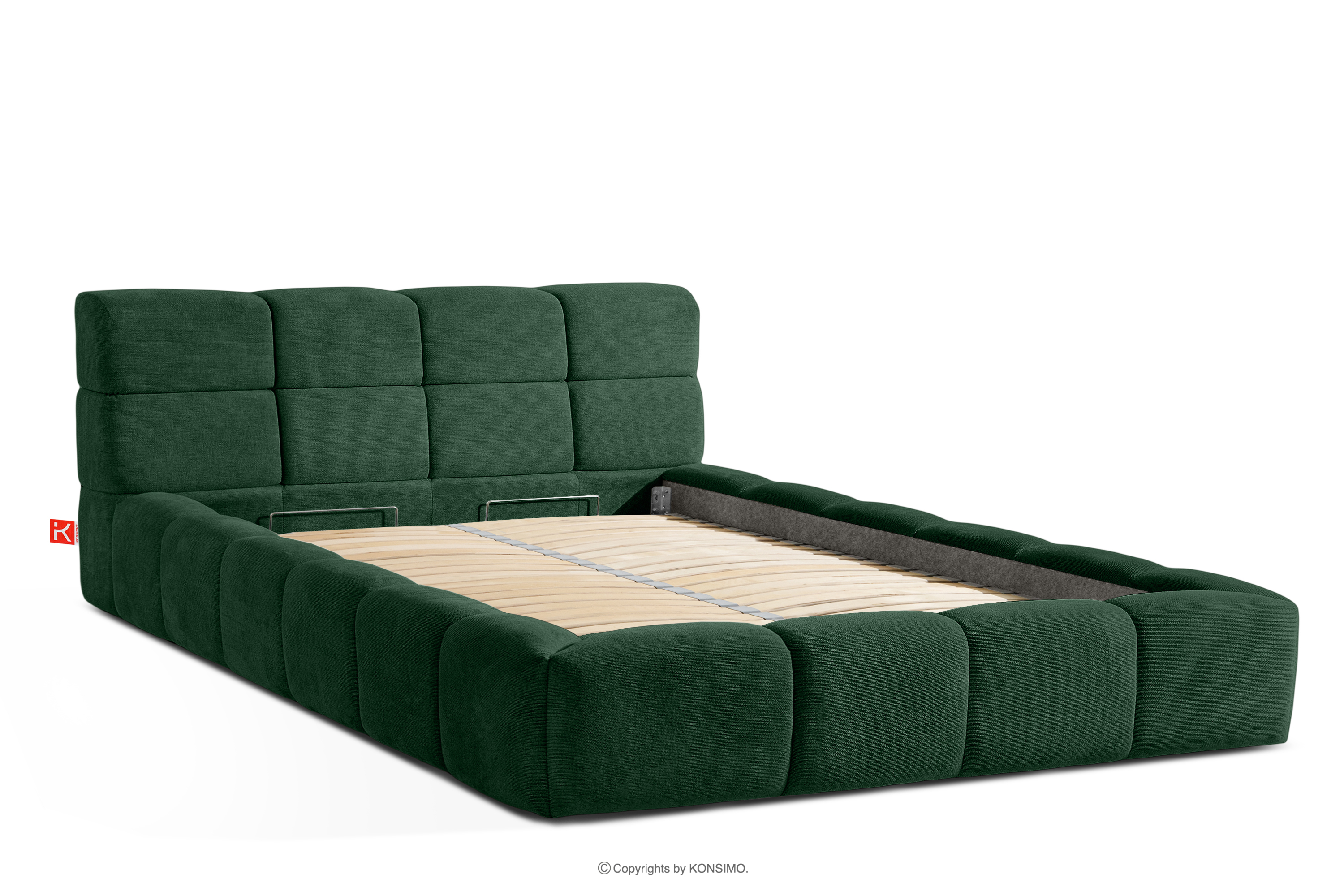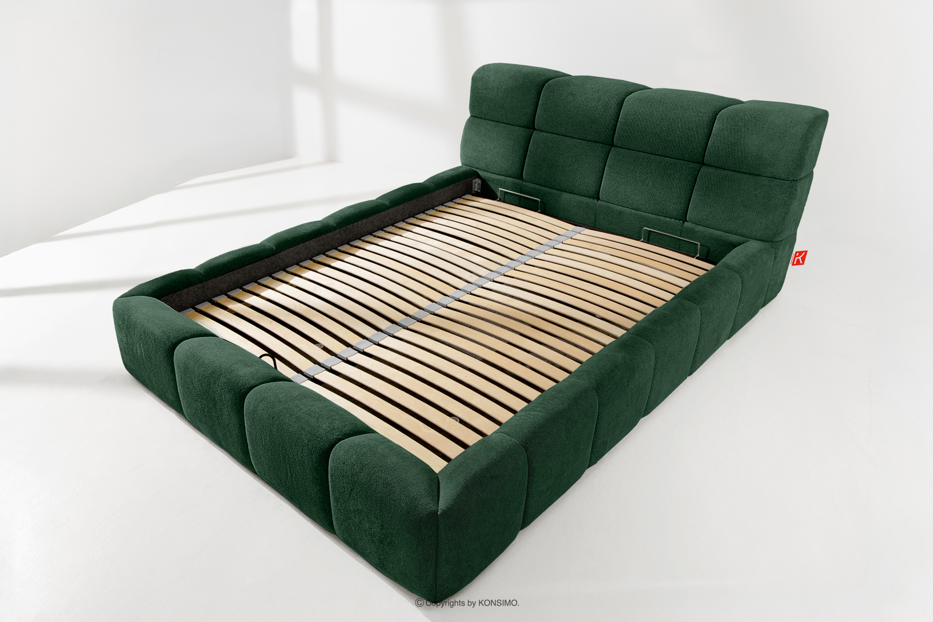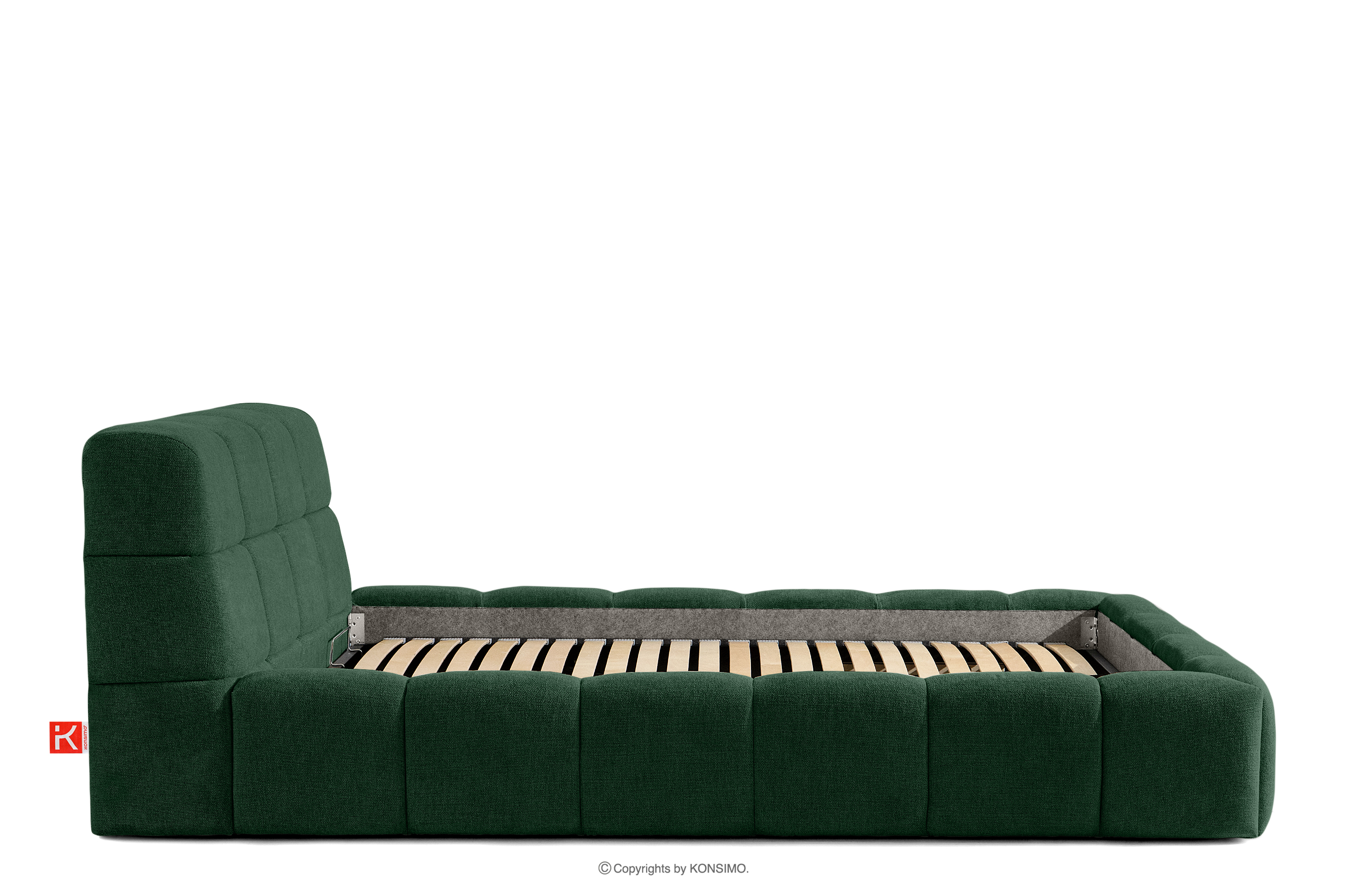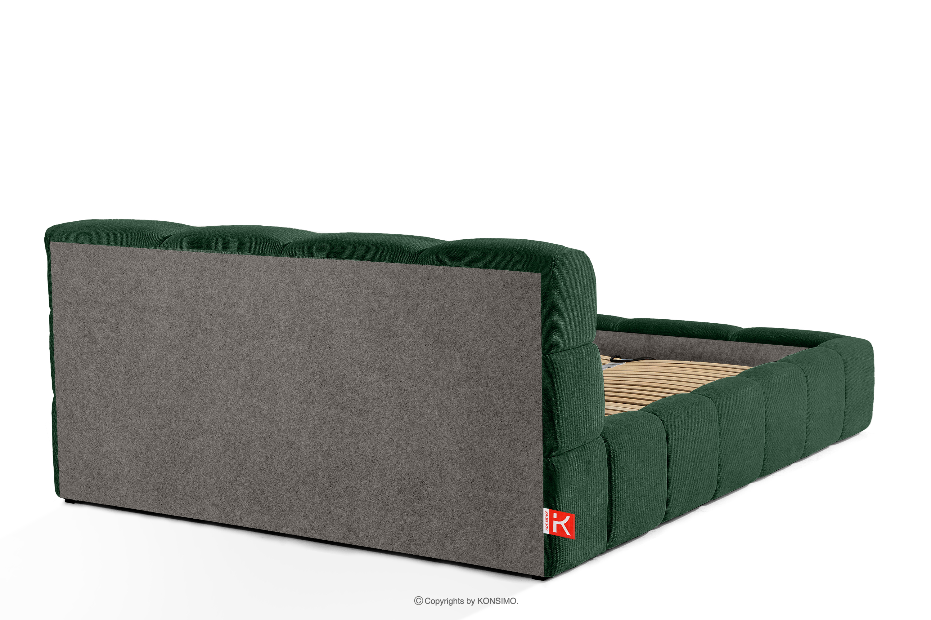 Das Bett 140 mit Kopfteil dunkelgrün ist eine harmonische Kombination aus der Schlichtheit des skandinavischen Stils und außergewöhnlichem Nutzungskomfort. Seine einzigartige Form, die von der Form einer Wolke inspiriert ist, zieht mit ihrem originellen Design die Aufmerksamkeit auf sich und bietet gleichzeitig Komfort auf höchstem Niveau. Die Konstruktion basiert auf einem flexiblen Rahmen aus Holzlatten, dessen zusätzlicher Vorteil die Möglichkeit ist, die Härte des Bettes einzustellen - dank der herausnehmbaren Latten kann man den Grad der Weichheit den individuellen Vorlieben anpassen.