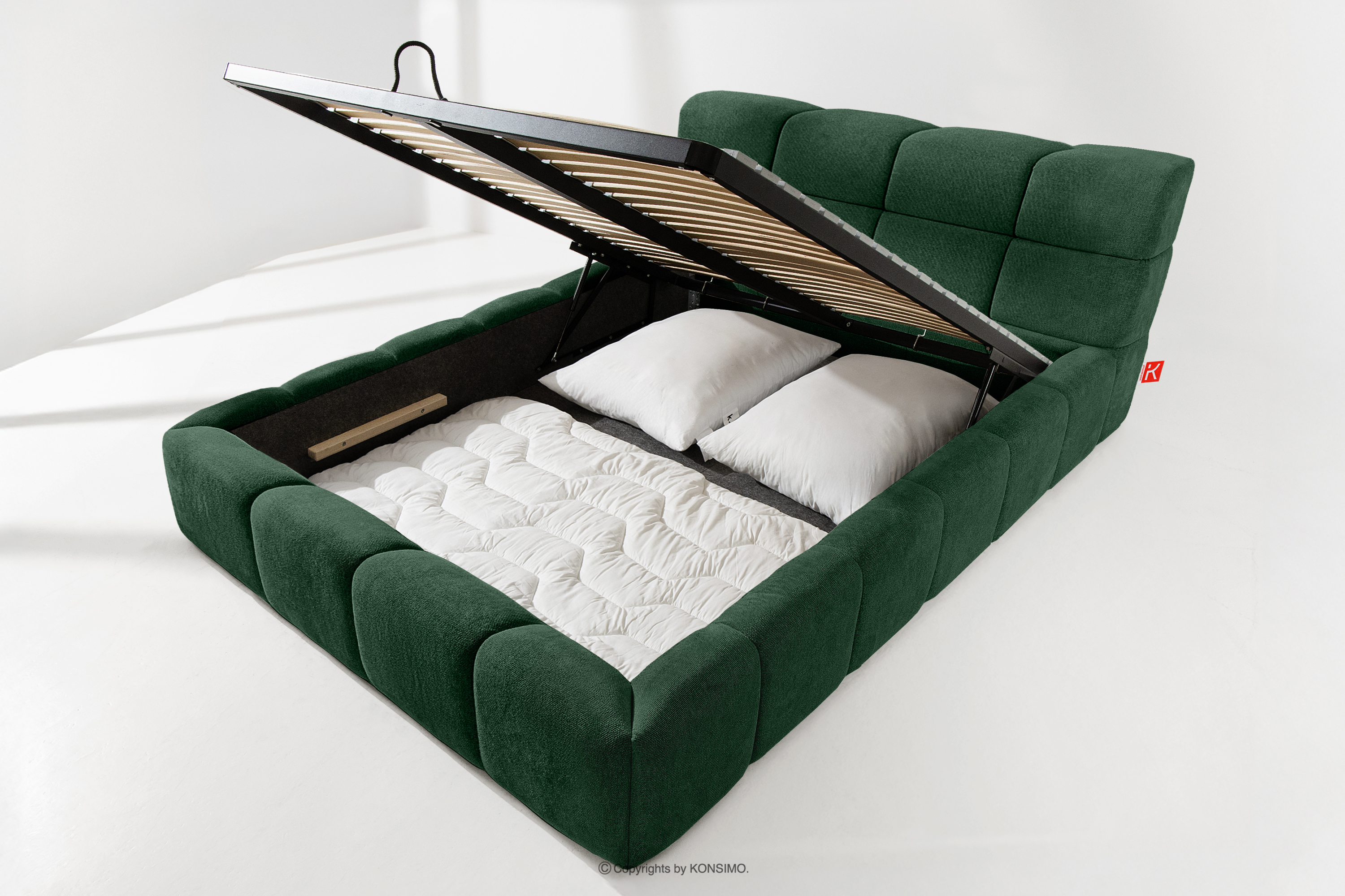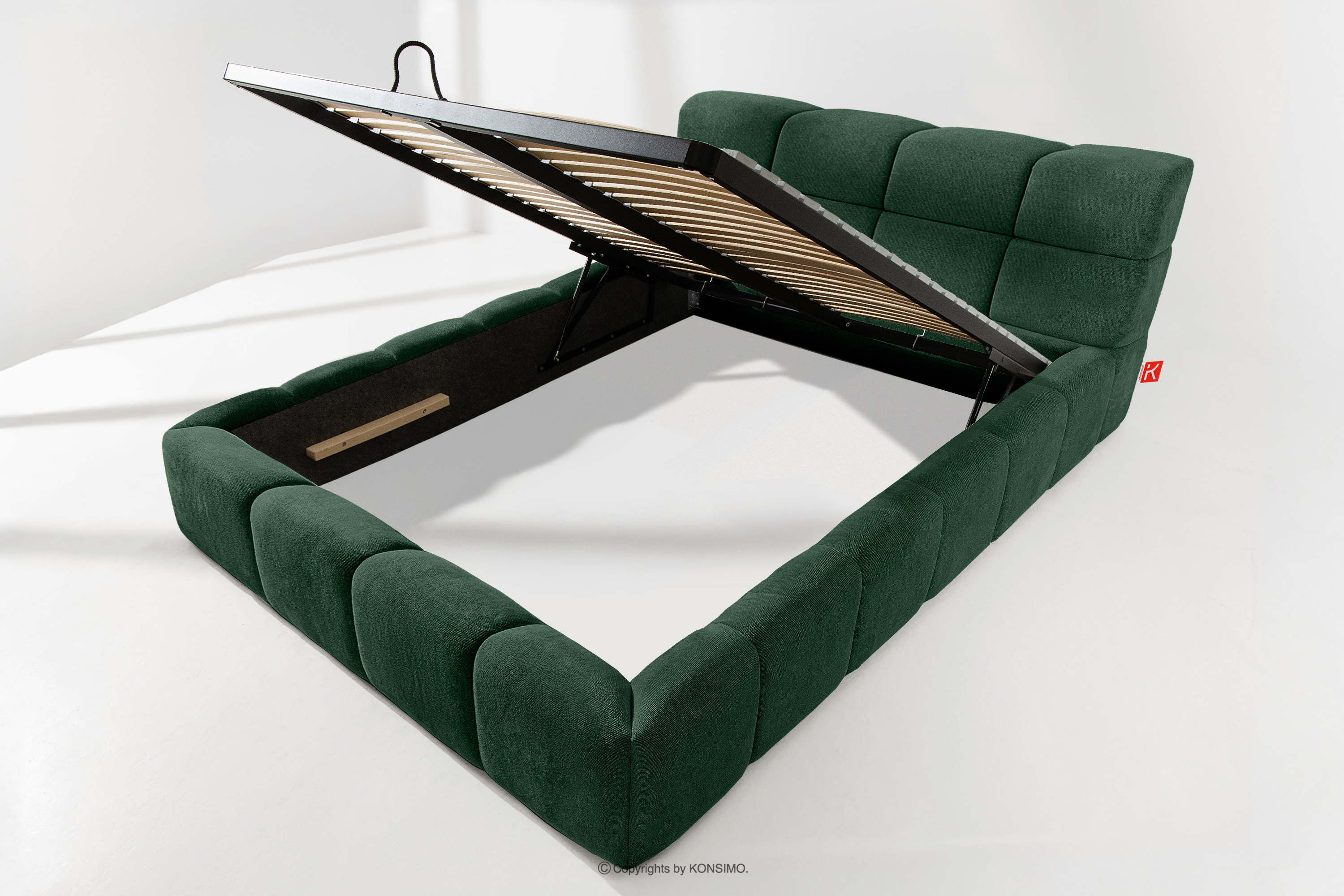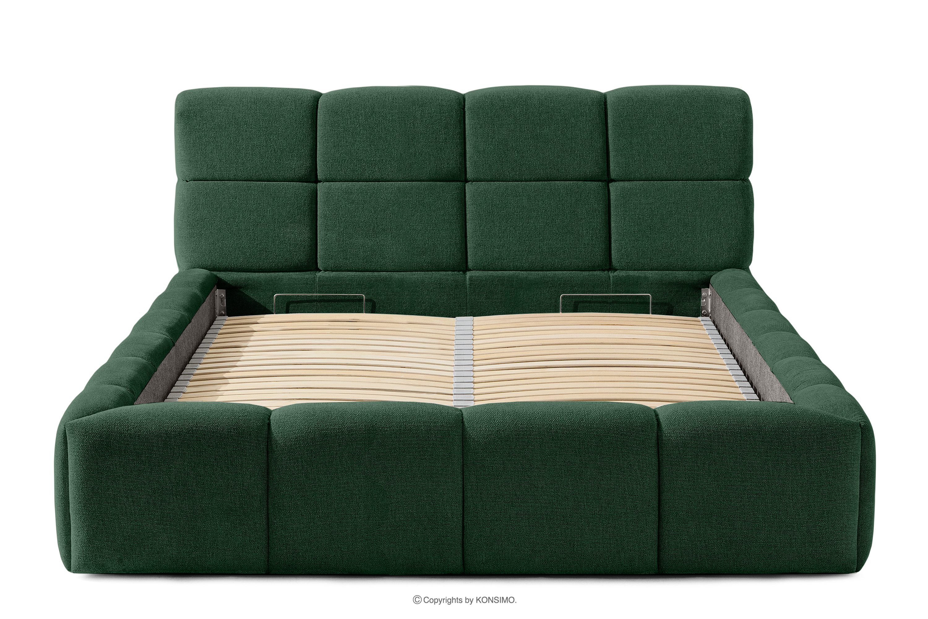 Das Bett 140 mit Kopfteil dunkelgrün ist eine harmonische Kombination aus der Schlichtheit des skandinavischen Stils und außergewöhnlichem Nutzungskomfort. Seine einzigartige Form, die von der Form einer Wolke inspiriert ist, zieht mit ihrem originellen Design die Aufmerksamkeit auf sich und bietet gleichzeitig Komfort auf höchstem Niveau. Die Konstruktion basiert auf einem flexiblen Rahmen aus Holzlatten, dessen zusätzlicher Vorteil die Möglichkeit ist, die Härte des Bettes einzustellen - dank der herausnehmbaren Latten kann man den Grad der Weichheit den individuellen Vorlieben anpassen.