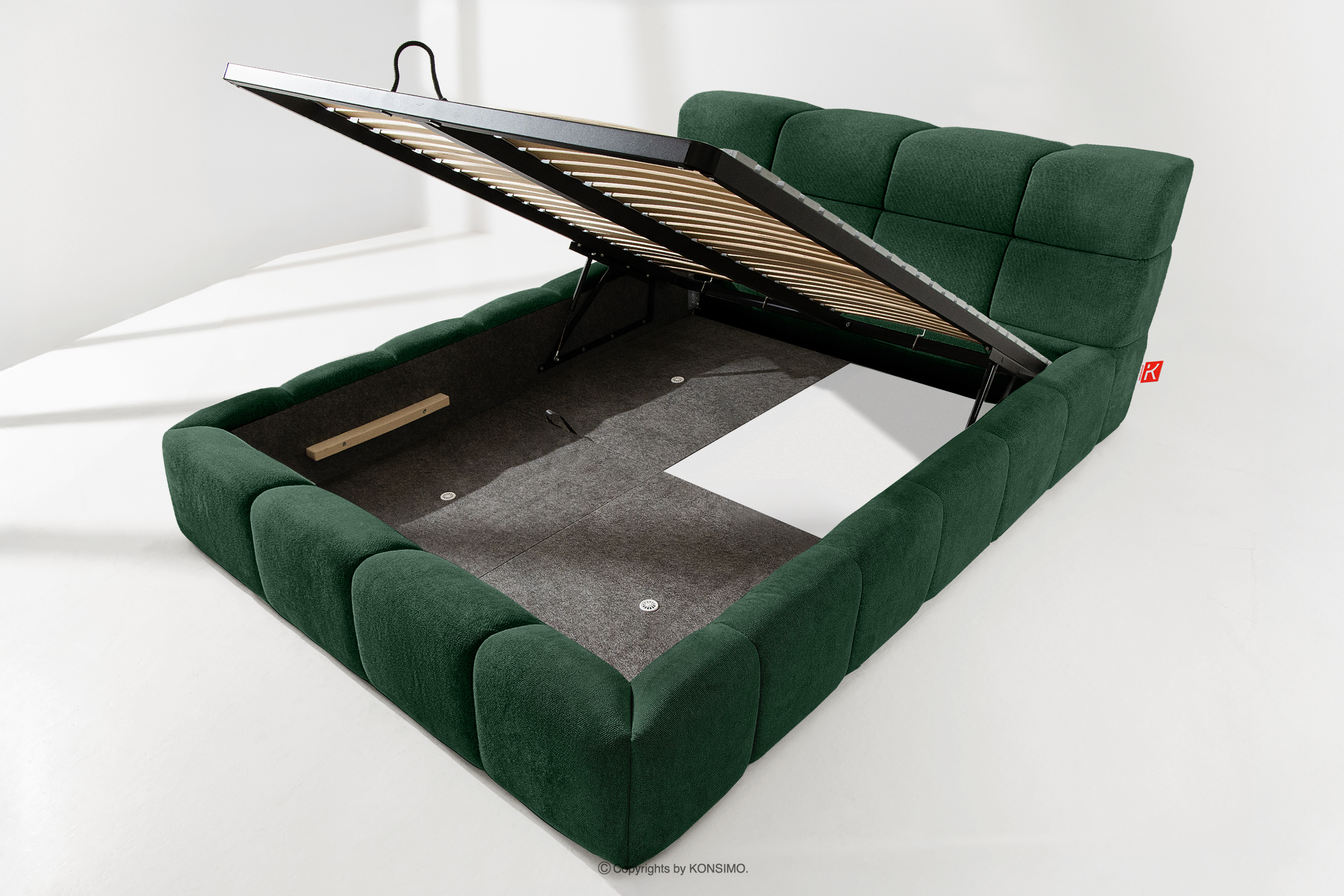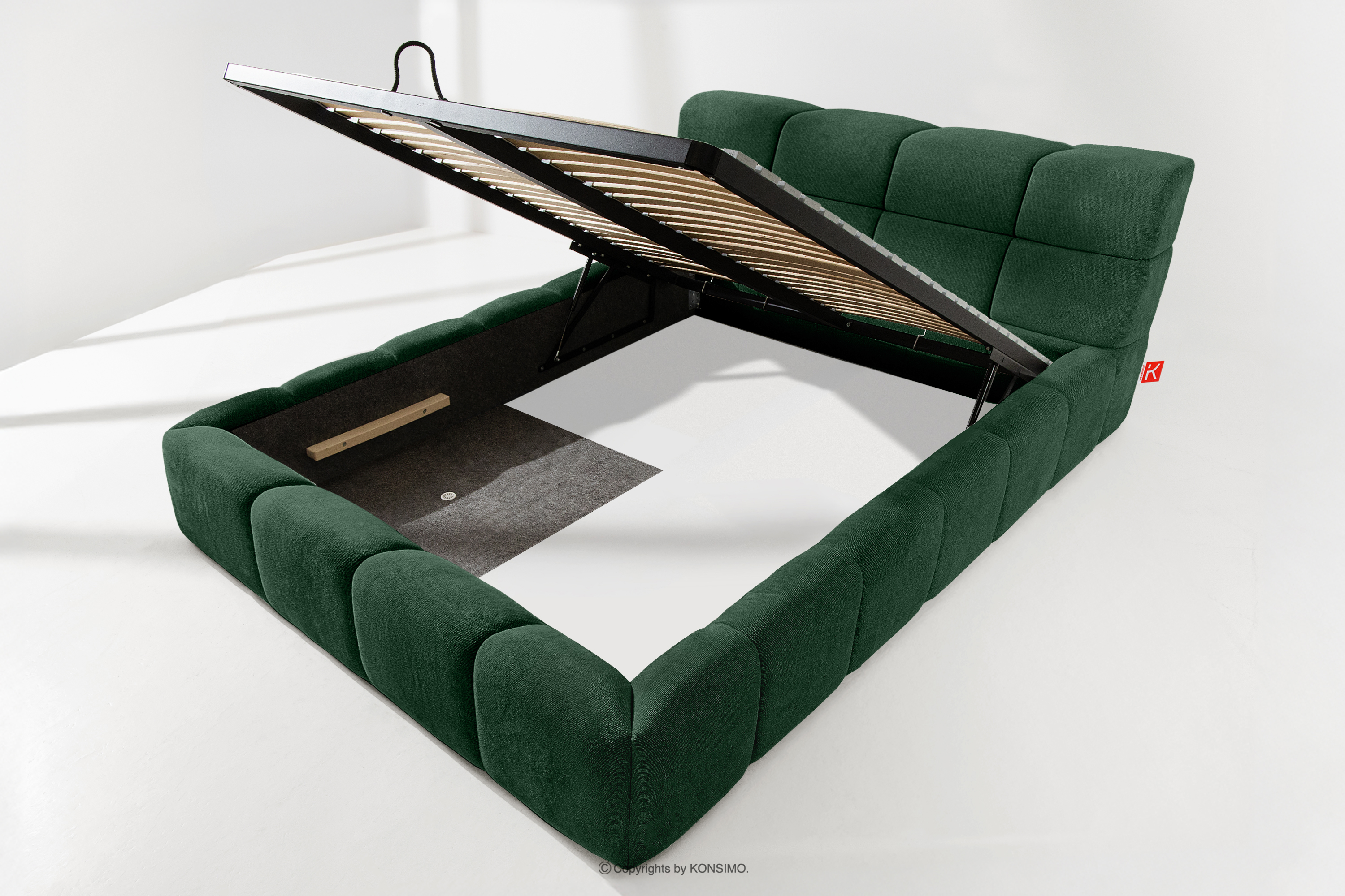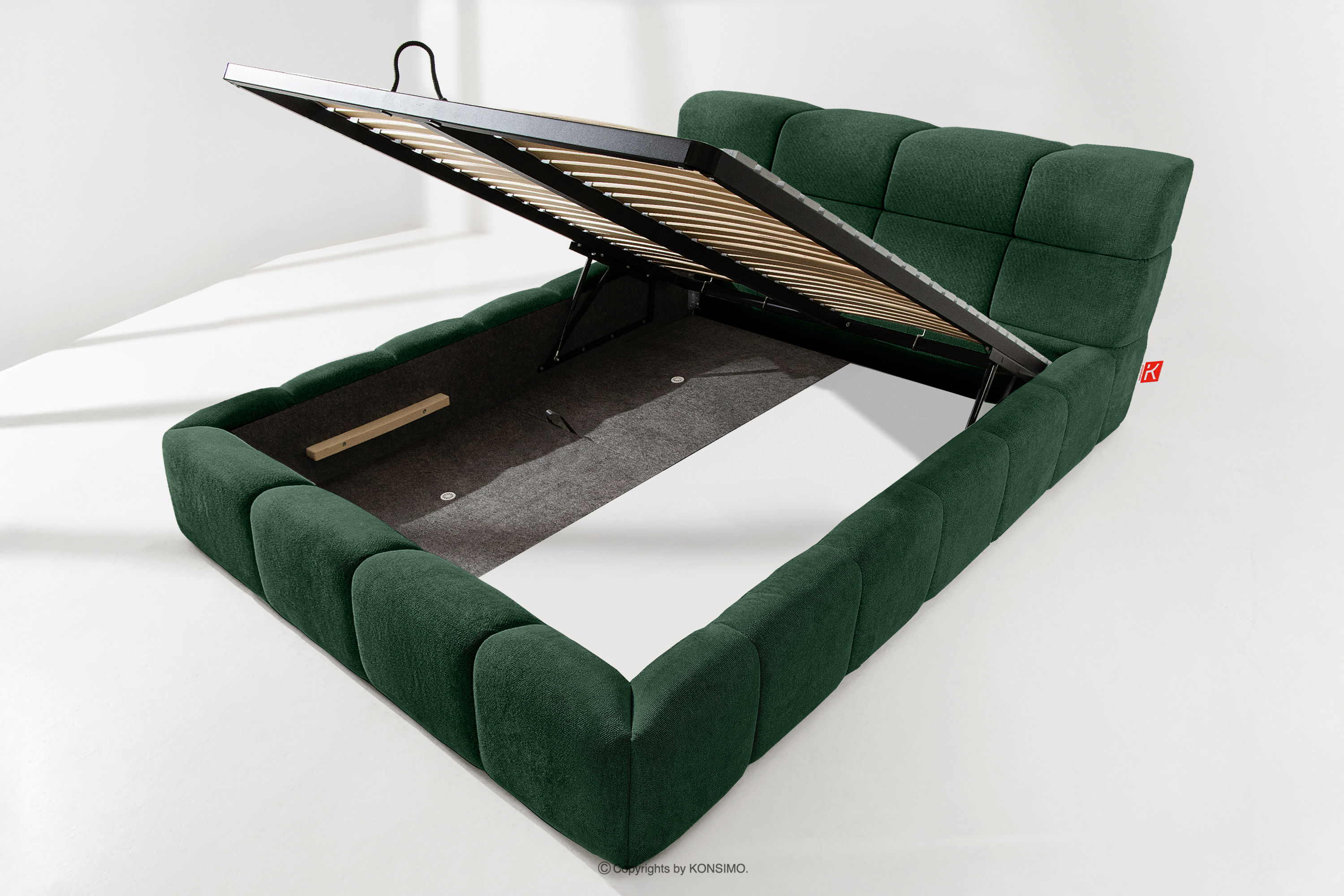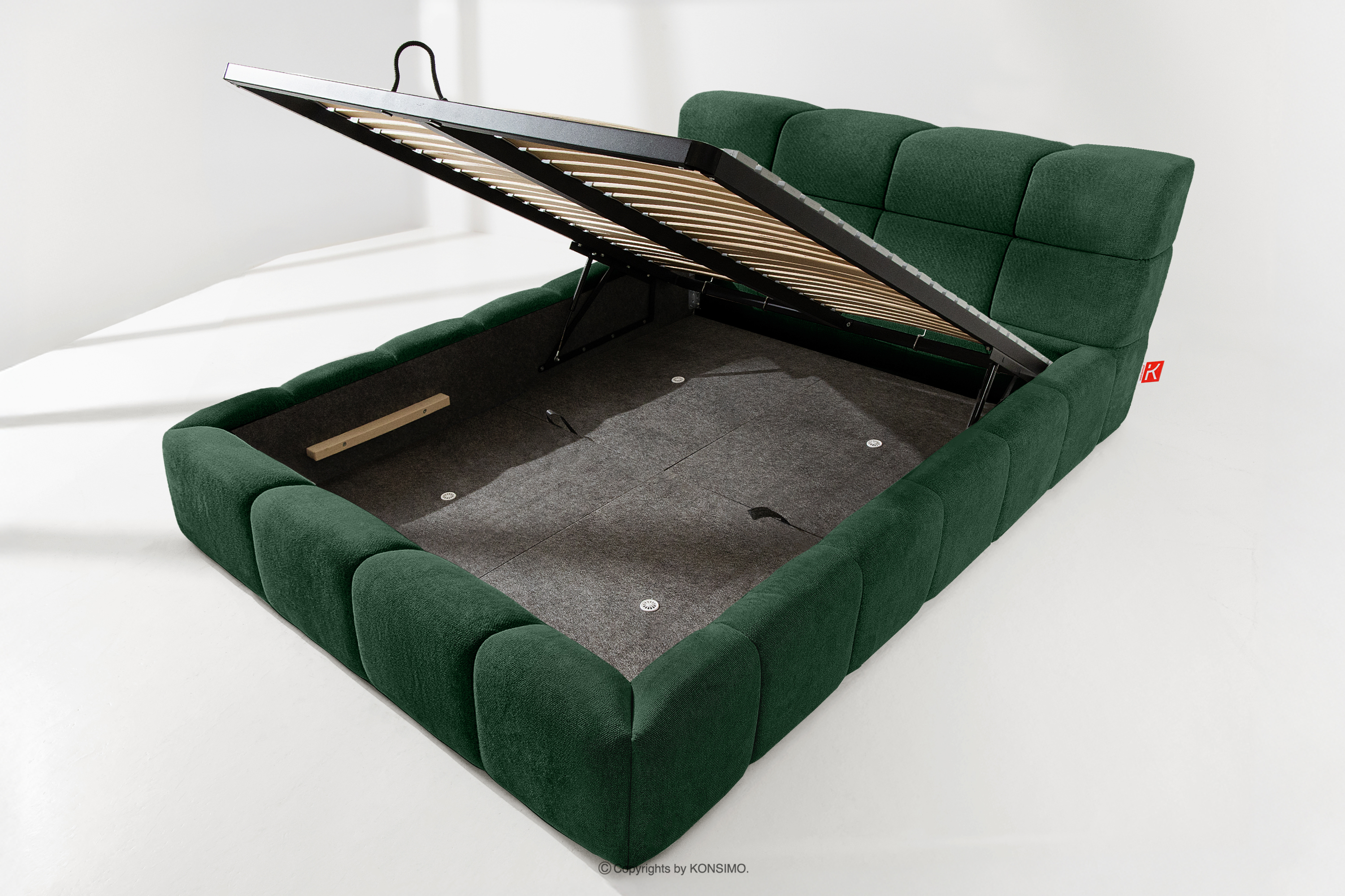 Das Bett 140 mit Kopfteil dunkelgrün ist eine harmonische Kombination aus der Schlichtheit des skandinavischen Stils und außergewöhnlichem Nutzungskomfort. Seine einzigartige Form, die von der Form einer Wolke inspiriert ist, zieht mit ihrem originellen Design die Aufmerksamkeit auf sich und bietet gleichzeitig Komfort auf höchstem Niveau. Die Konstruktion basiert auf einem flexiblen Rahmen aus Holzlatten, dessen zusätzlicher Vorteil die Möglichkeit ist, die Härte des Bettes einzustellen - dank der herausnehmbaren Latten kann man den Grad der Weichheit den individuellen Vorlieben anpassen.