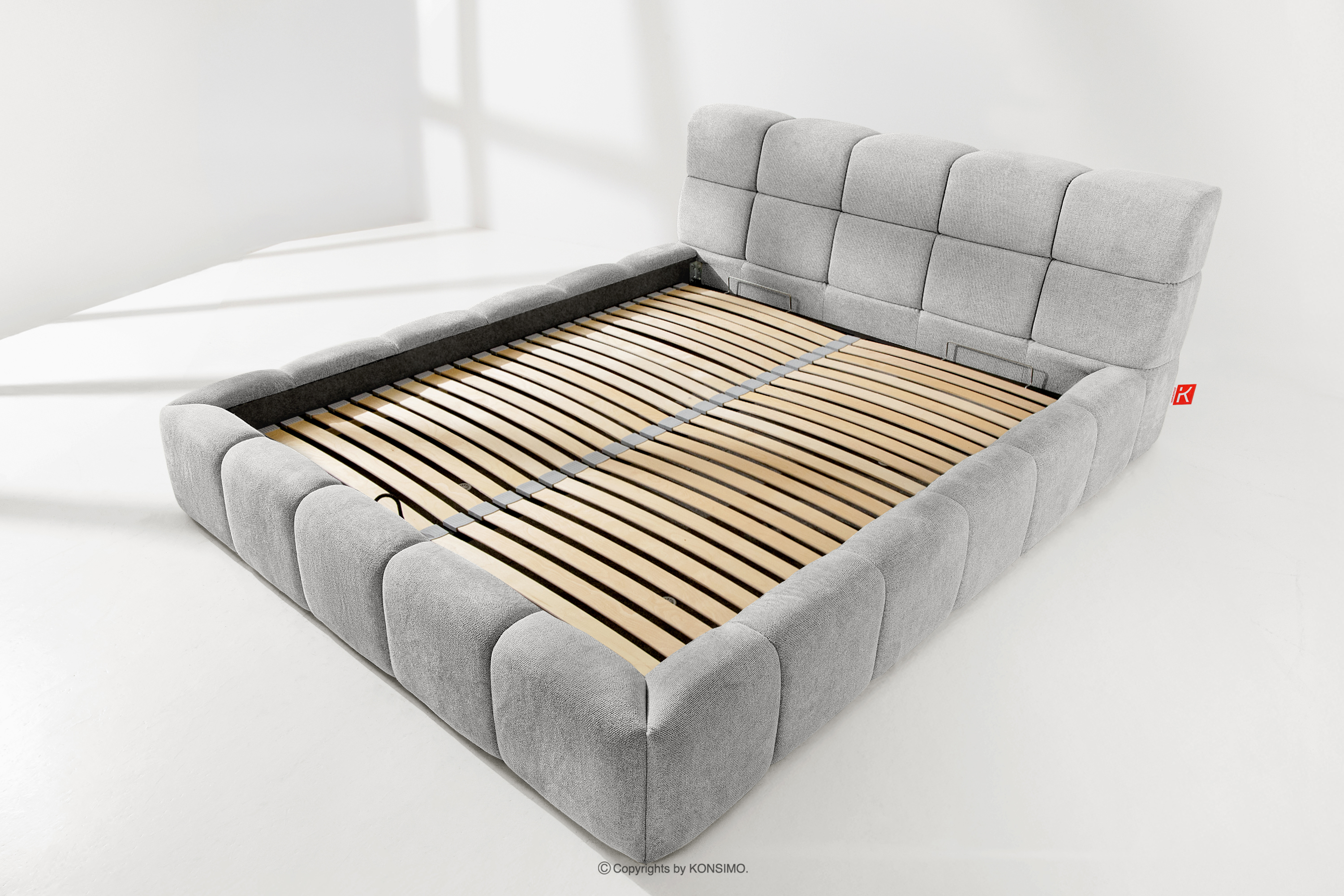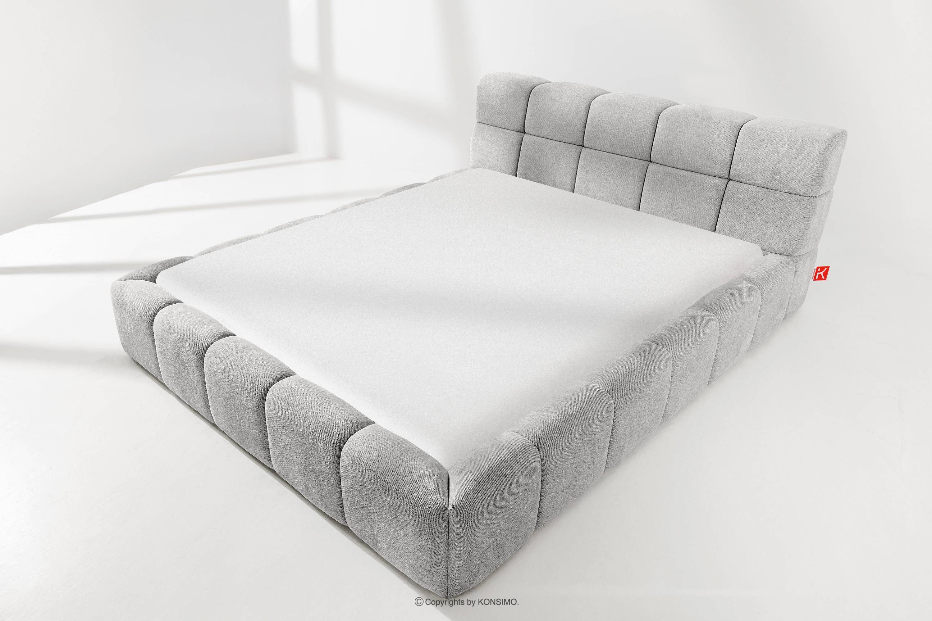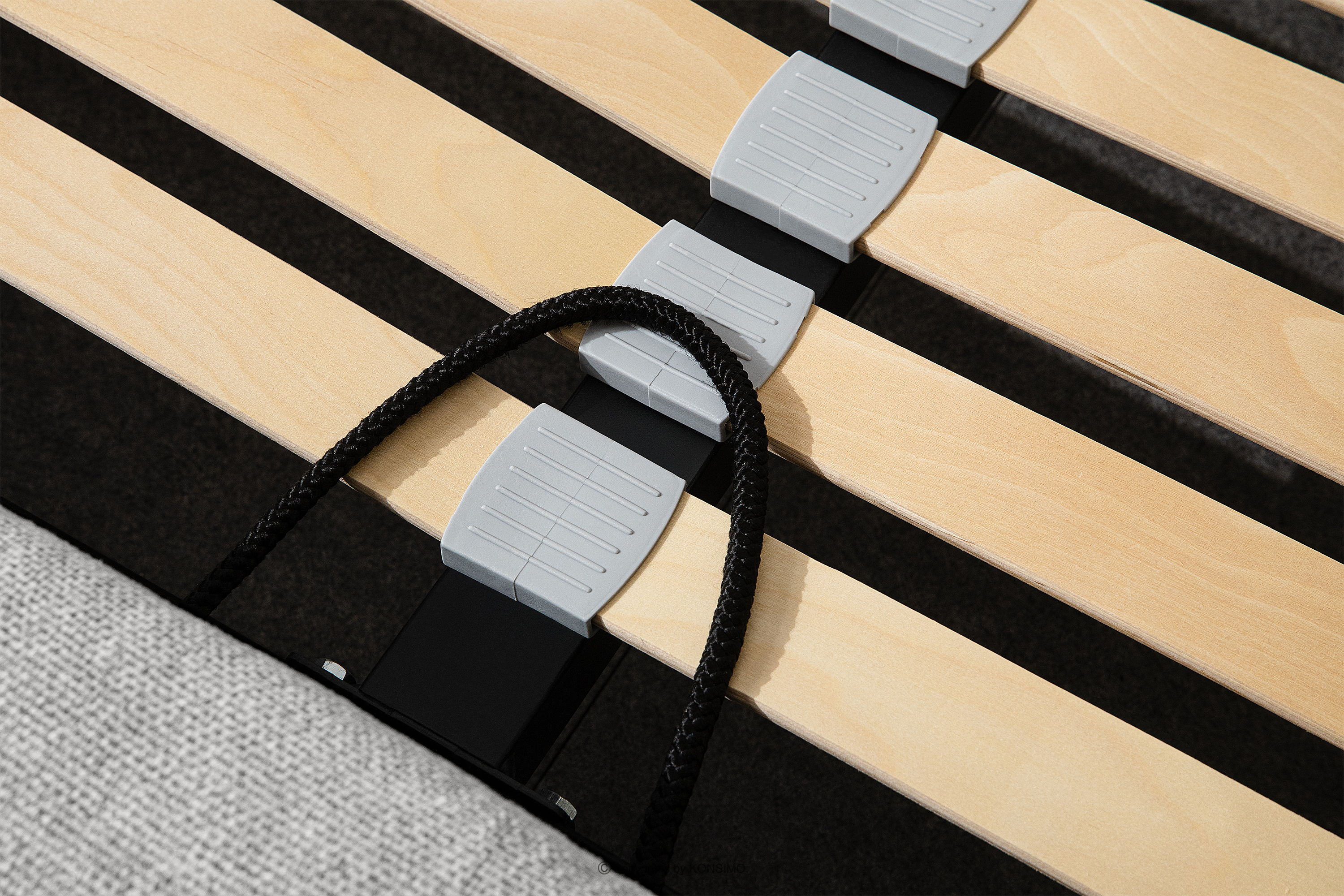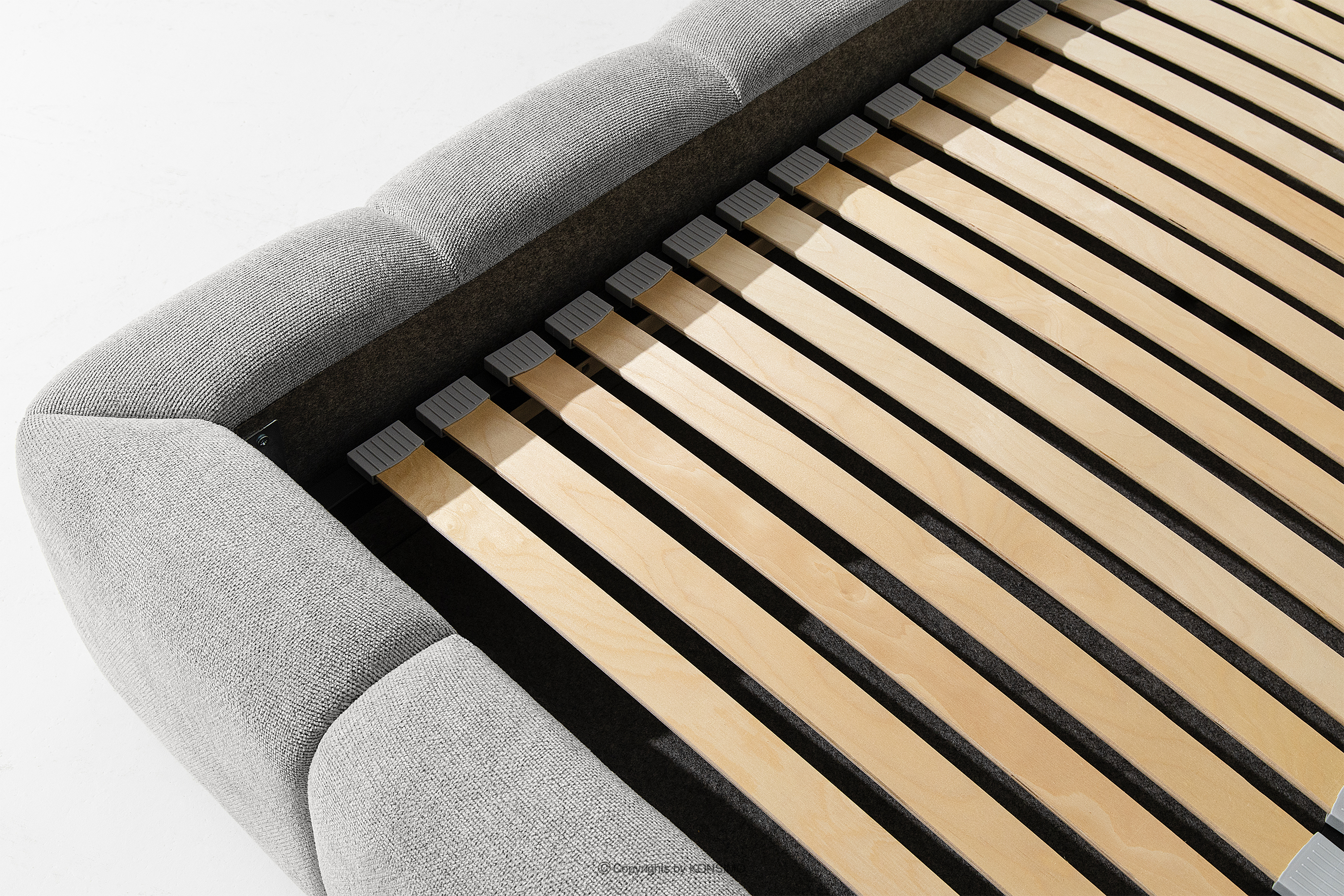 Das Bett 160 mit Kopfteil in Hellgrau ist eine harmonische Kombination aus der Schlichtheit des skandinavischen Stils und außergewöhnlichem Nutzungskomfort. Seine einzigartige Form, die von der Form einer Wolke inspiriert ist, zieht mit ihrem originellen Design die Aufmerksamkeit auf sich und bietet gleichzeitig Komfort auf höchstem Niveau. Die Konstruktion basiert auf einem flexiblen Rahmen aus Holzlatten, dessen zusätzlicher Vorteil die Möglichkeit ist, die Härte des Bettes einzustellen - dank der herausnehmbaren Latten kann man den Grad der Weichheit den individuellen Vorlieben anpassen.