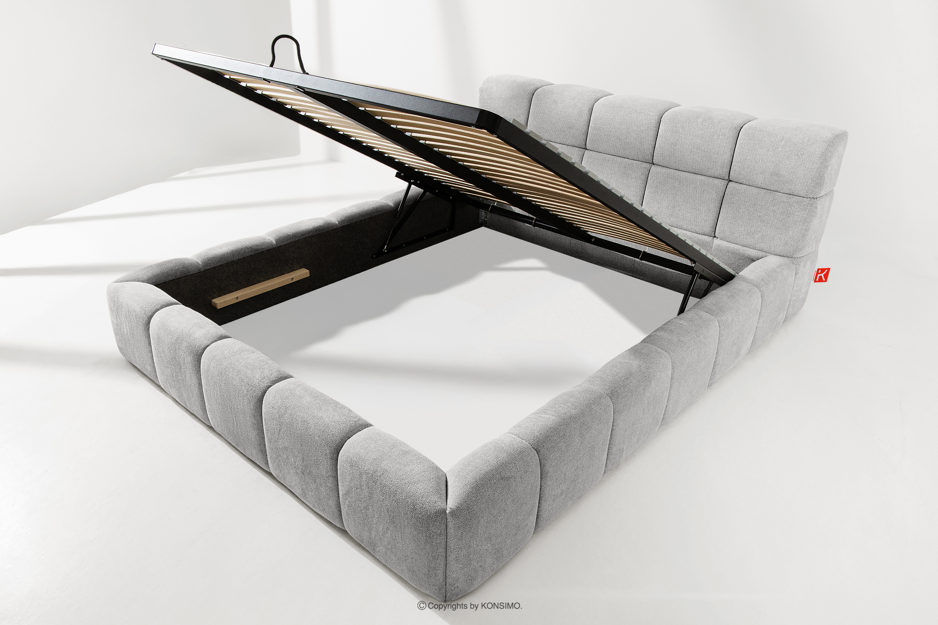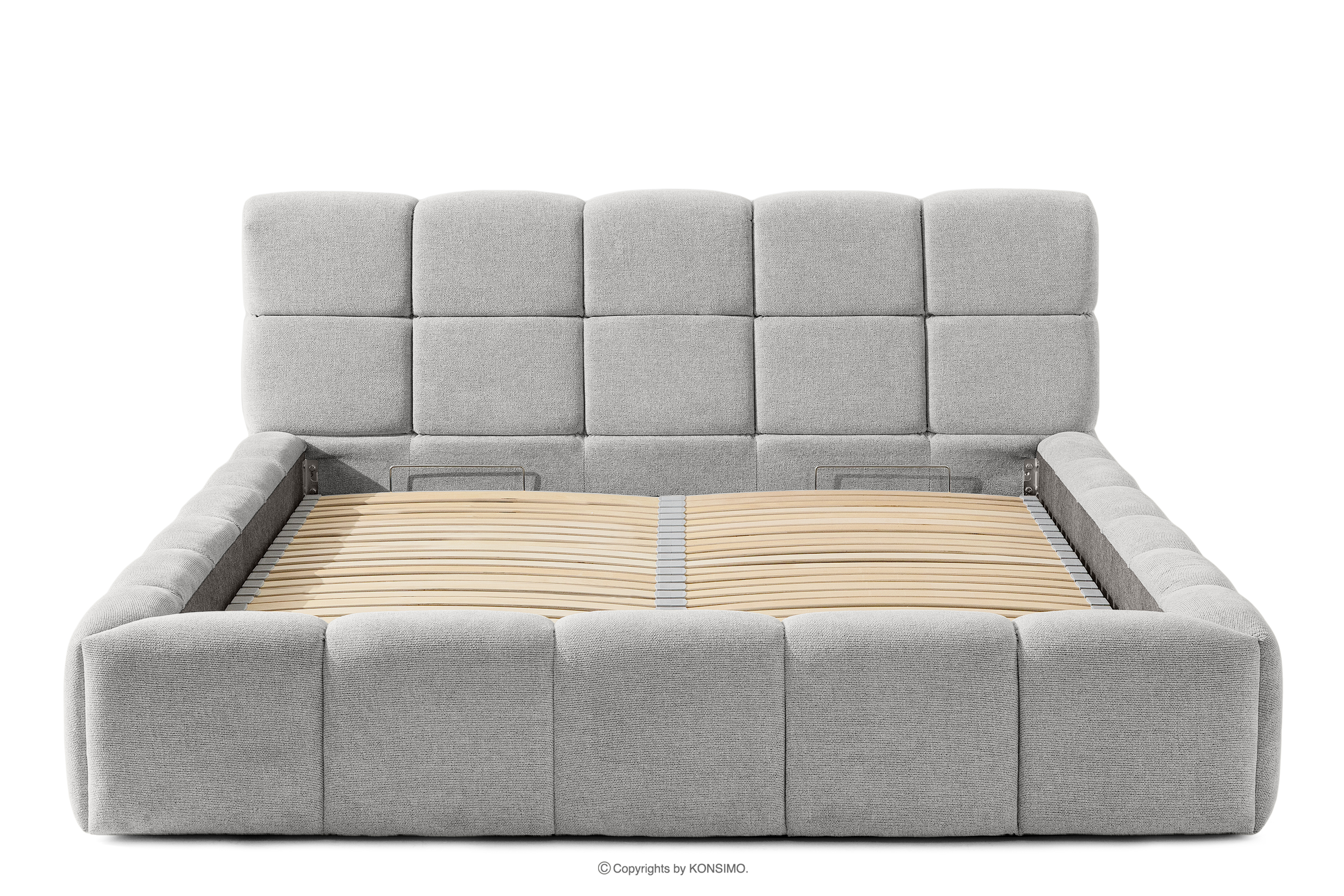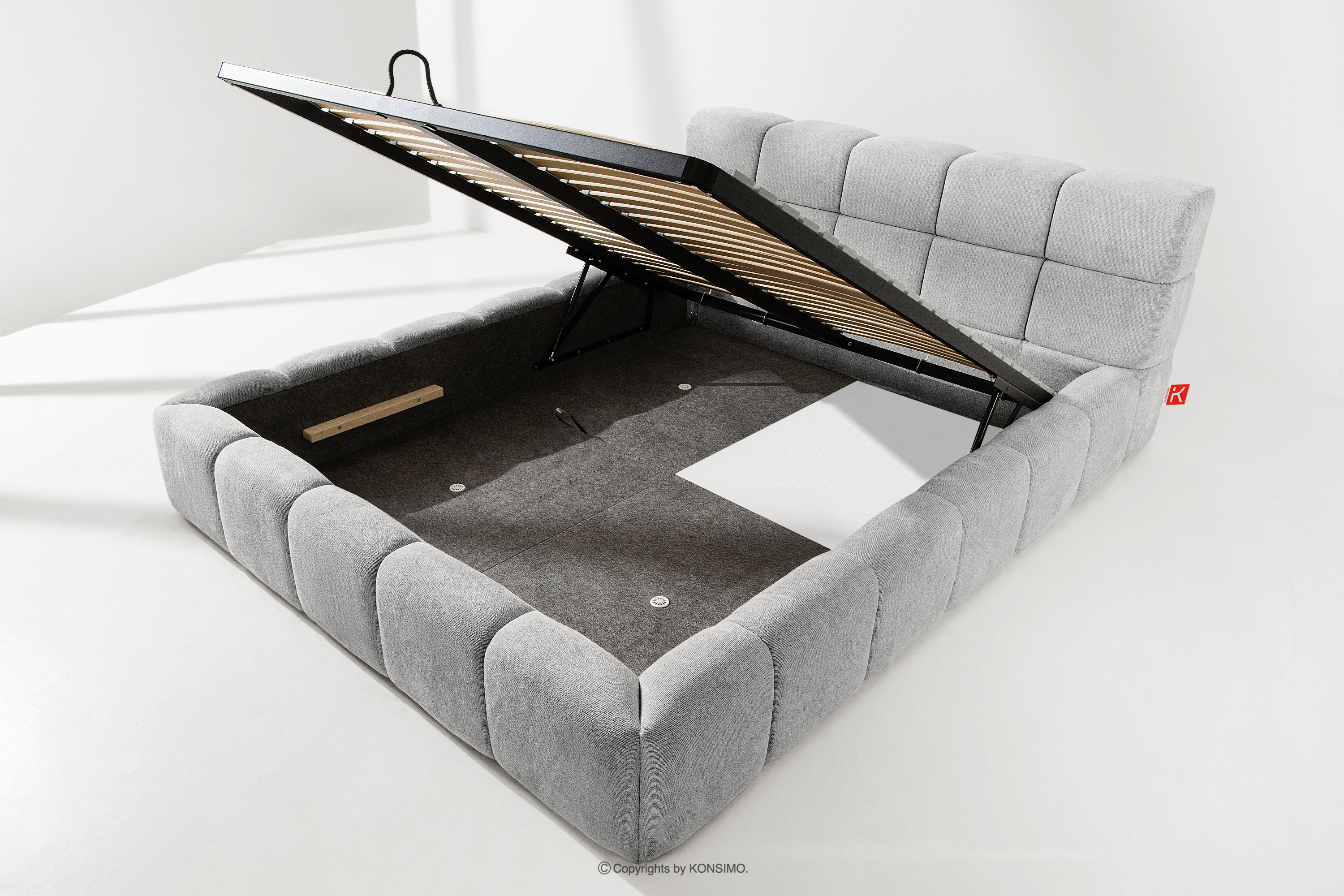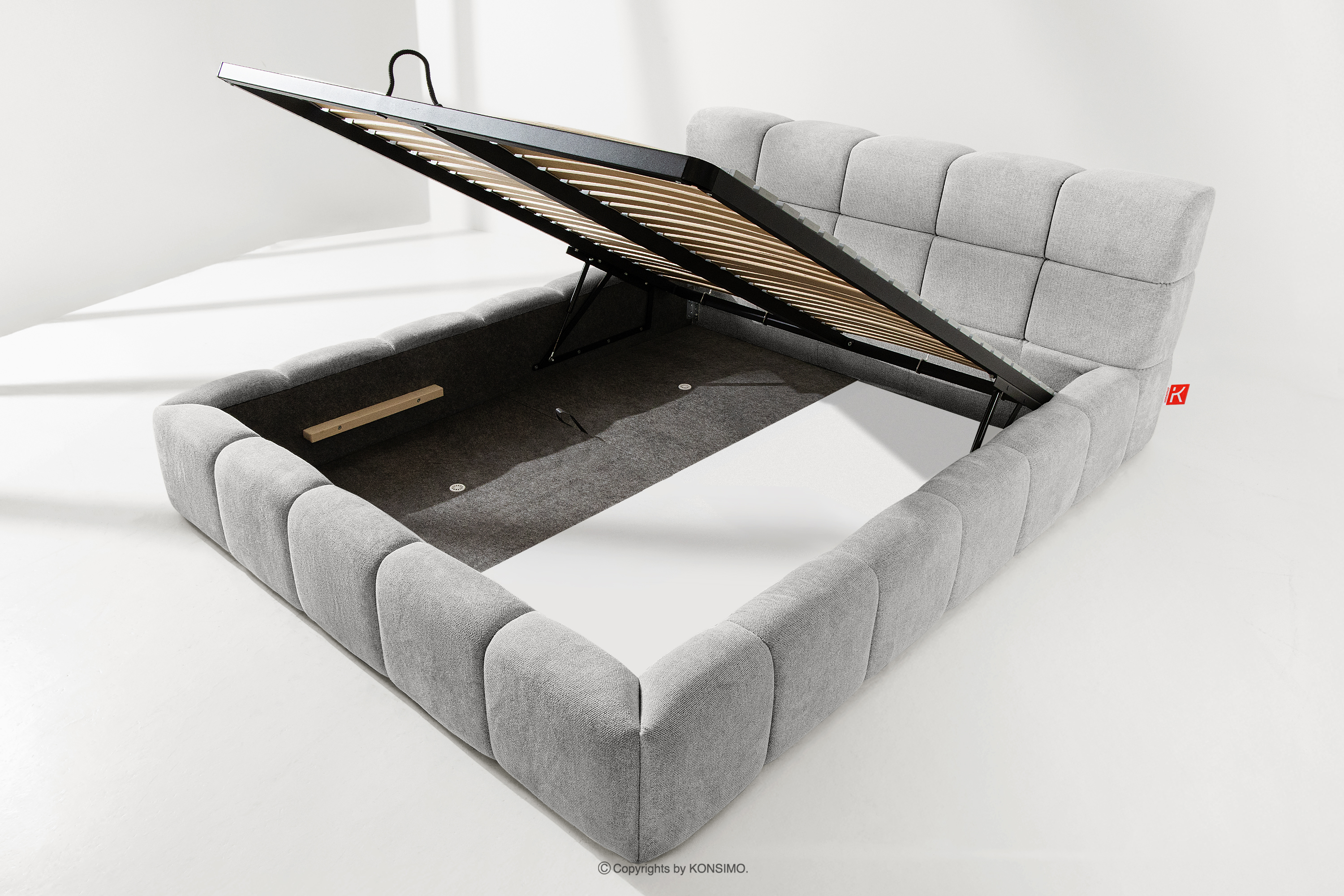 Das Bett 160 mit Kopfteil in Hellgrau ist eine harmonische Kombination aus der Schlichtheit des skandinavischen Stils und außergewöhnlichem Nutzungskomfort. Seine einzigartige Form, die von der Form einer Wolke inspiriert ist, zieht mit ihrem originellen Design die Aufmerksamkeit auf sich und bietet gleichzeitig Komfort auf höchstem Niveau. Die Konstruktion basiert auf einem flexiblen Rahmen aus Holzlatten, dessen zusätzlicher Vorteil die Möglichkeit ist, die Härte des Bettes einzustellen - dank der herausnehmbaren Latten kann man den Grad der Weichheit den individuellen Vorlieben anpassen.