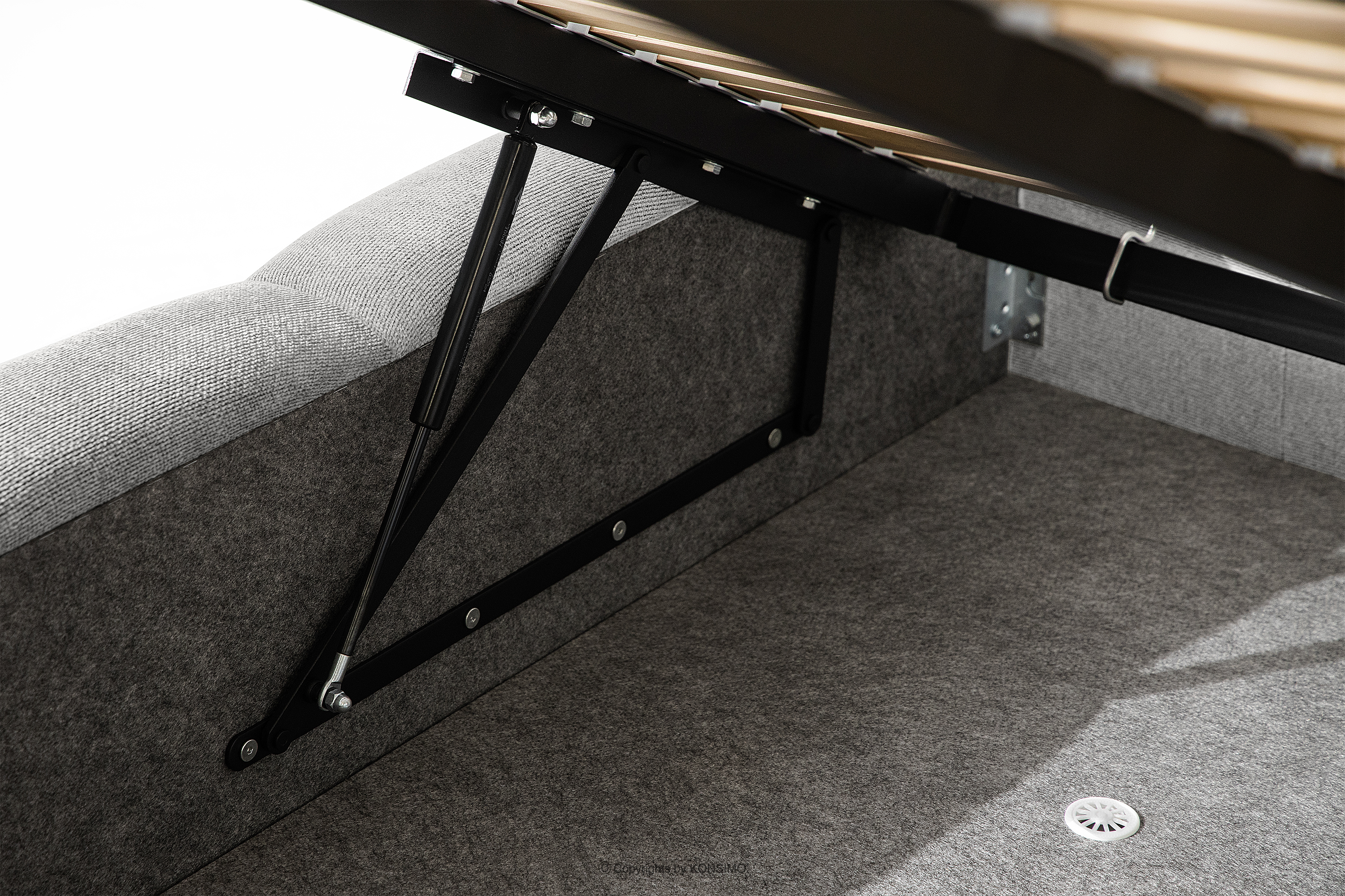 Der praktische Bettkasten, der durch Gasflaschen geöffnet wird, ist eine moderne Lösung, die den Zugang zu den gelagerten Gegenständen ohne großen Aufwand ermöglicht. Die Funktionalität dieses Mechanismus bedeutet, dass sich der Behälter leicht und sanft öffnet, was den Benutzungskomfort weiter erhöht.