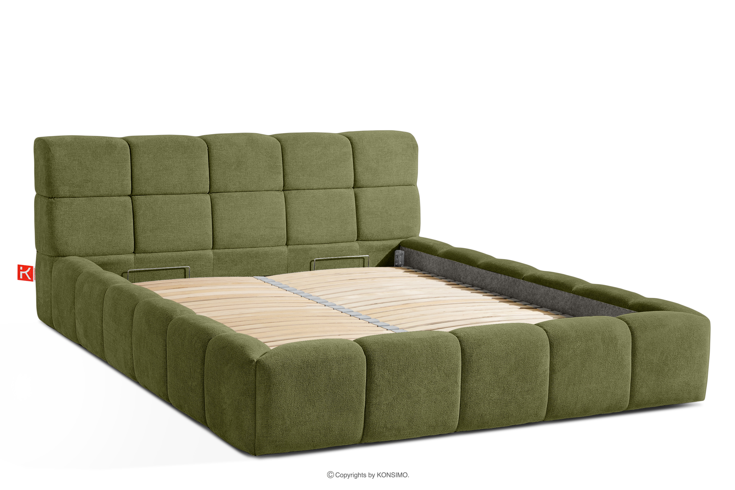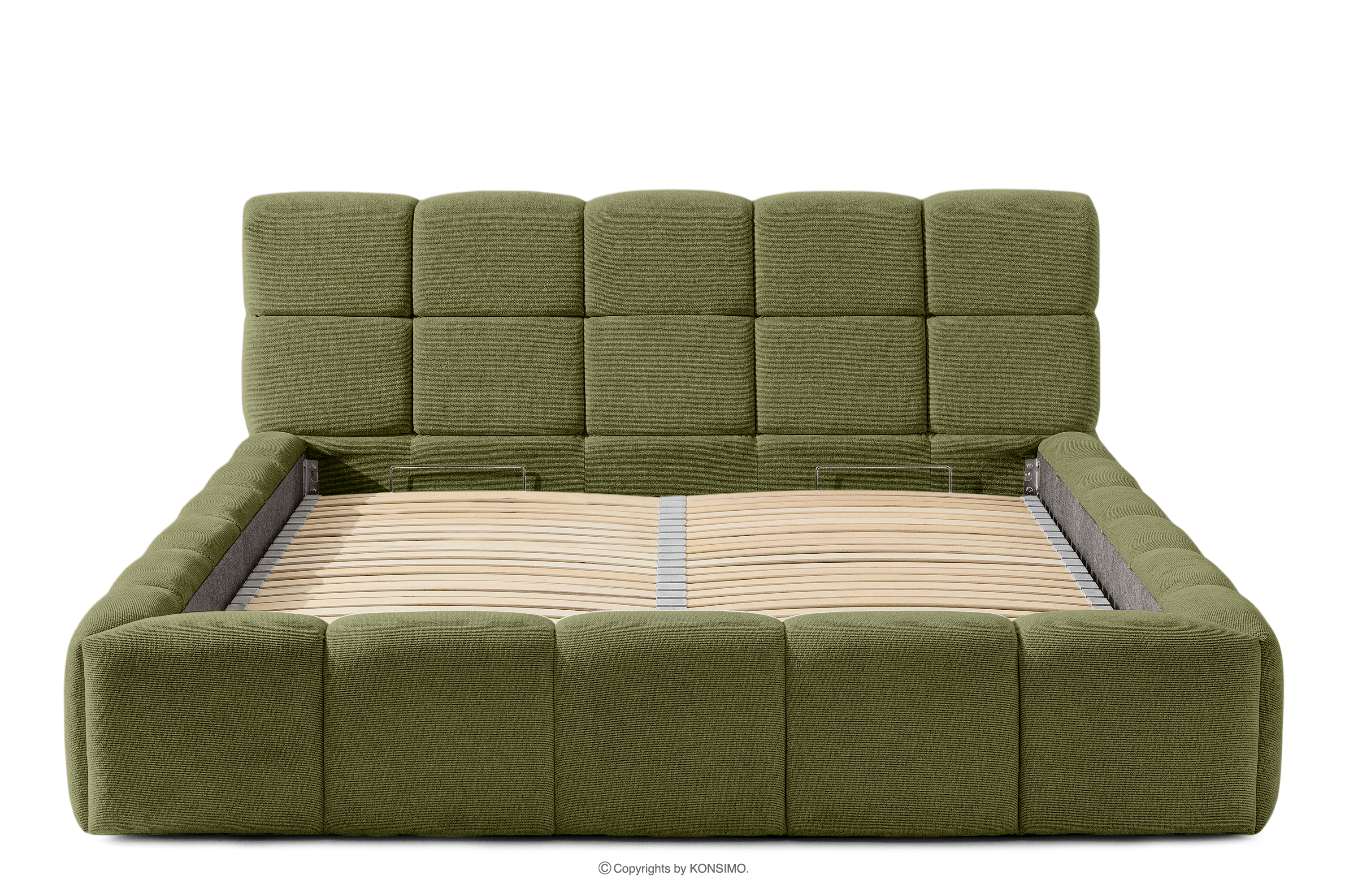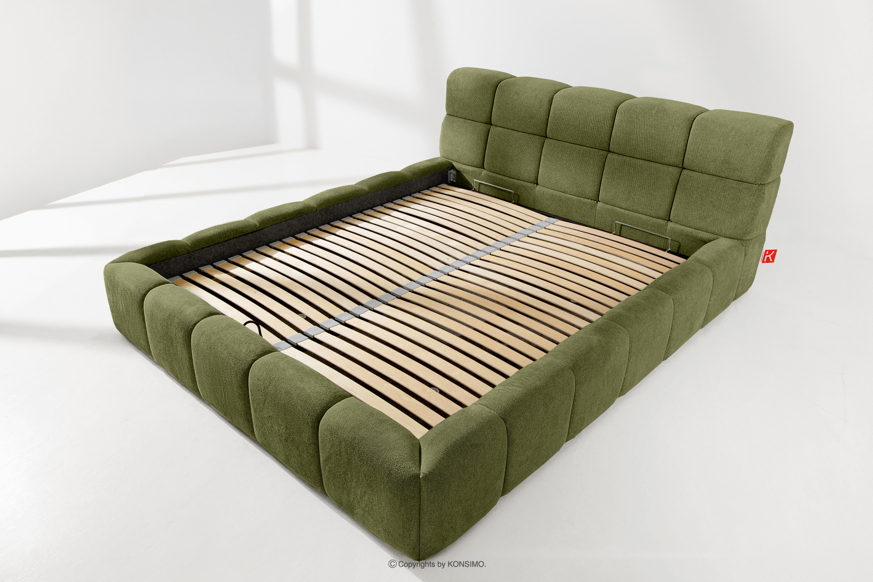 Das Bett 160 mit olivgrünem Kopfteil ist eine harmonische Kombination aus der Schlichtheit des skandinavischen Stils und außergewöhnlichem Nutzungskomfort. Seine einzigartige Form, die von der Form einer Wolke inspiriert ist, zieht mit ihrem originellen Design die Aufmerksamkeit auf sich und bietet gleichzeitig Komfort auf höchstem Niveau. Die Konstruktion basiert auf einem flexiblen Rahmen aus Holzlatten, dessen zusätzlicher Vorteil die Möglichkeit ist, die Härte des Bettes einzustellen - dank der herausnehmbaren Latten kann man den Grad der Weichheit den individuellen Vorlieben anpassen.