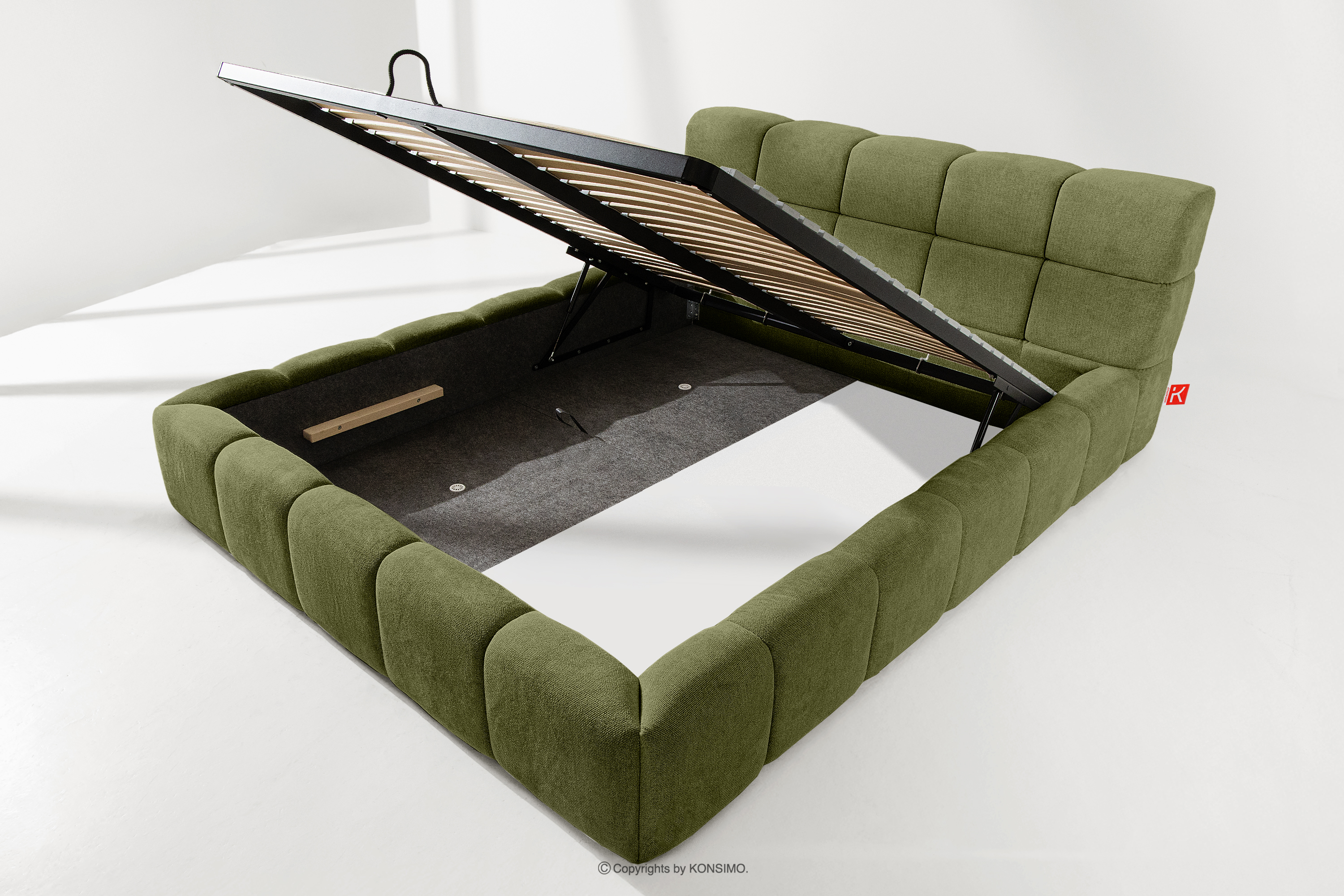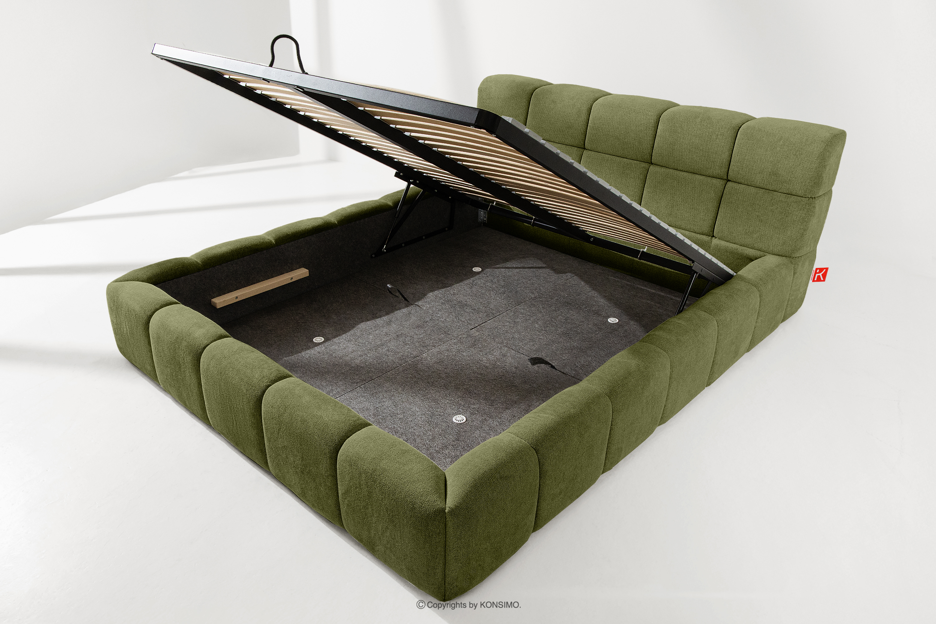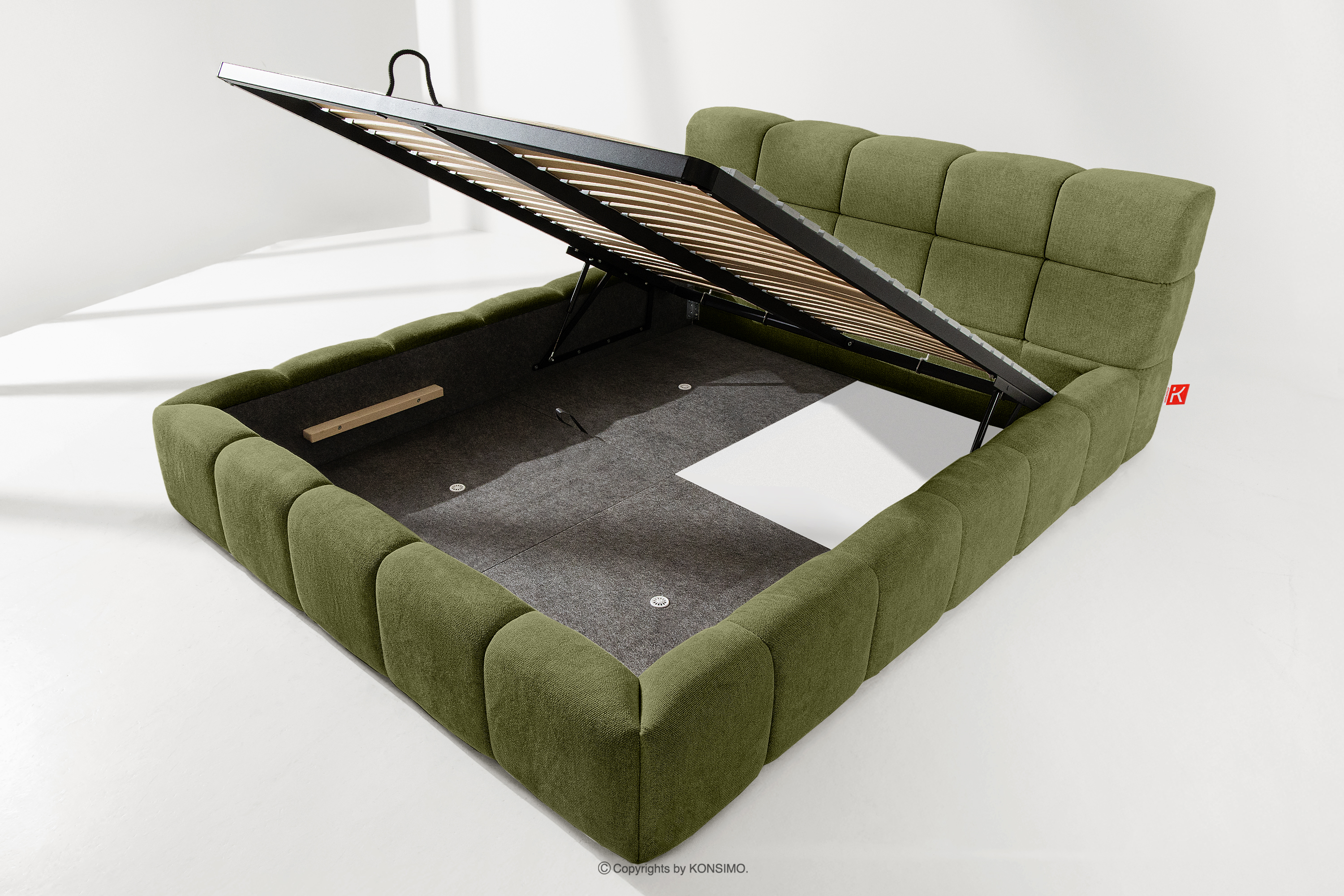 Der praktische Bettkasten, der durch Gasflaschen geöffnet wird, ist eine moderne Lösung, die den Zugriff auf die gelagerten Gegenstände ohne großen Aufwand ermöglicht. Die Funktionalität dieses Mechanismus bedeutet, dass sich der Behälter sanft und reibungslos öffnet, was den Nutzungskomfort weiter erhöht.