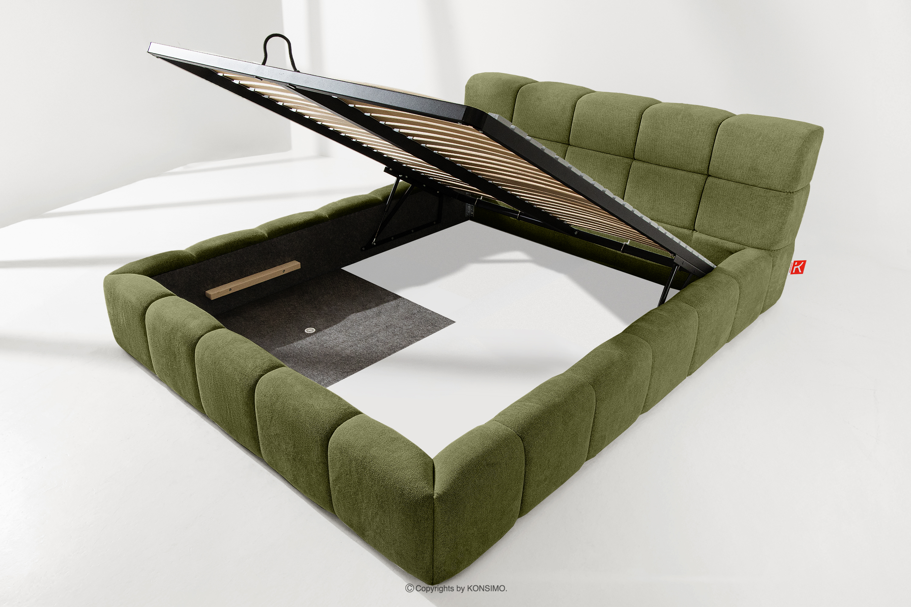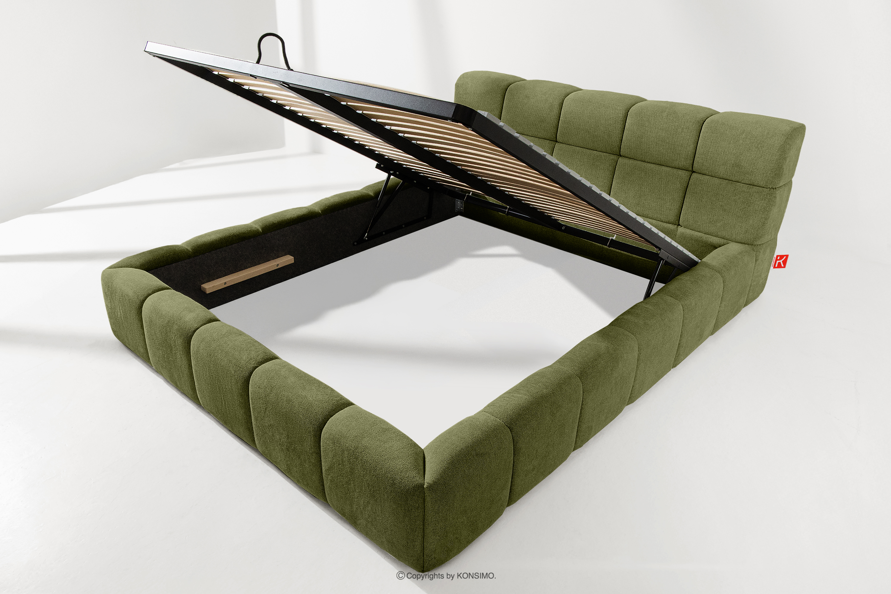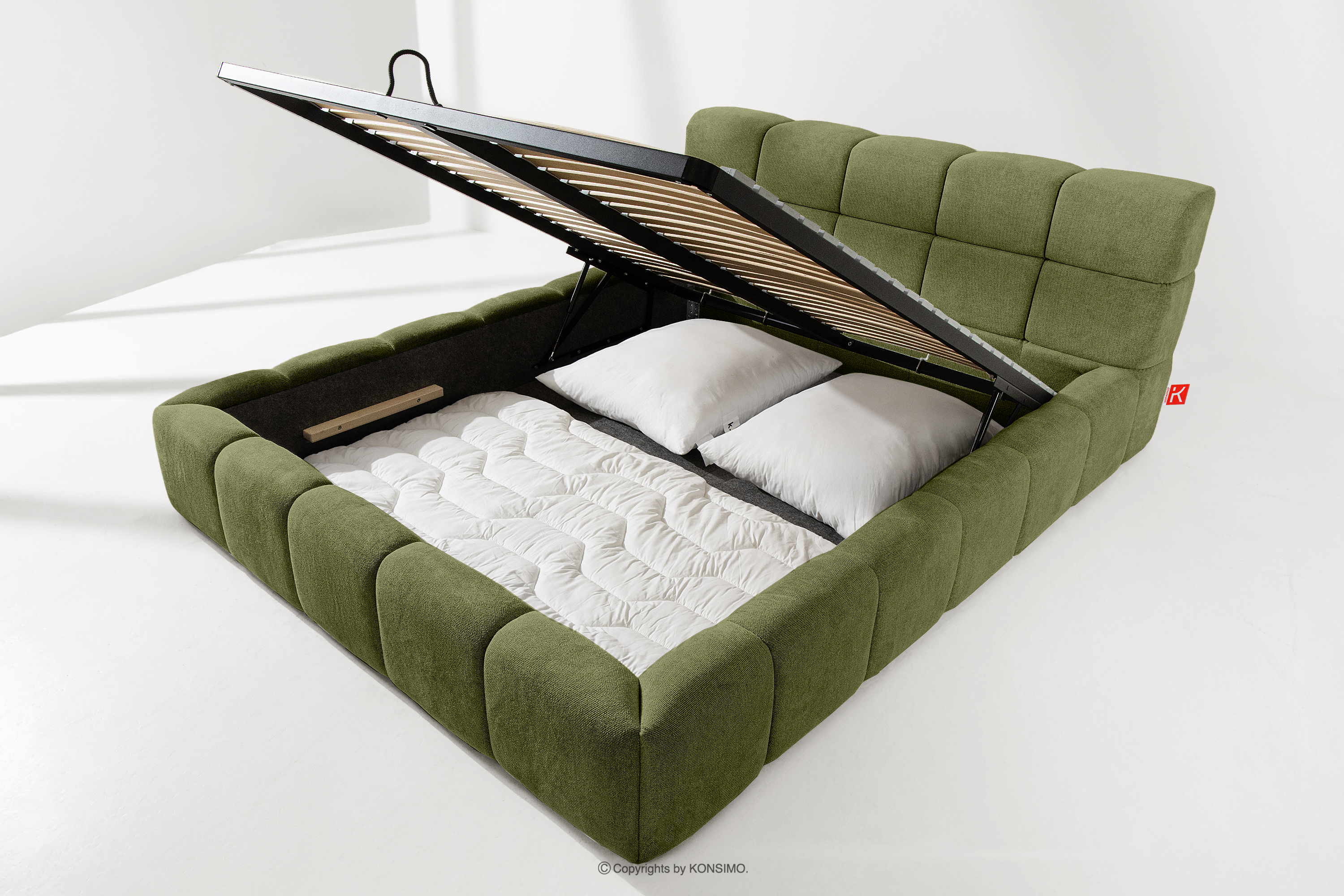 Der praktische Bettkasten, der durch Gasflaschen geöffnet wird, ist eine moderne Lösung, die den Zugriff auf die gelagerten Gegenstände ohne großen Aufwand ermöglicht. Die Funktionalität dieses Mechanismus bedeutet, dass sich der Behälter sanft und reibungslos öffnet, was den Nutzungskomfort weiter erhöht.