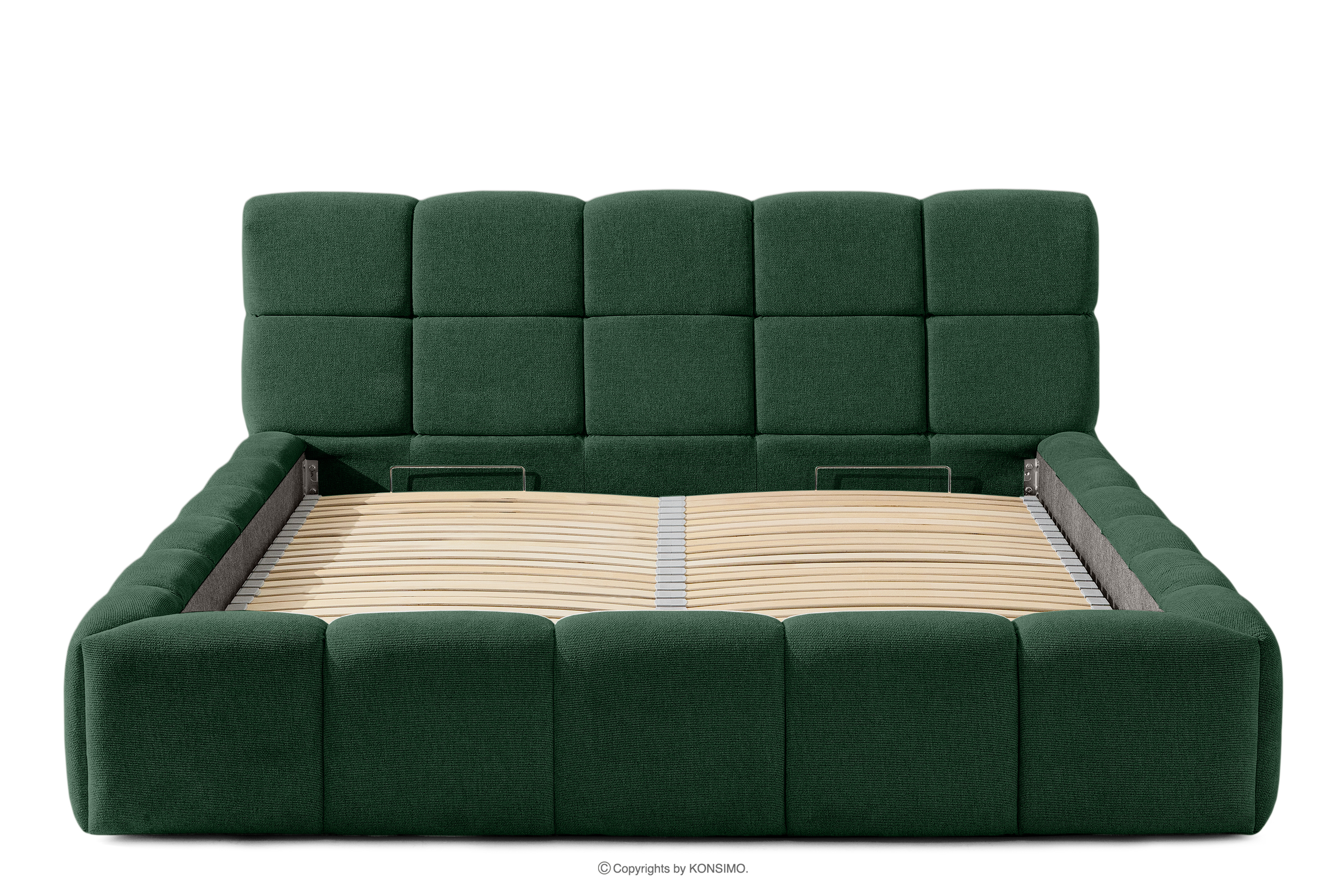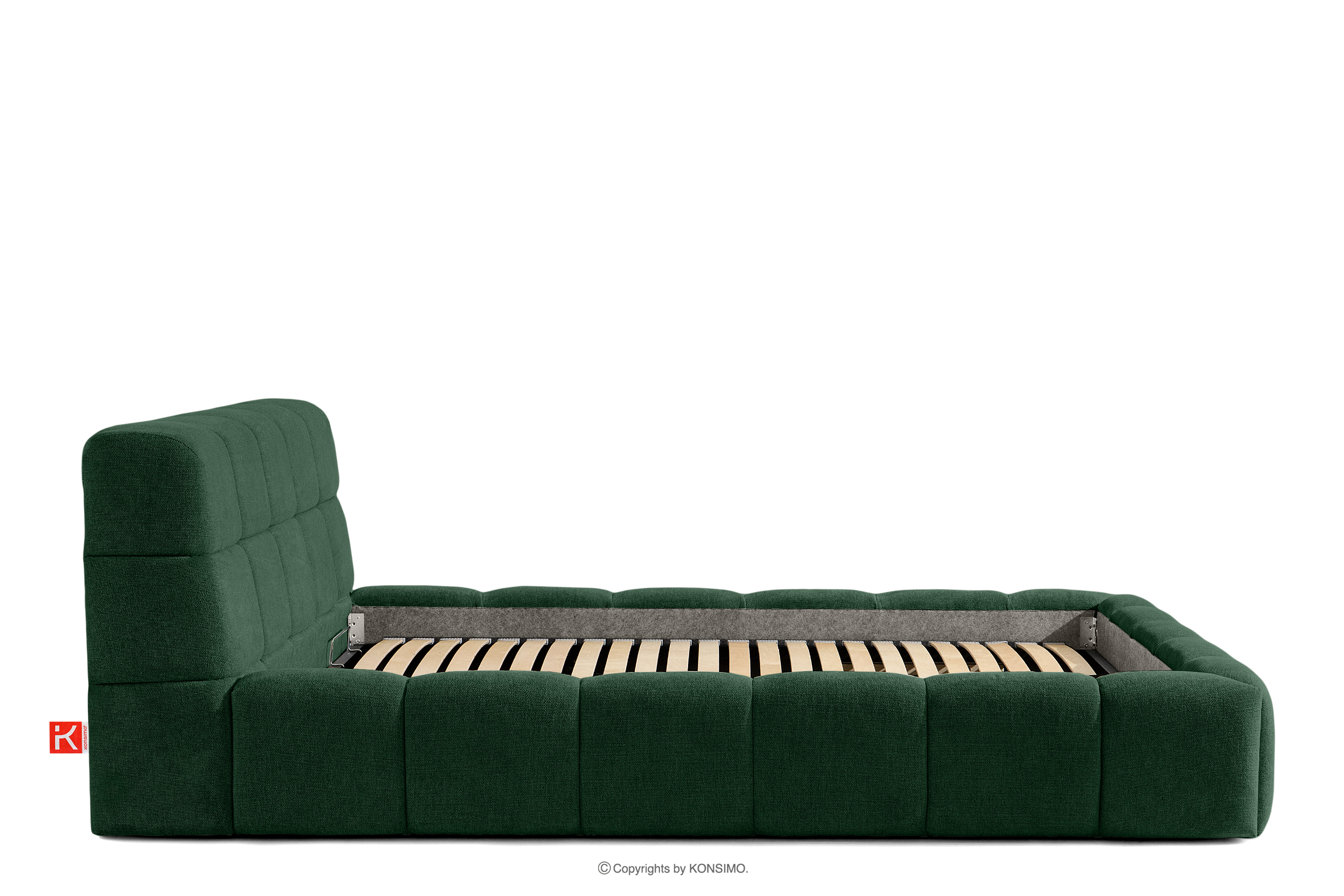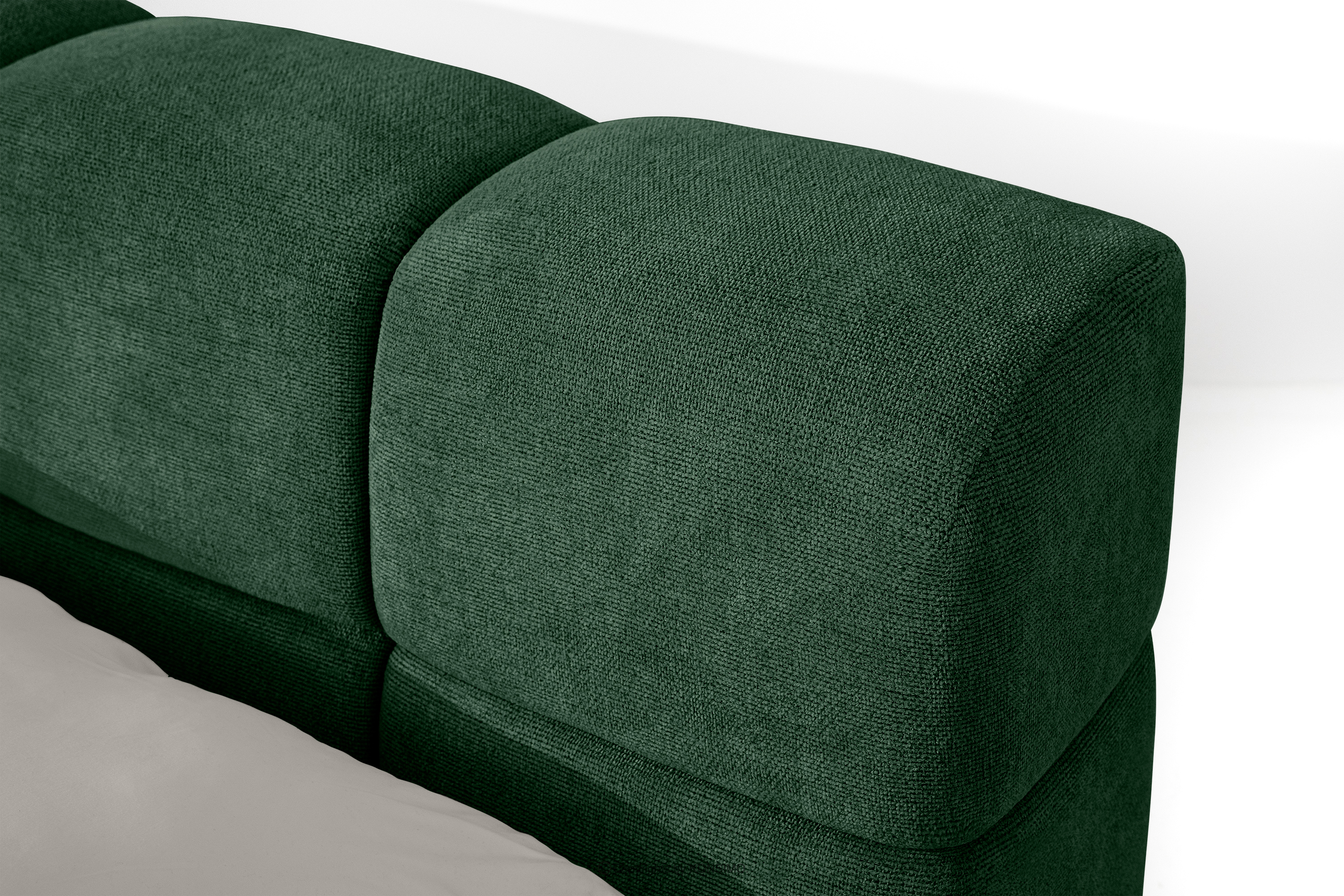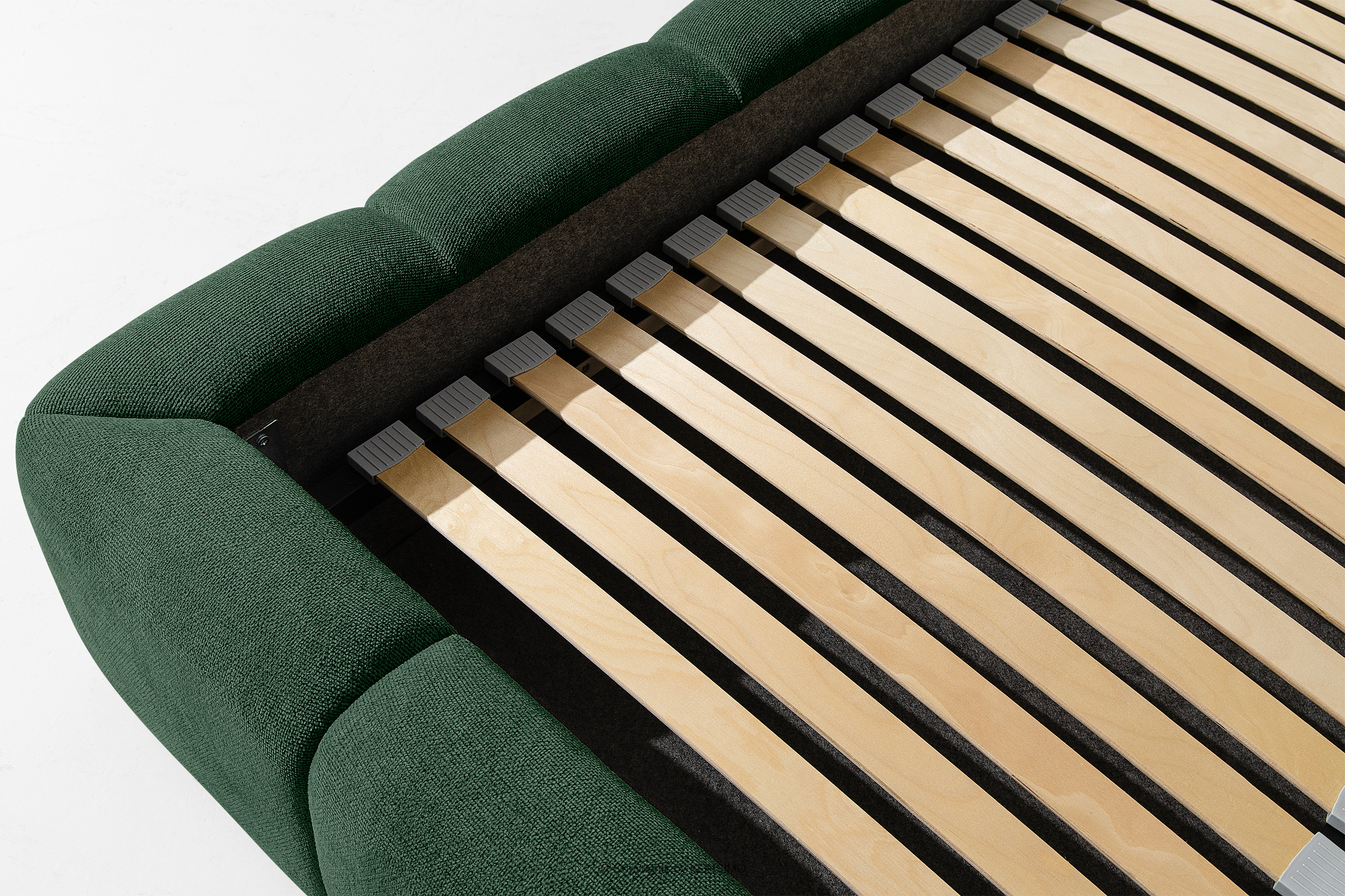 Das Bett 160 mit Kopfteil dunkelgrün ist eine harmonische Kombination aus der Einfachheit des skandinavischen Stils und außergewöhnlichem Nutzungskomfort. Seine einzigartige Form, inspiriert von der Form einer Wolke, zieht mit seinem originellen Design die Aufmerksamkeit auf sich und bietet gleichzeitig Komfort auf höchstem Niveau. Die Konstruktion basiert auf einem flexiblen Rahmen aus Holzlatten, dessen zusätzlicher Vorteil die Möglichkeit ist, die Härte des Bettes einzustellen - dank der herausnehmbaren Latten kann man den Grad der Weichheit den individuellen Vorlieben anpassen.