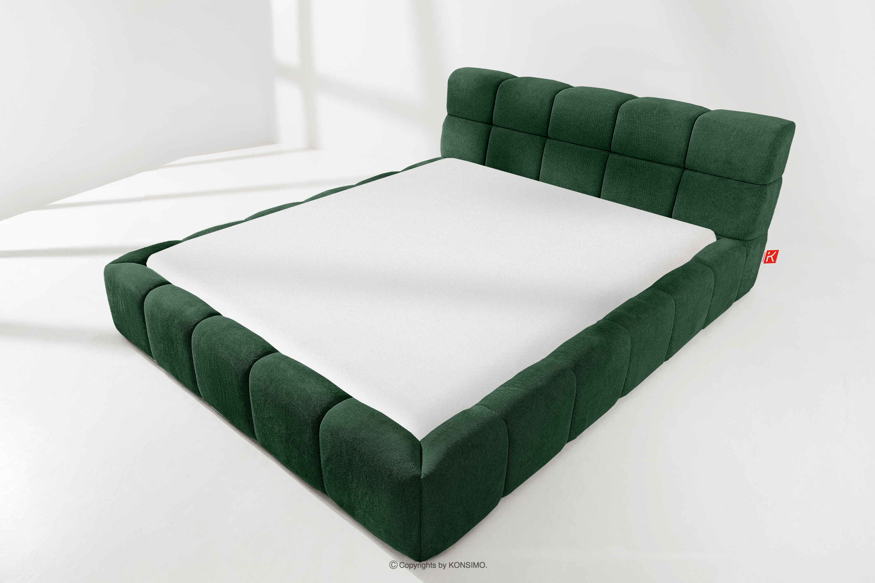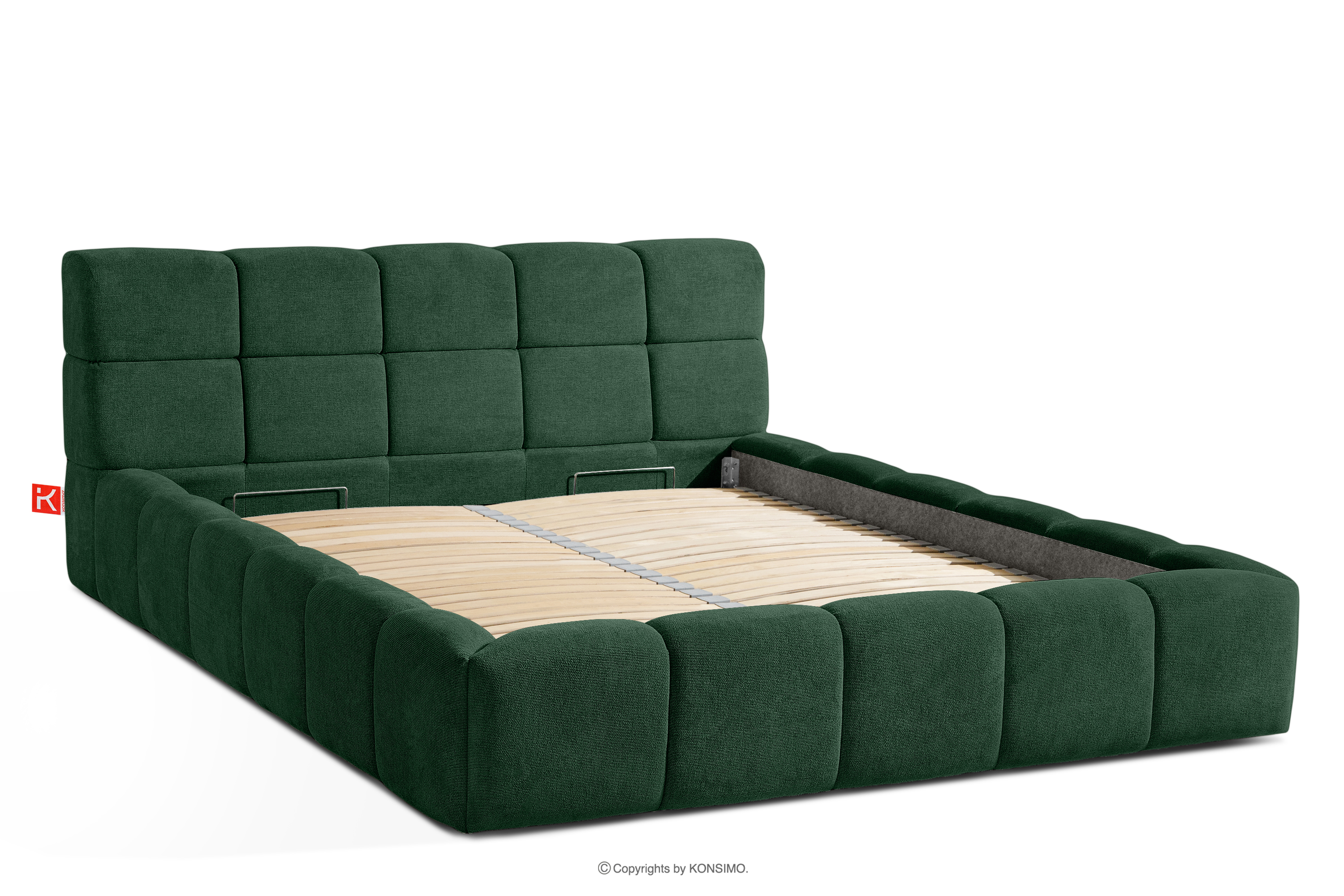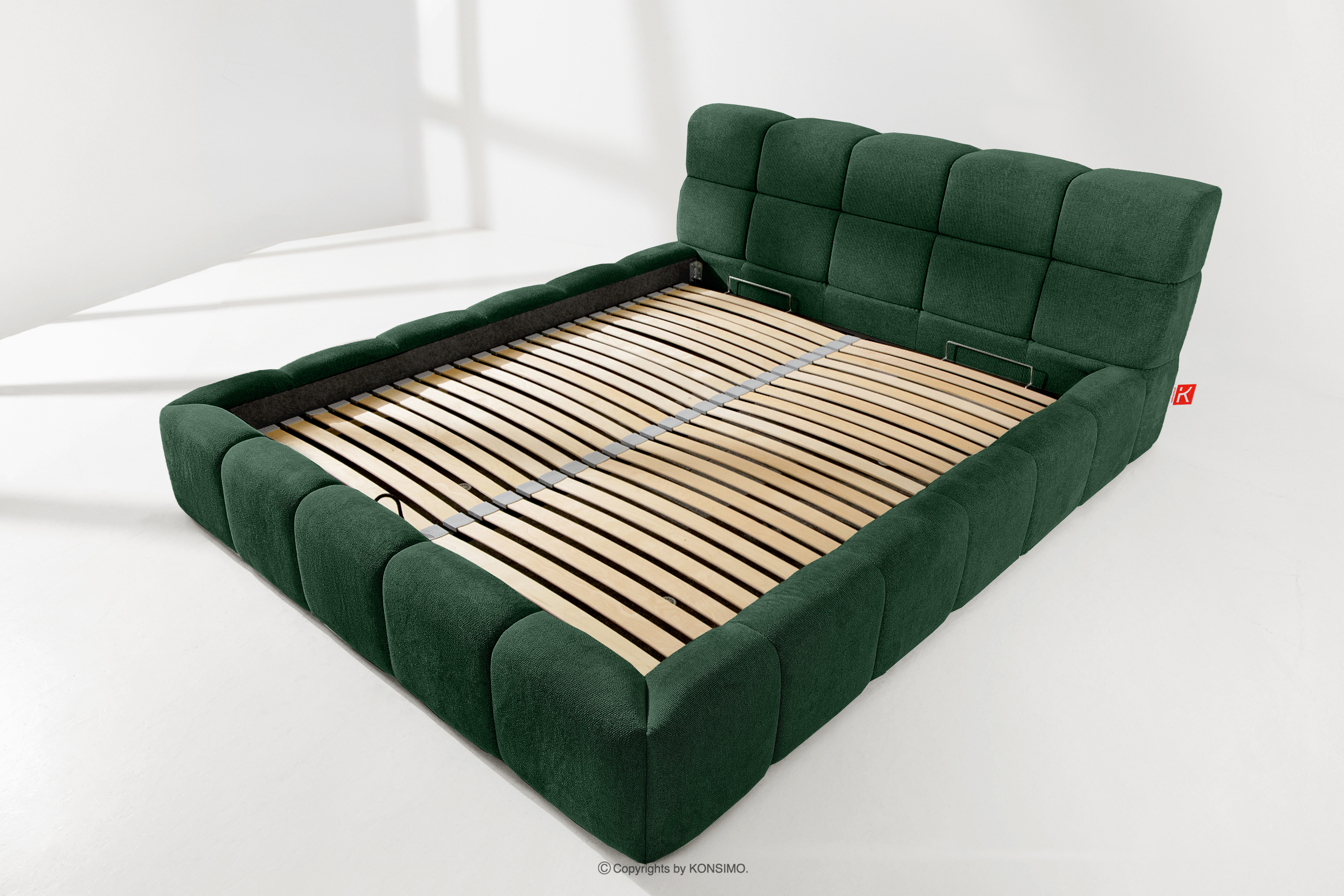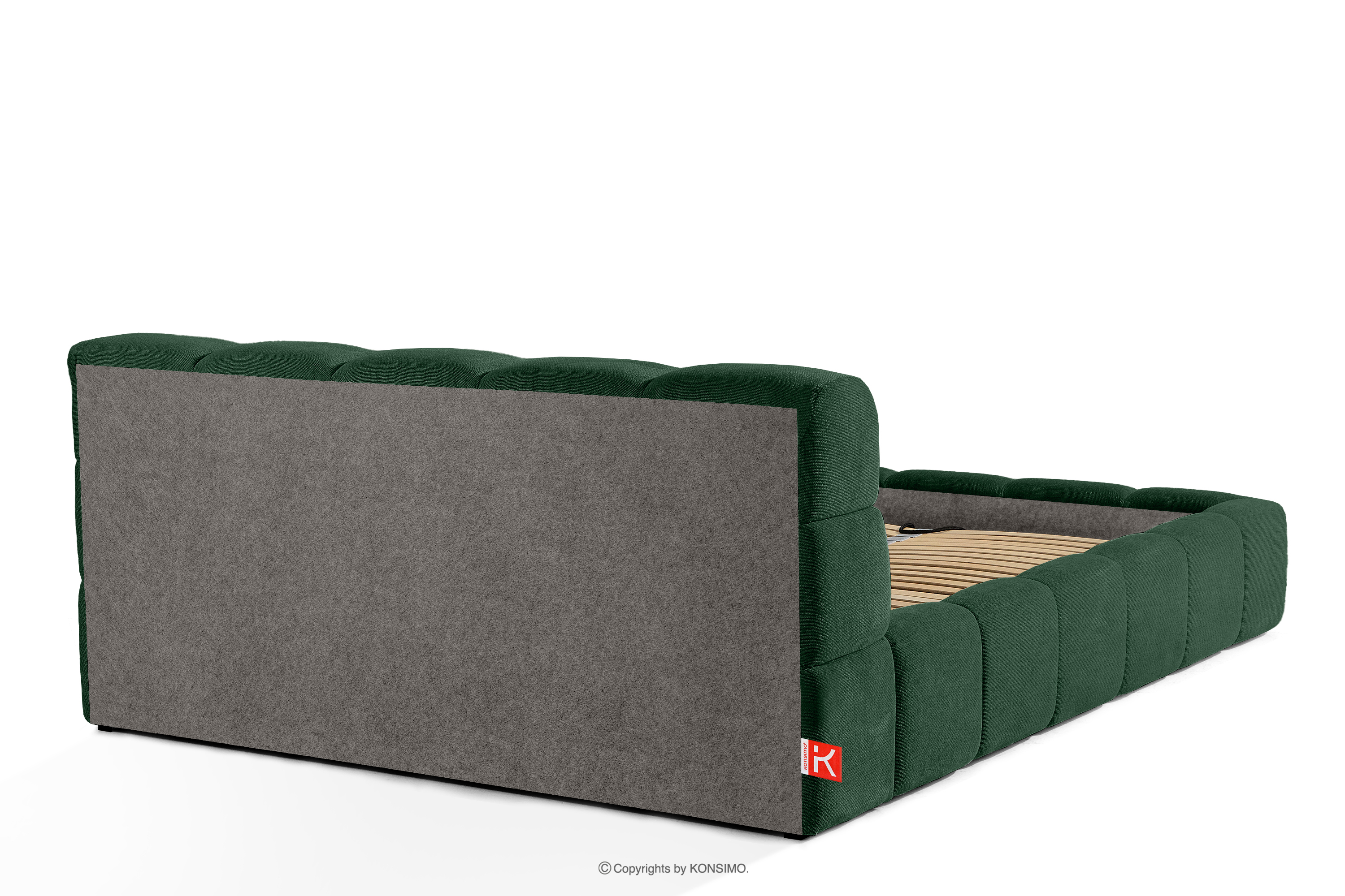 Das Bett 160 mit Kopfteil dunkelgrün ist eine harmonische Kombination aus der Einfachheit des skandinavischen Stils und außergewöhnlichem Nutzungskomfort. Seine einzigartige Form, inspiriert von der Form einer Wolke, zieht mit seinem originellen Design die Aufmerksamkeit auf sich und bietet gleichzeitig Komfort auf höchstem Niveau. Die Konstruktion basiert auf einem flexiblen Rahmen aus Holzlatten, dessen zusätzlicher Vorteil die Möglichkeit ist, die Härte des Bettes einzustellen - dank der herausnehmbaren Latten kann man den Grad der Weichheit den individuellen Vorlieben anpassen.