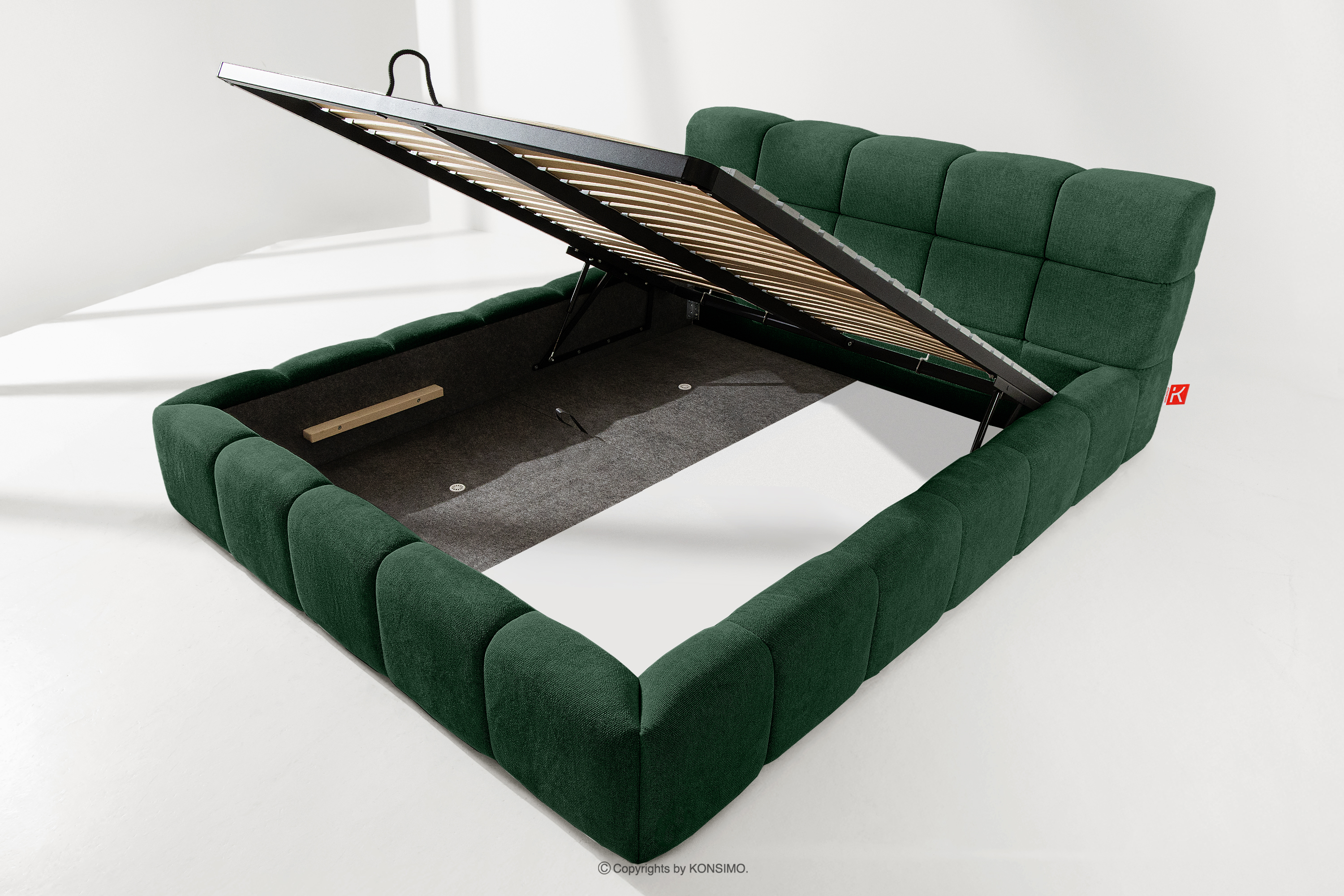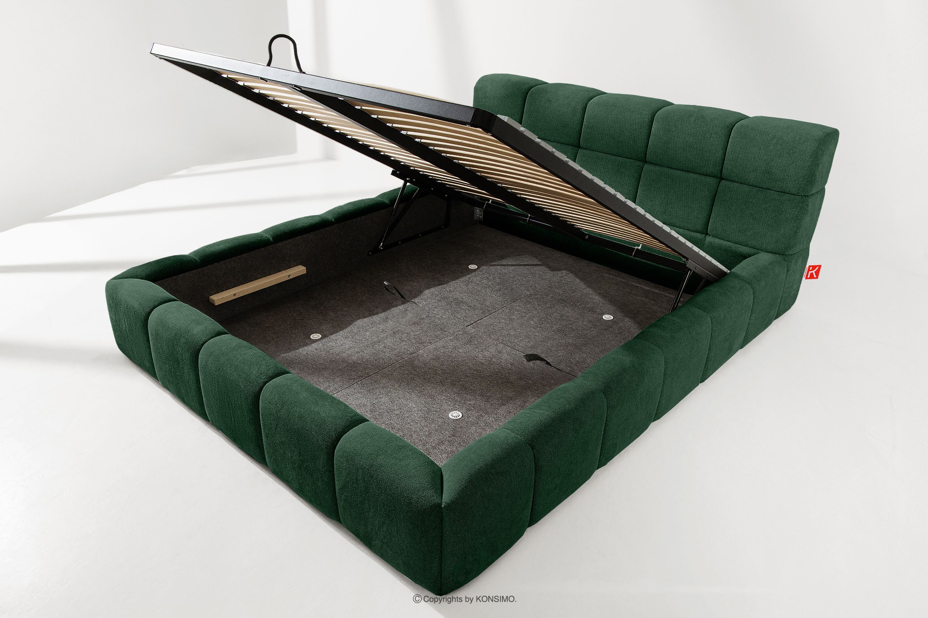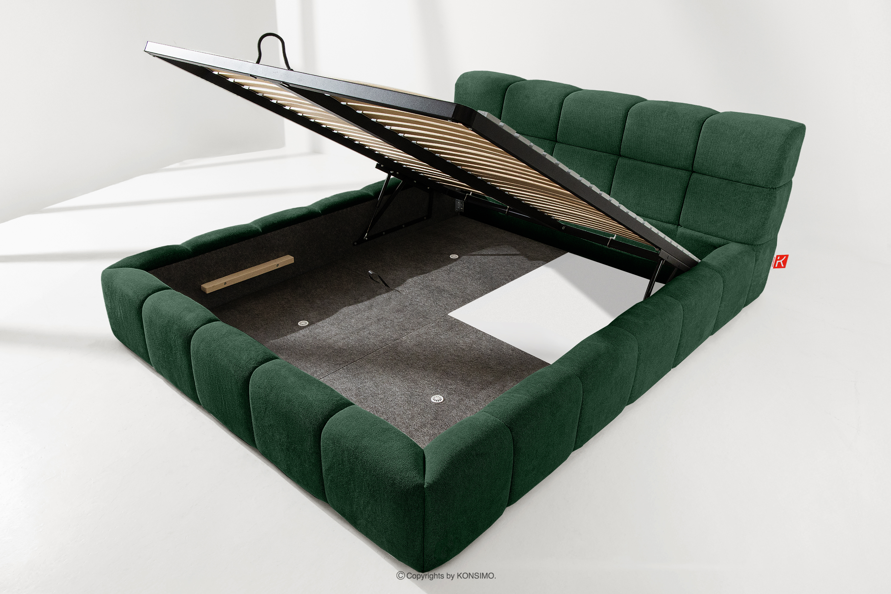 Der praktische Bettkasten, der durch Gasflaschen geöffnet wird, ist eine moderne Lösung, die den Zugang zu den gelagerten Gegenständen ohne großen Aufwand ermöglicht. Die Funktionalität dieses Mechanismus ermöglicht ein sanftes Öffnen des Bettkastens, was den Nutzungskomfort weiter erhöht.